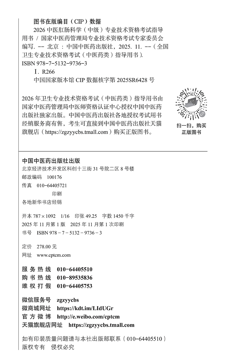 书名:2026中医肛肠科学(中级)专业技术资格考试指导用书