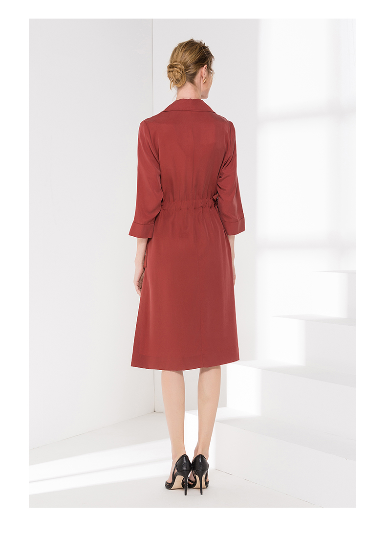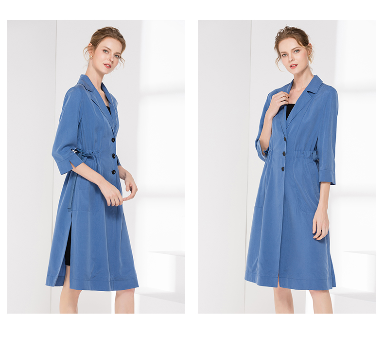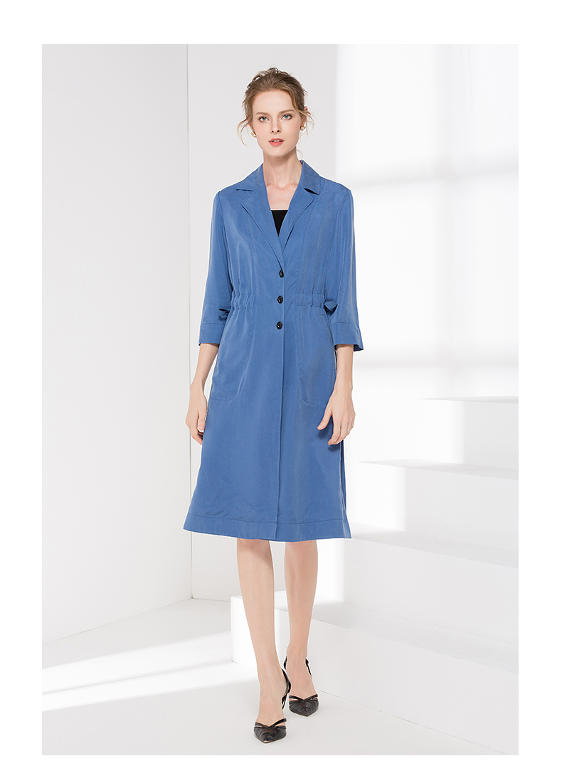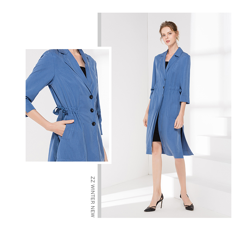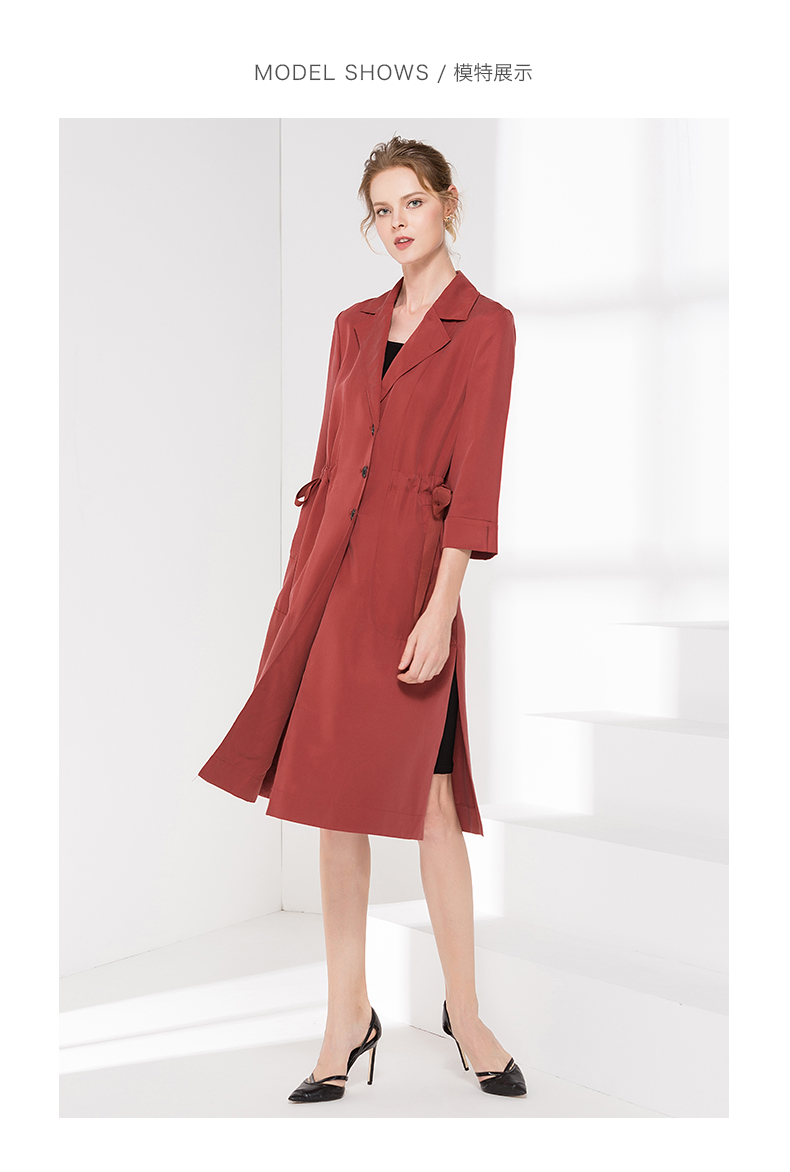 佐尔美新品秋季新品女士修身收腰七分袖气质V领长外套E81FZ15