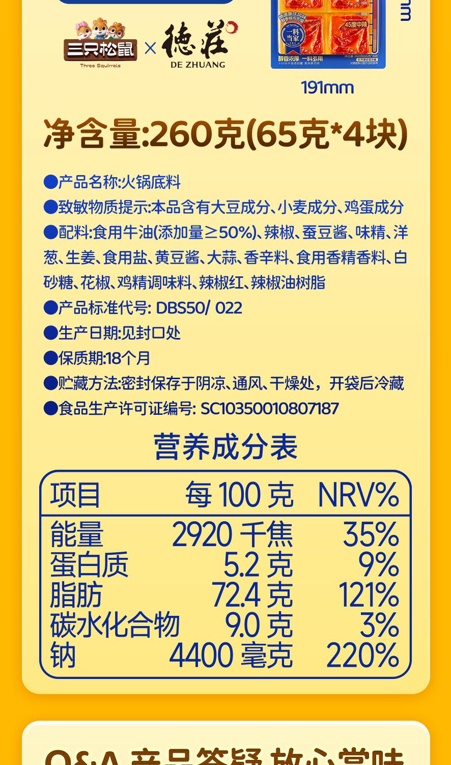 三只松鼠 围裙阿姨_德庄联名火锅底料/65g*4