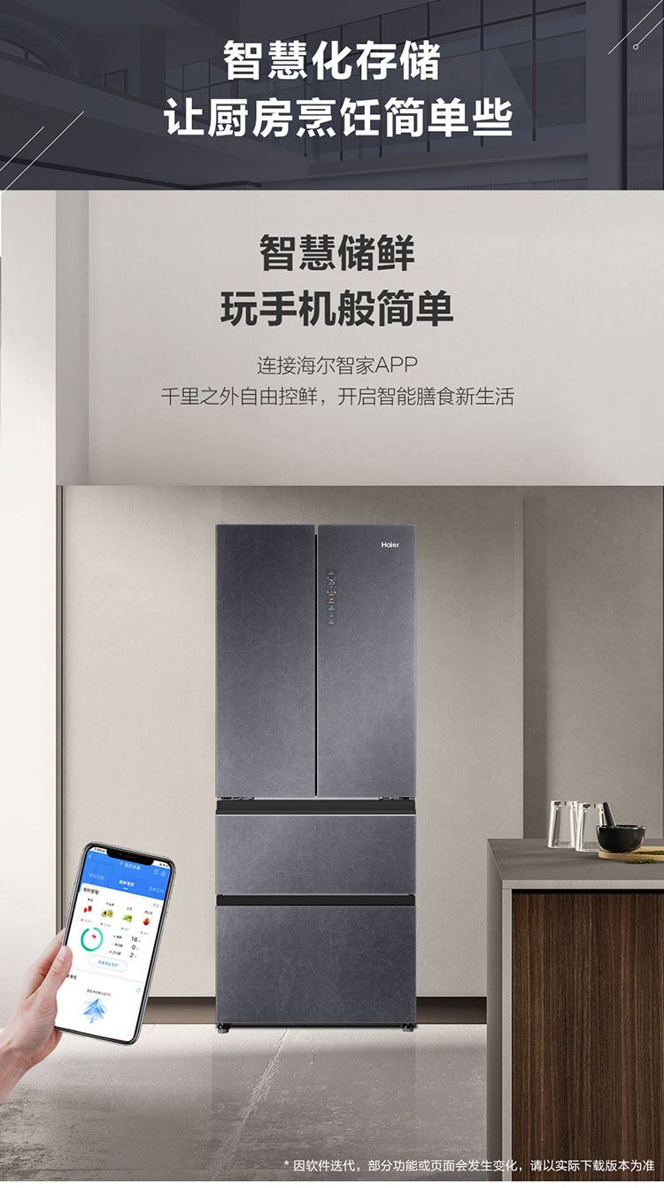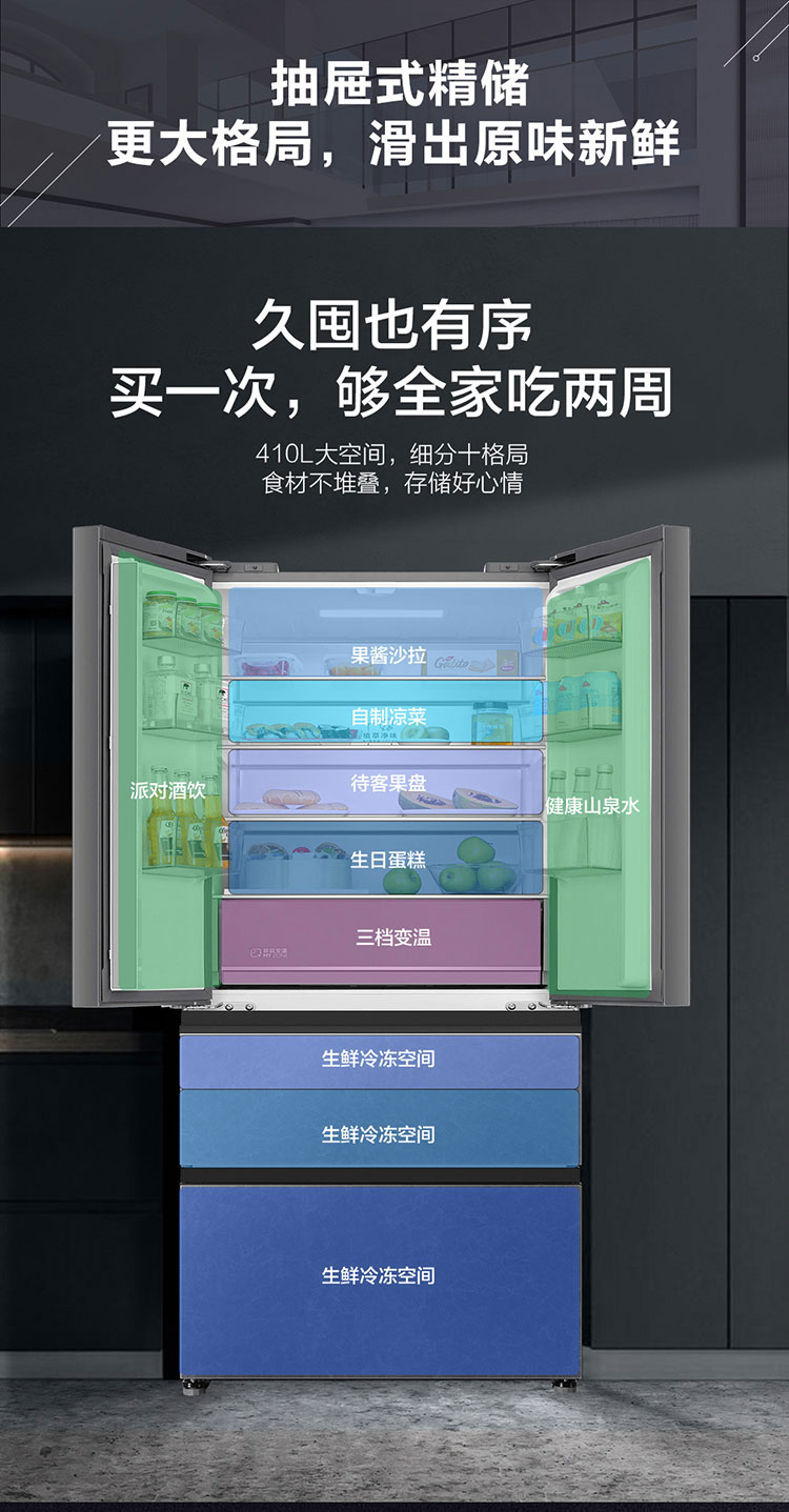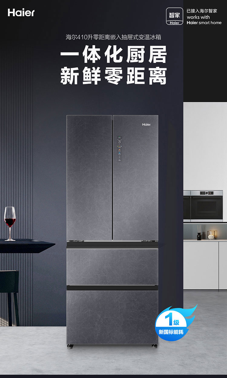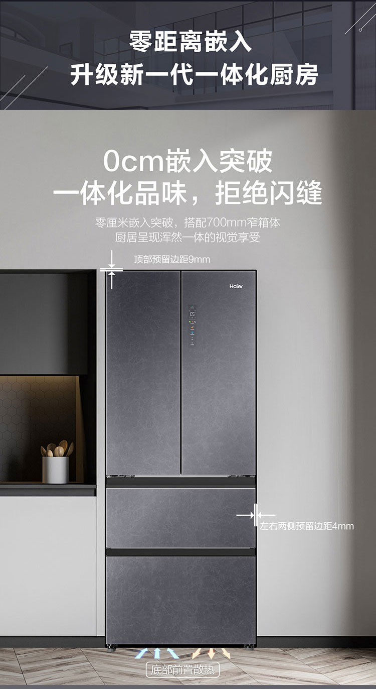 【零嵌入新品】海尔410升多门冰箱变频风冷无霜 零距离嵌入智能物联 三档变温空间