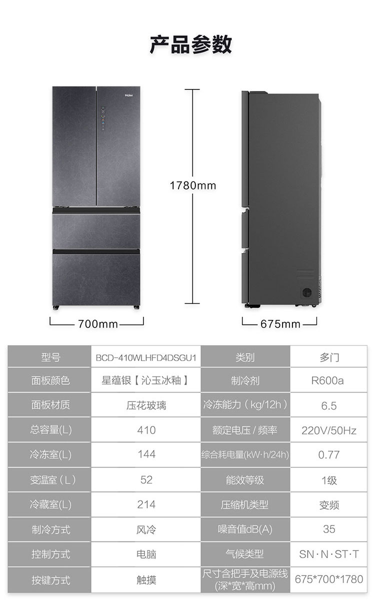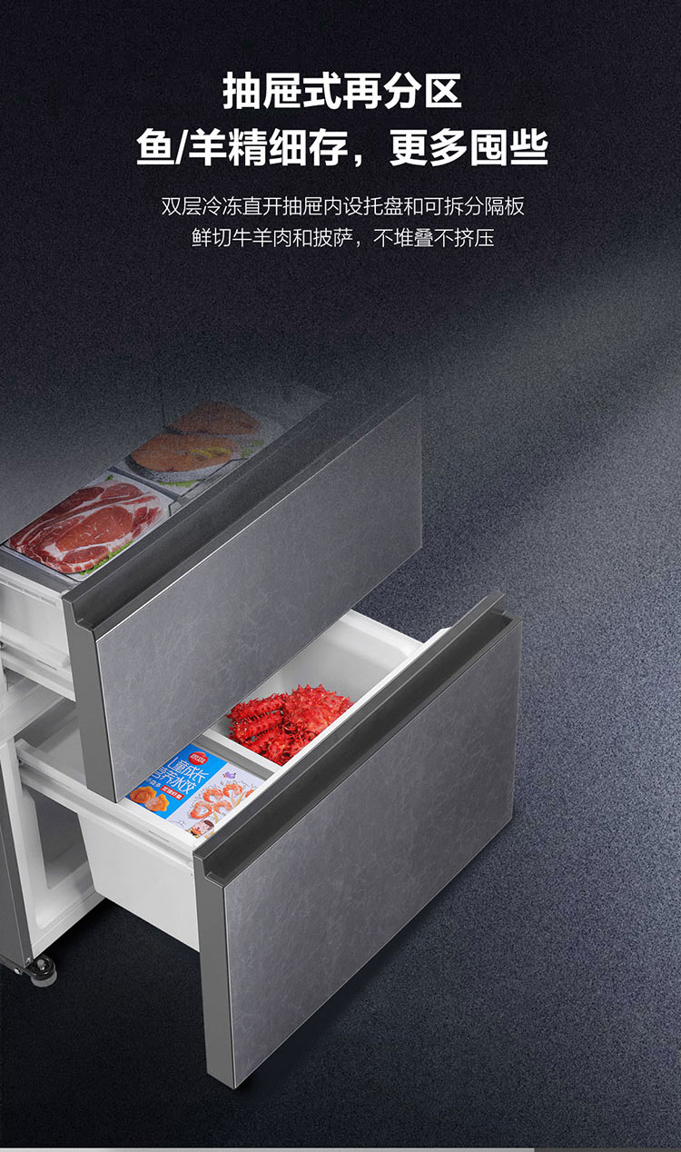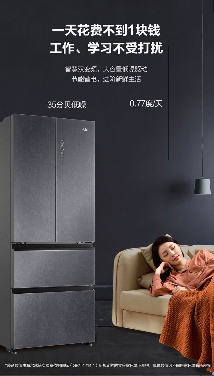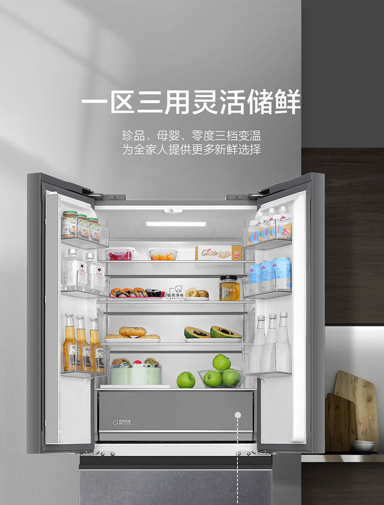 【零嵌入新品】海尔410升多门冰箱变频风冷无霜 零距离嵌入智能物联 三档变温空间