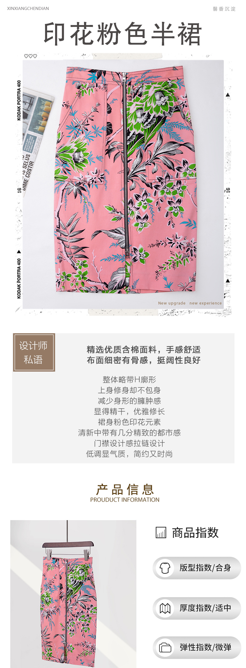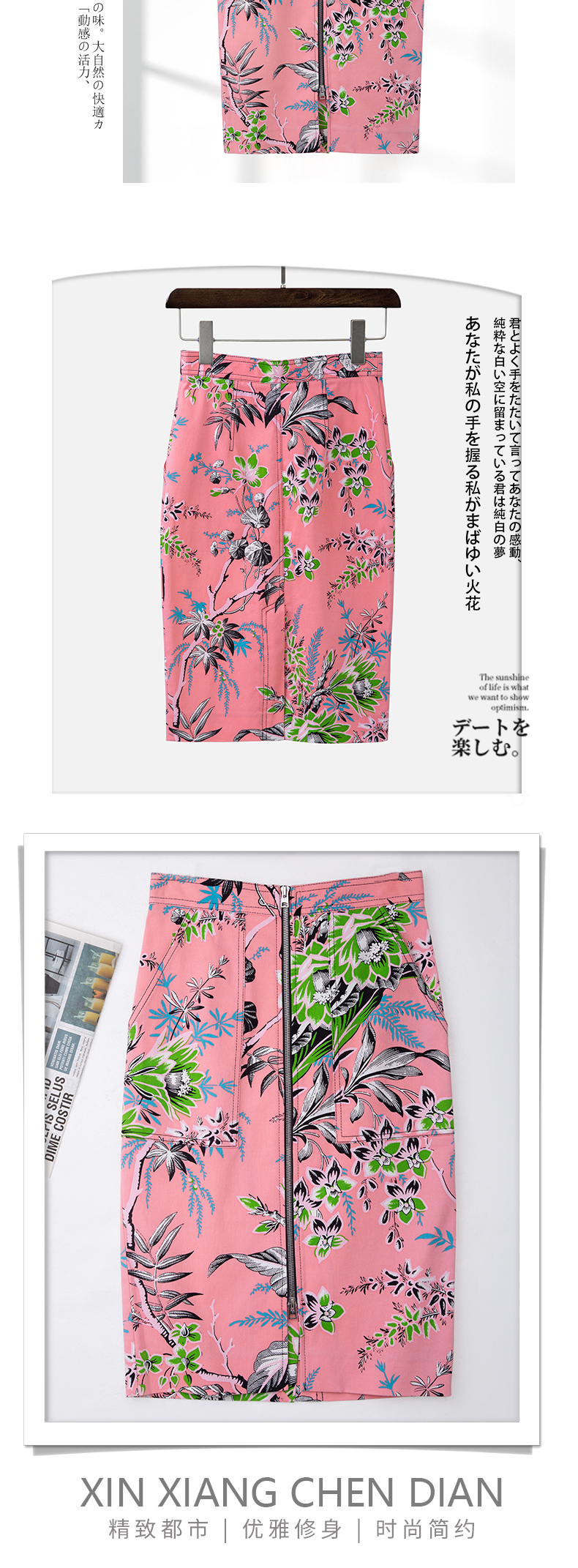 印花粉色半裙