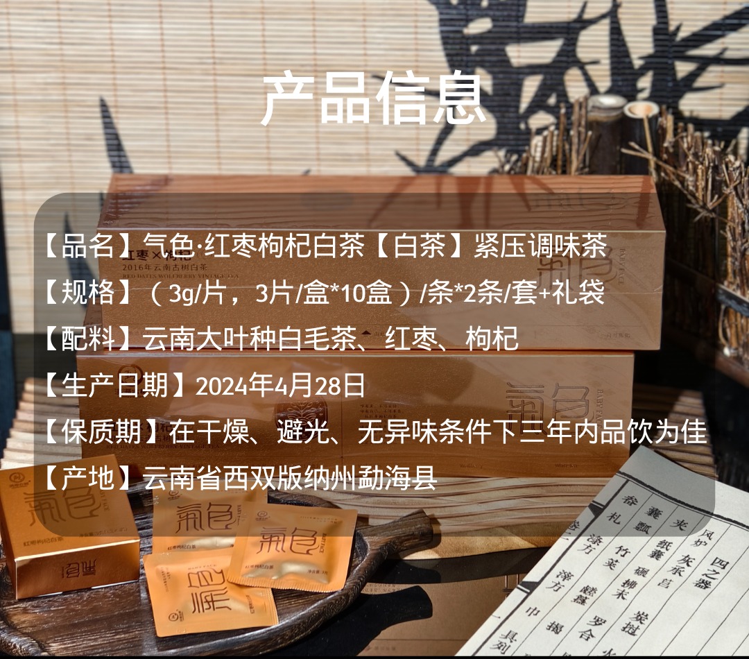 【云南勐海县产 赠试喝!】2016年云南古树气色白茶礼袋套装 红枣+枸杞补足红润好气色 滋味丰富入喉清润回甘 10370亩自有古树茶园品质保障