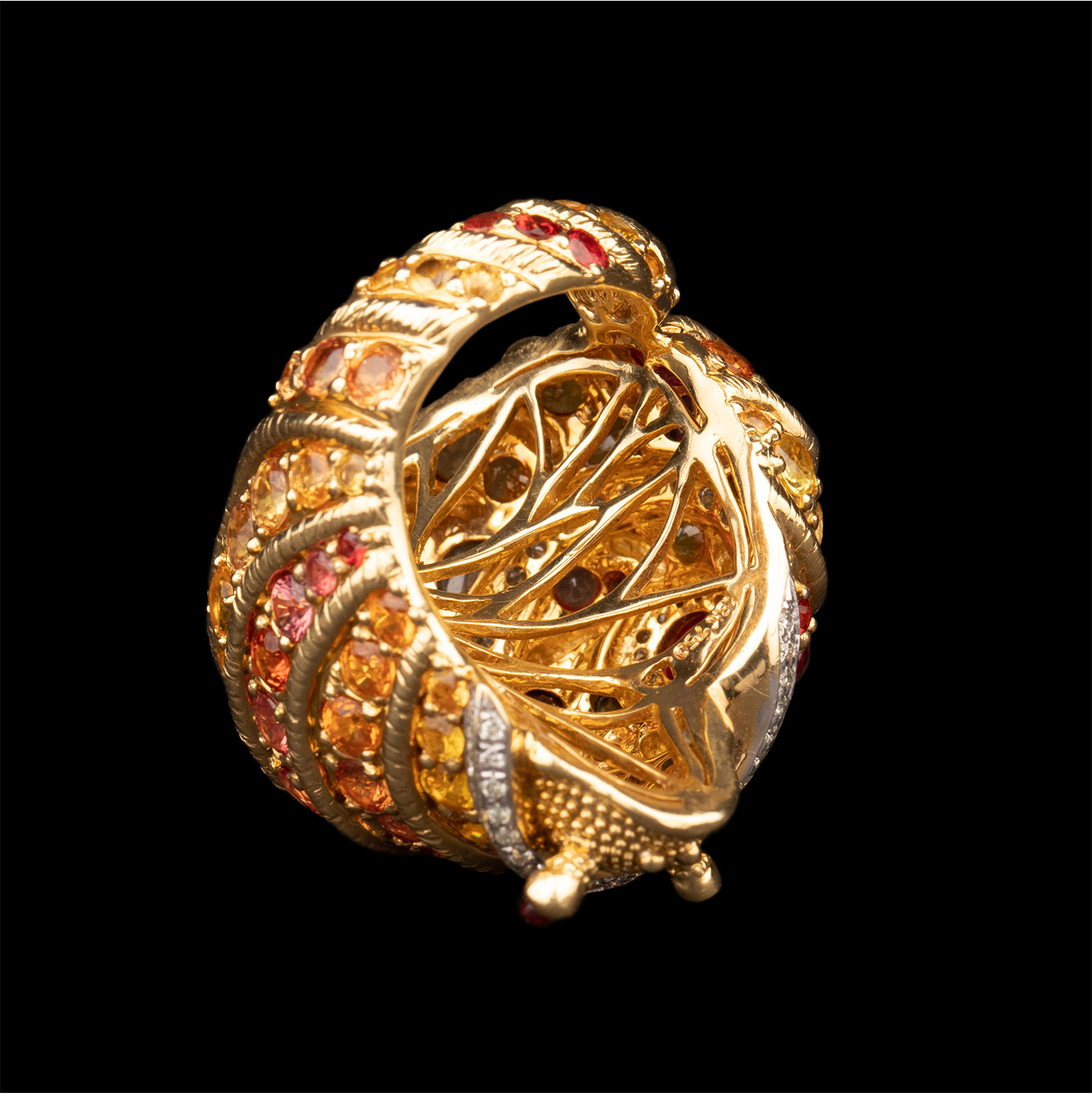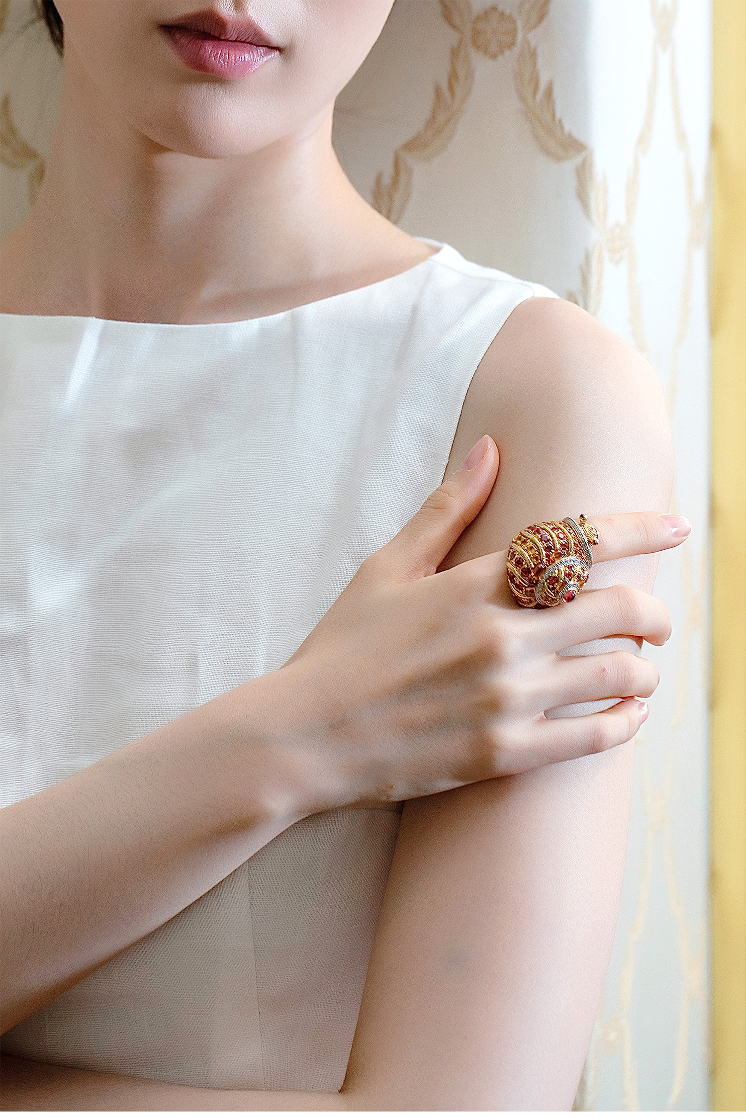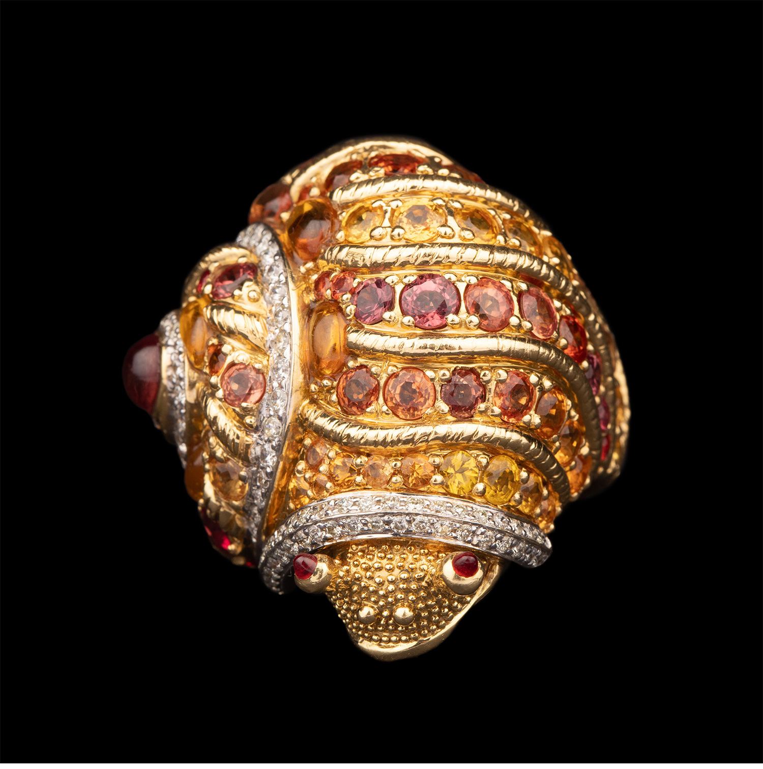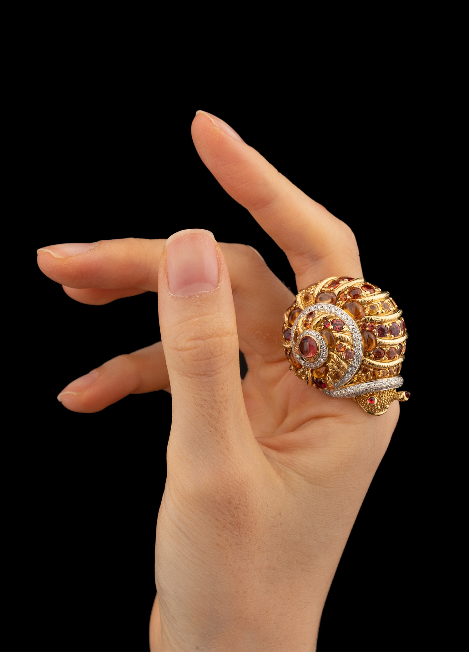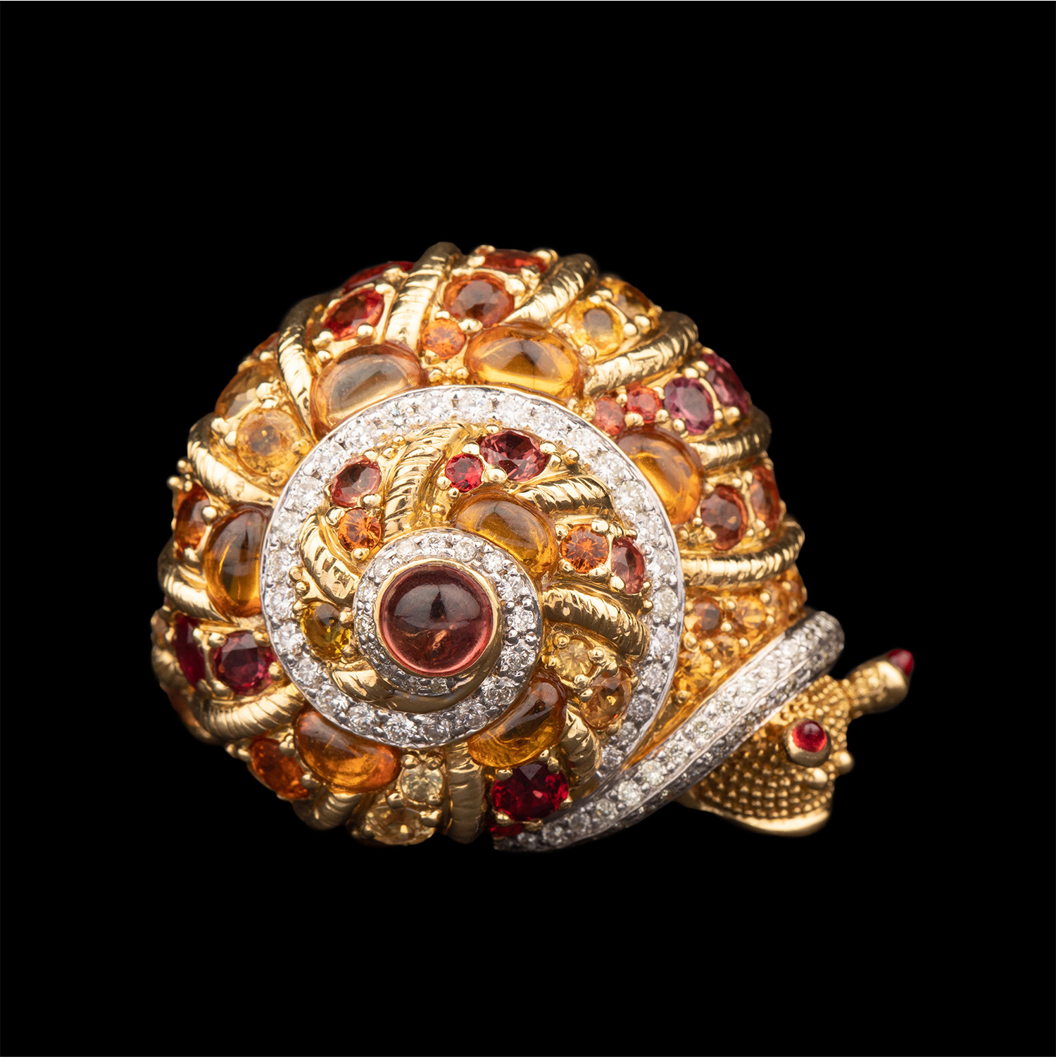 1970年代美国出品18K黄金镶嵌钻石碧玺及黄水晶「蜗牛」造型戒指