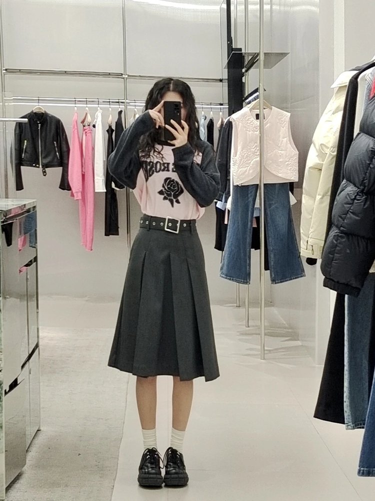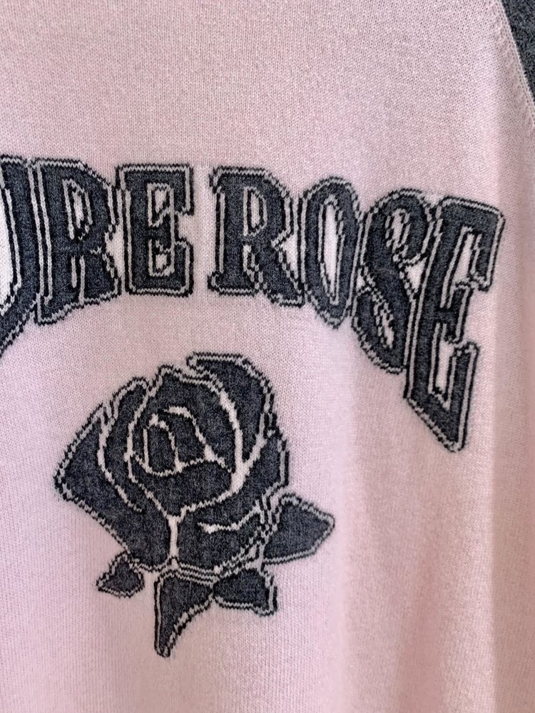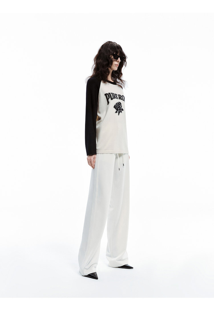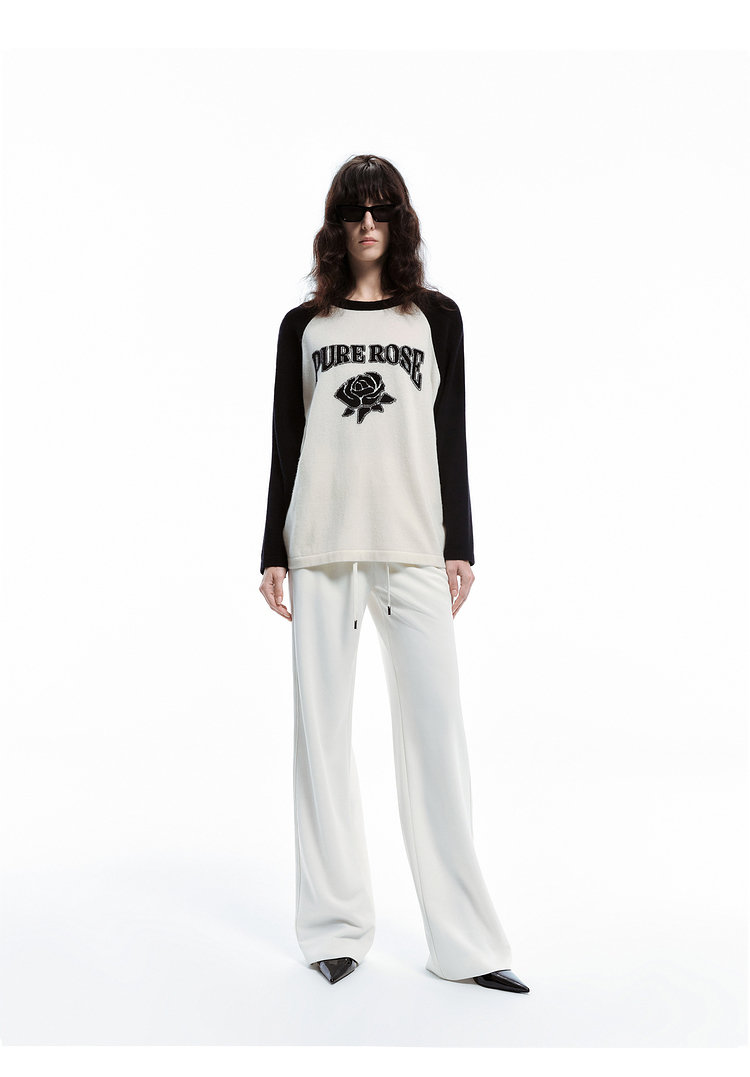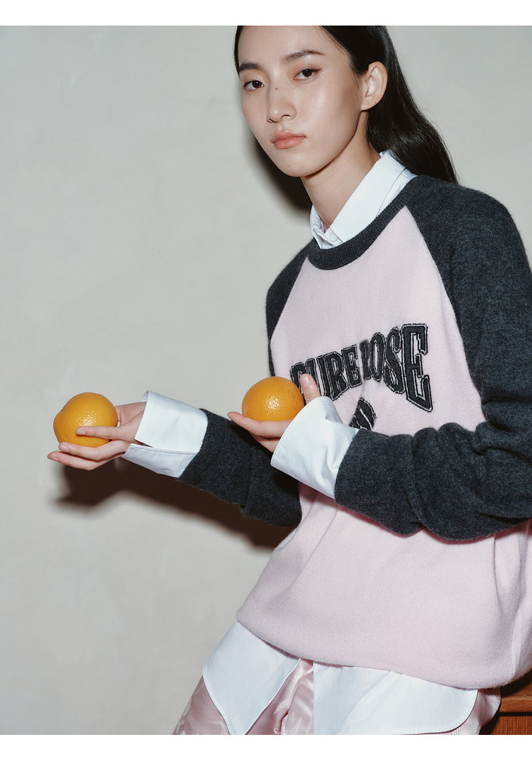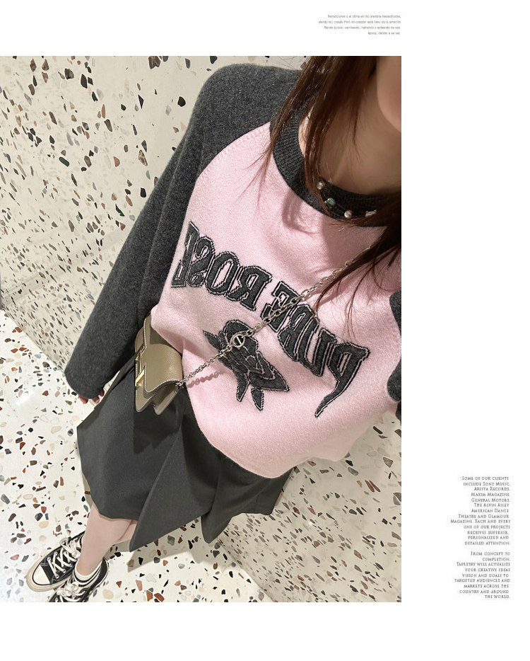 moco个性SLOGAN ”PURE ROSE[纯真的玫瑰]”美式街头毛衣,撞色插肩袖经典再现,复古又随性。