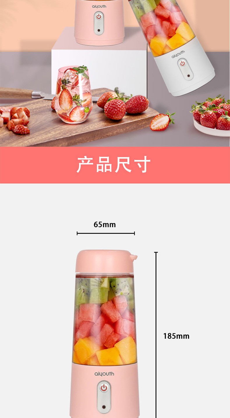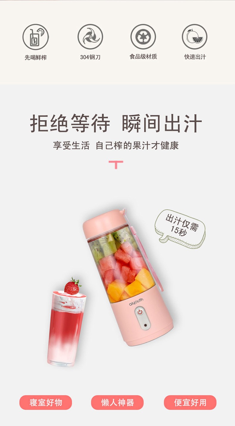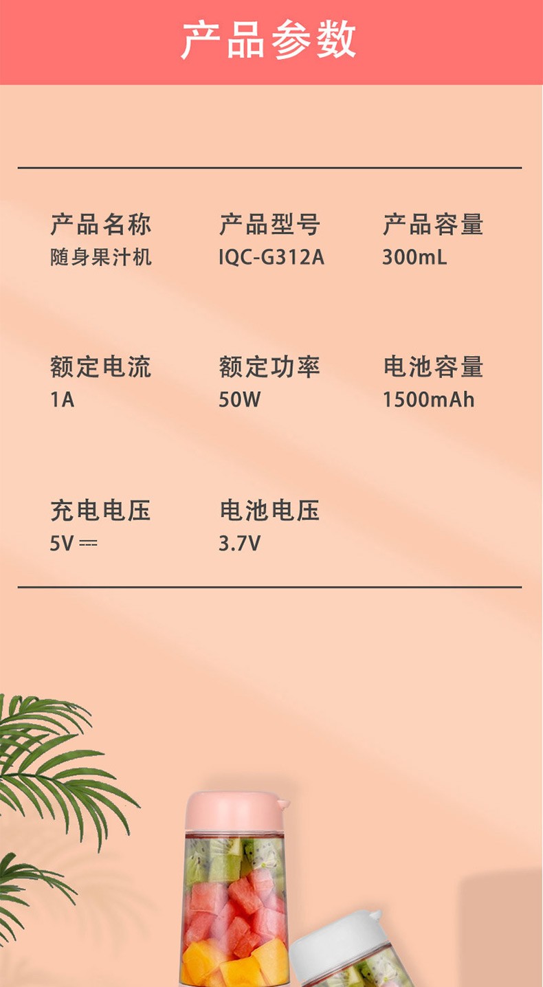 艾青春(AIYOUTH) 便携式榨汁机家用水果小型充电迷你炸果汁机电动学生榨汁机IQC-G312A