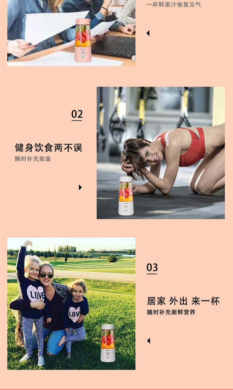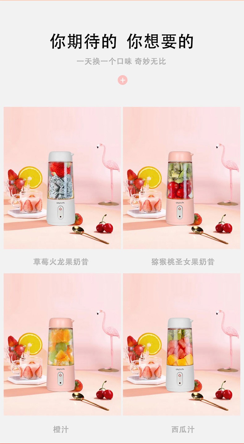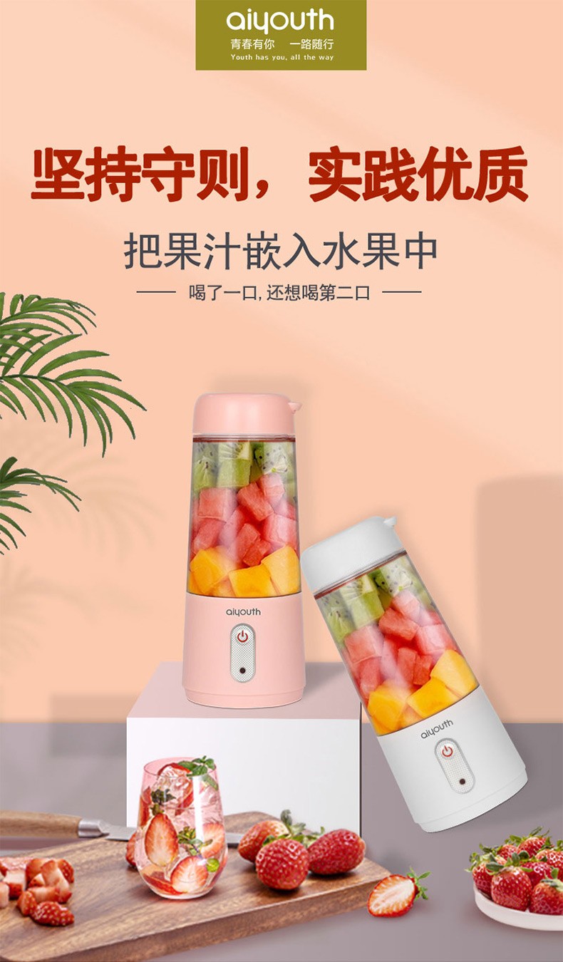 艾青春(AIYOUTH) 便携式榨汁机家用水果小型充电迷你炸果汁机电动学生榨汁机IQC-G312A