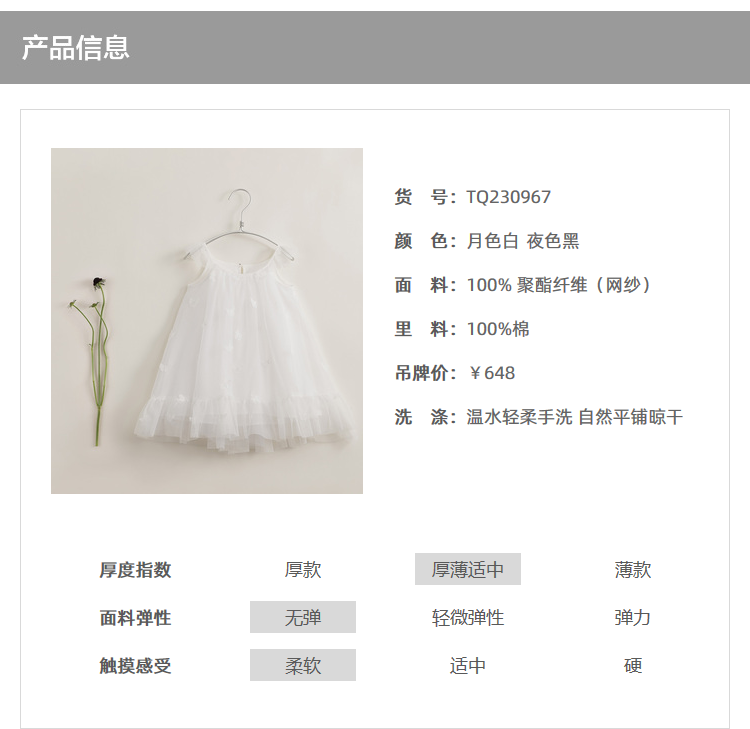 【马克珍妮 芦芙】新款夏装 女童蝴蝶网纱吊带连衣裙230967