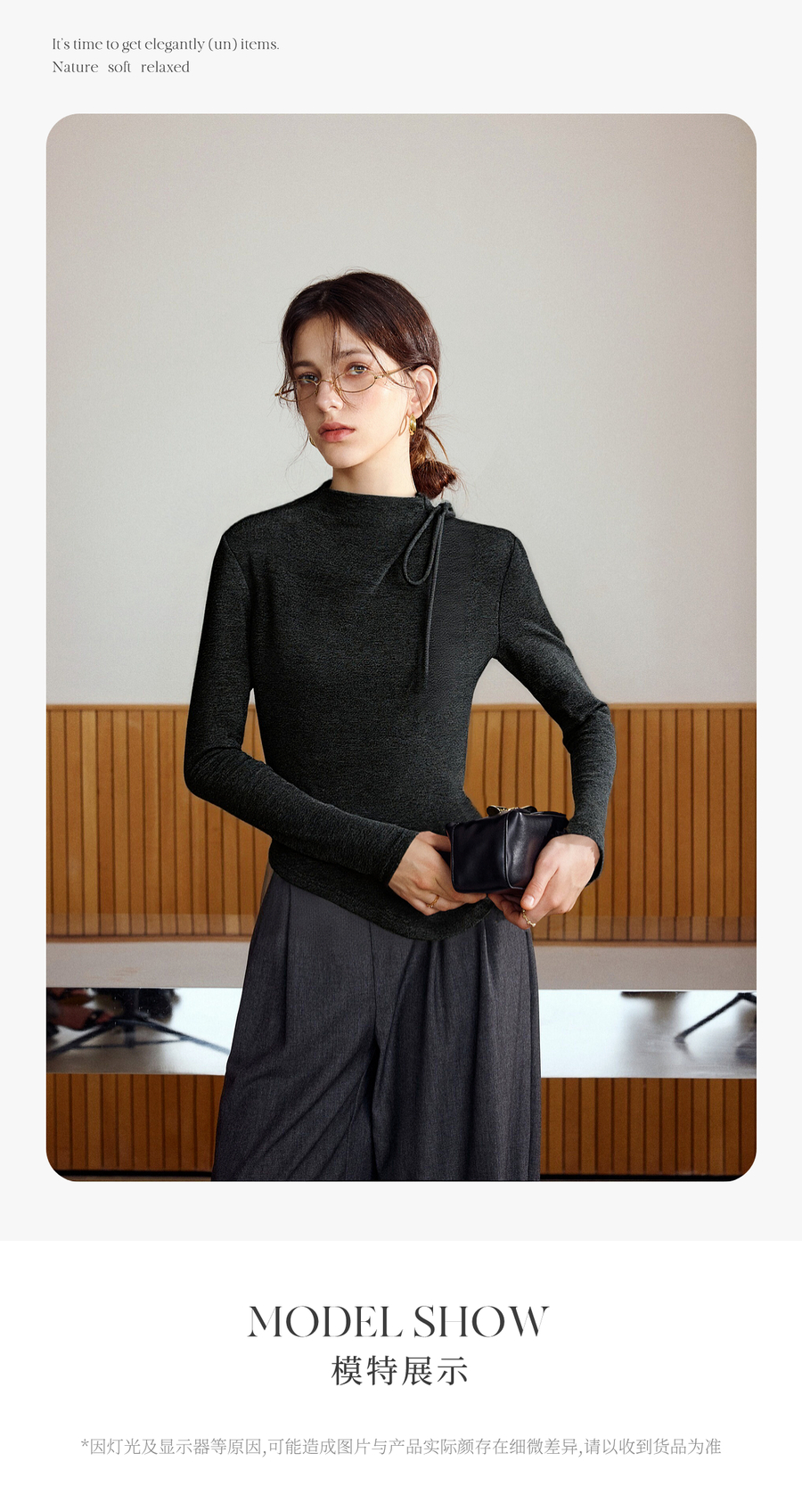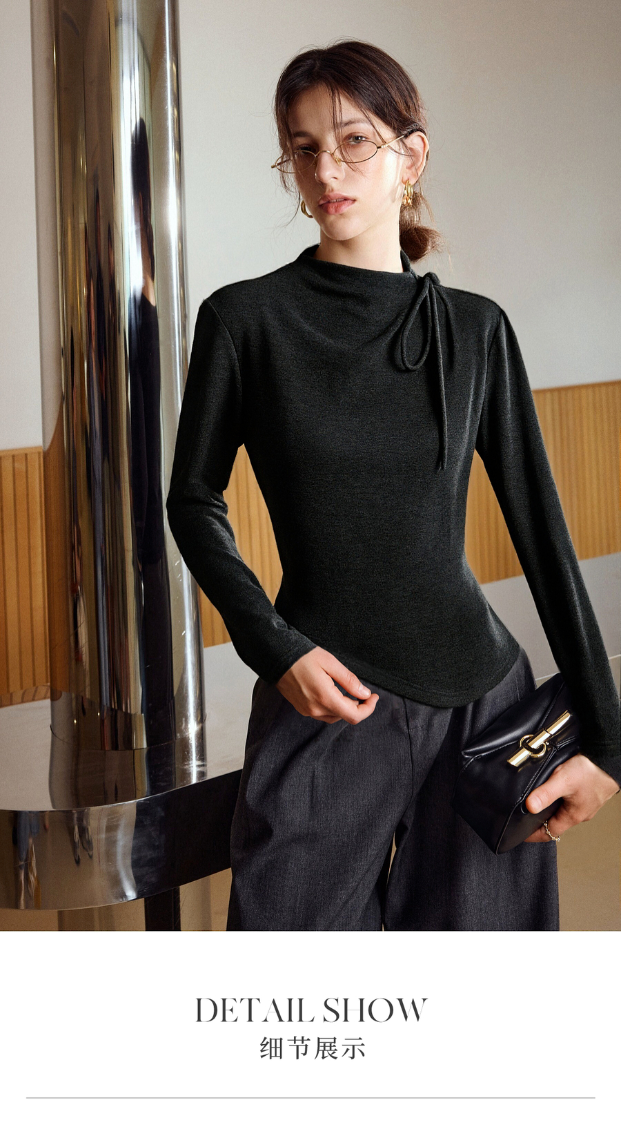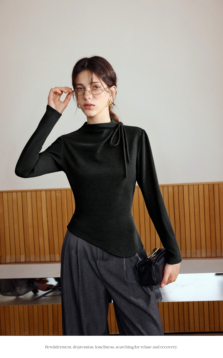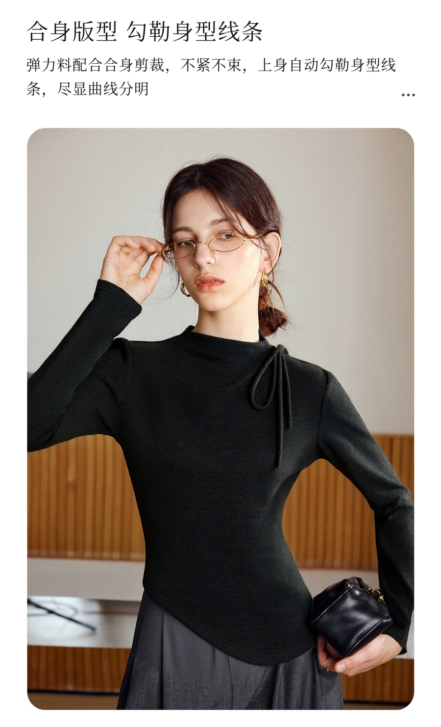 气质半高领绑带设计感保暖打底衫女冬季不规则下摆套头长袖T恤
