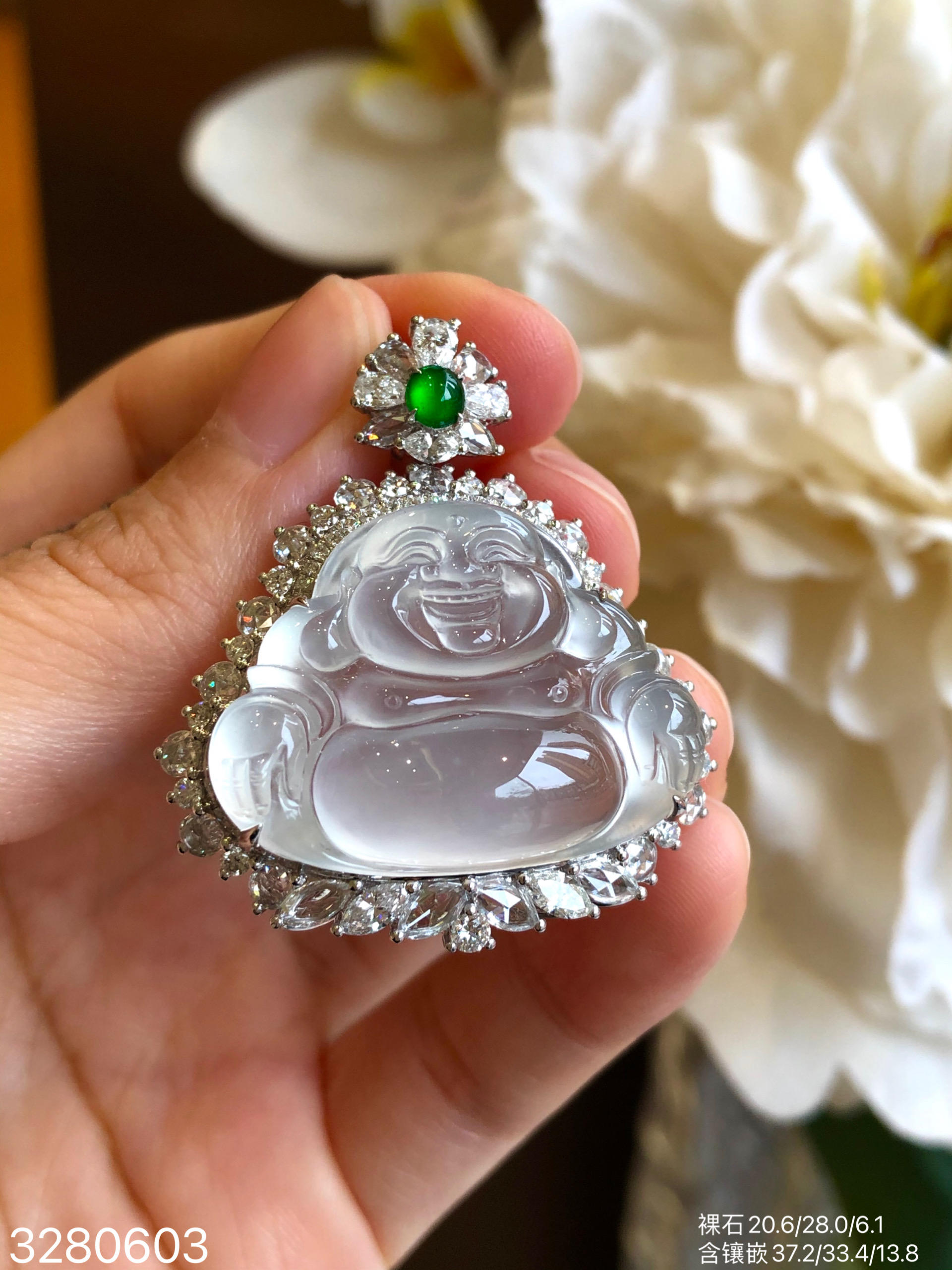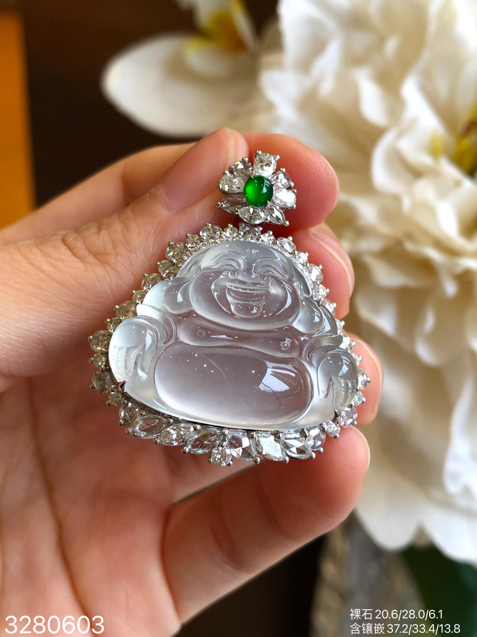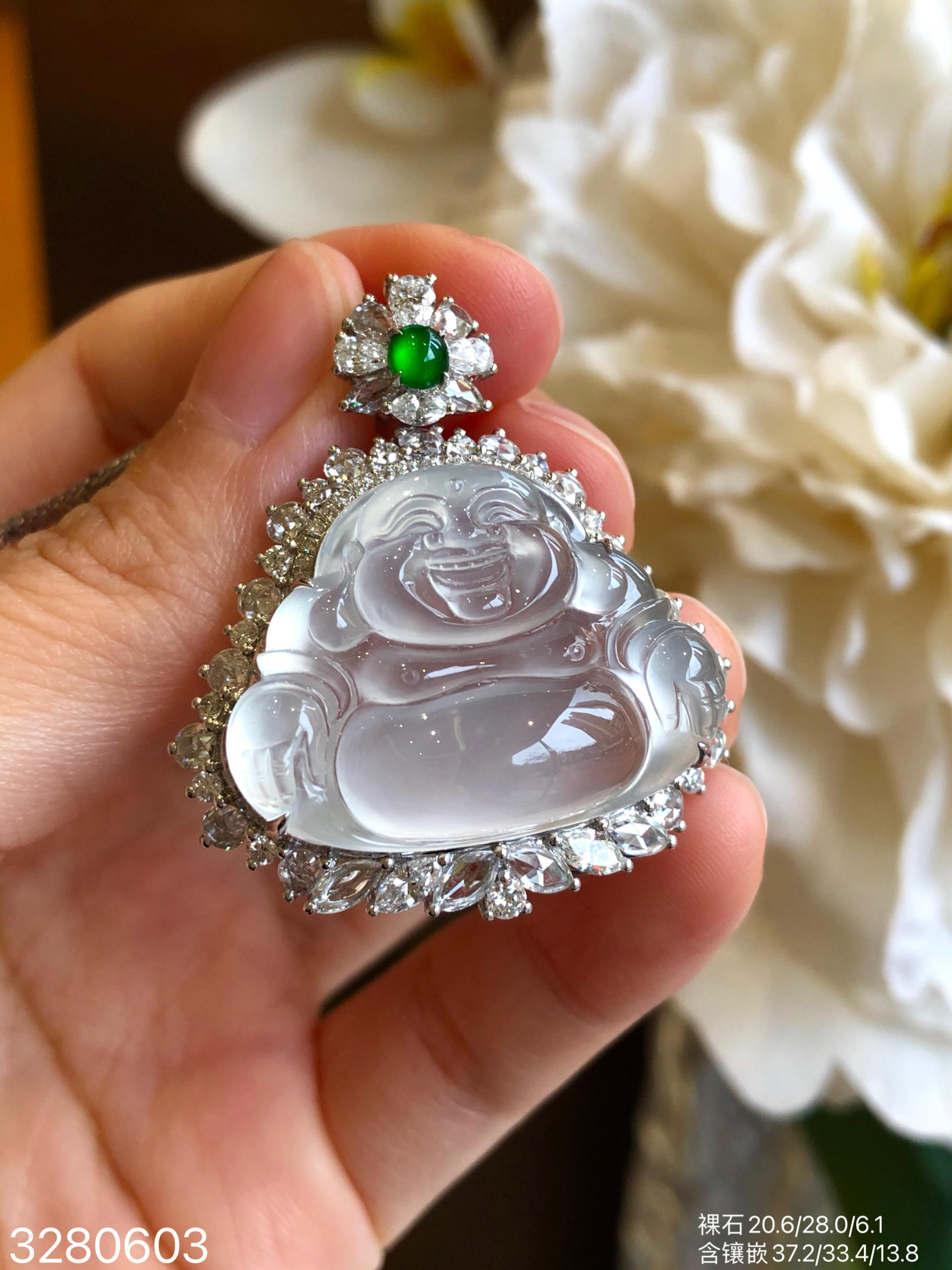 玻璃种飘翠玉兰花吊坠【6250203】具体价格微信咨询