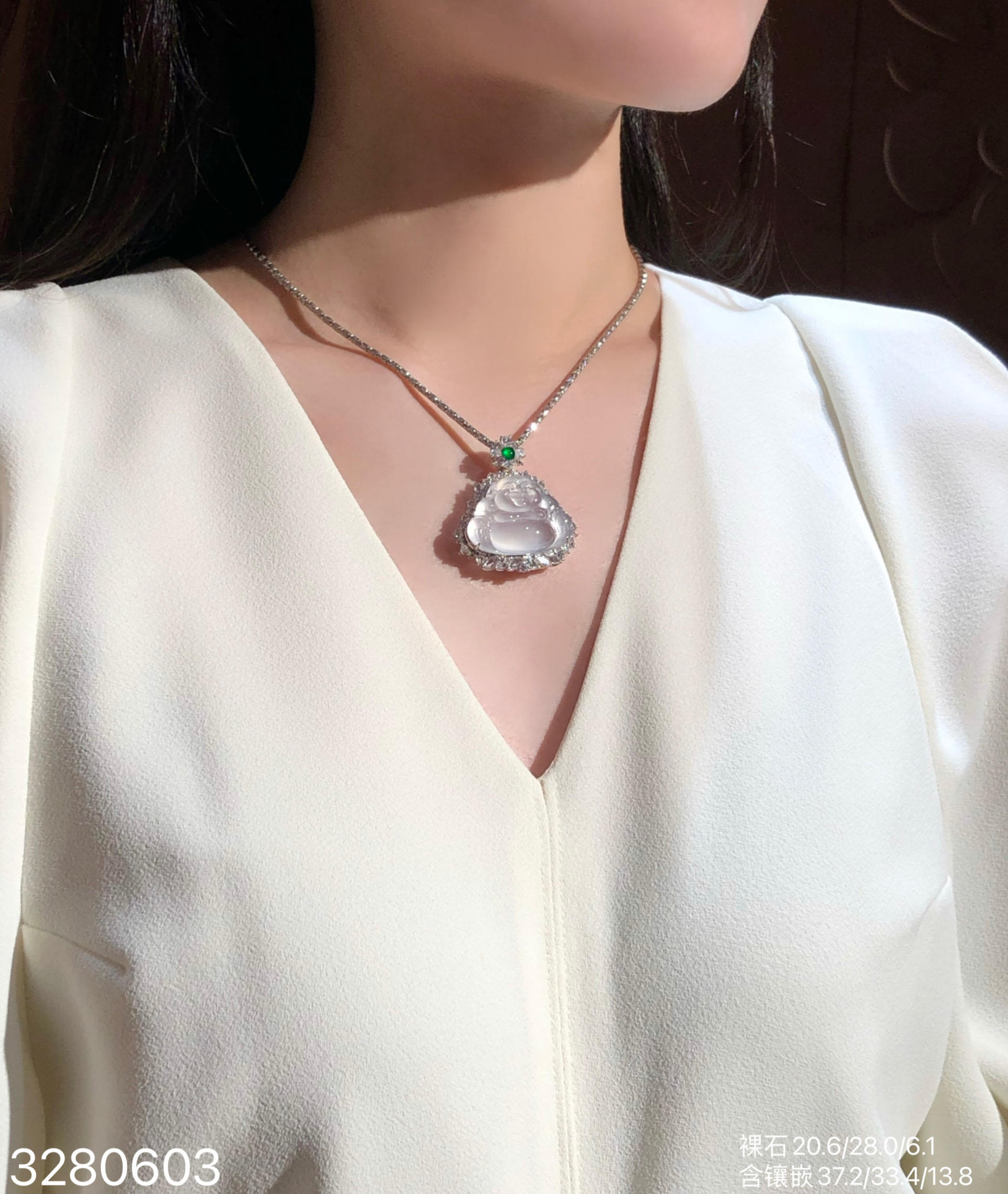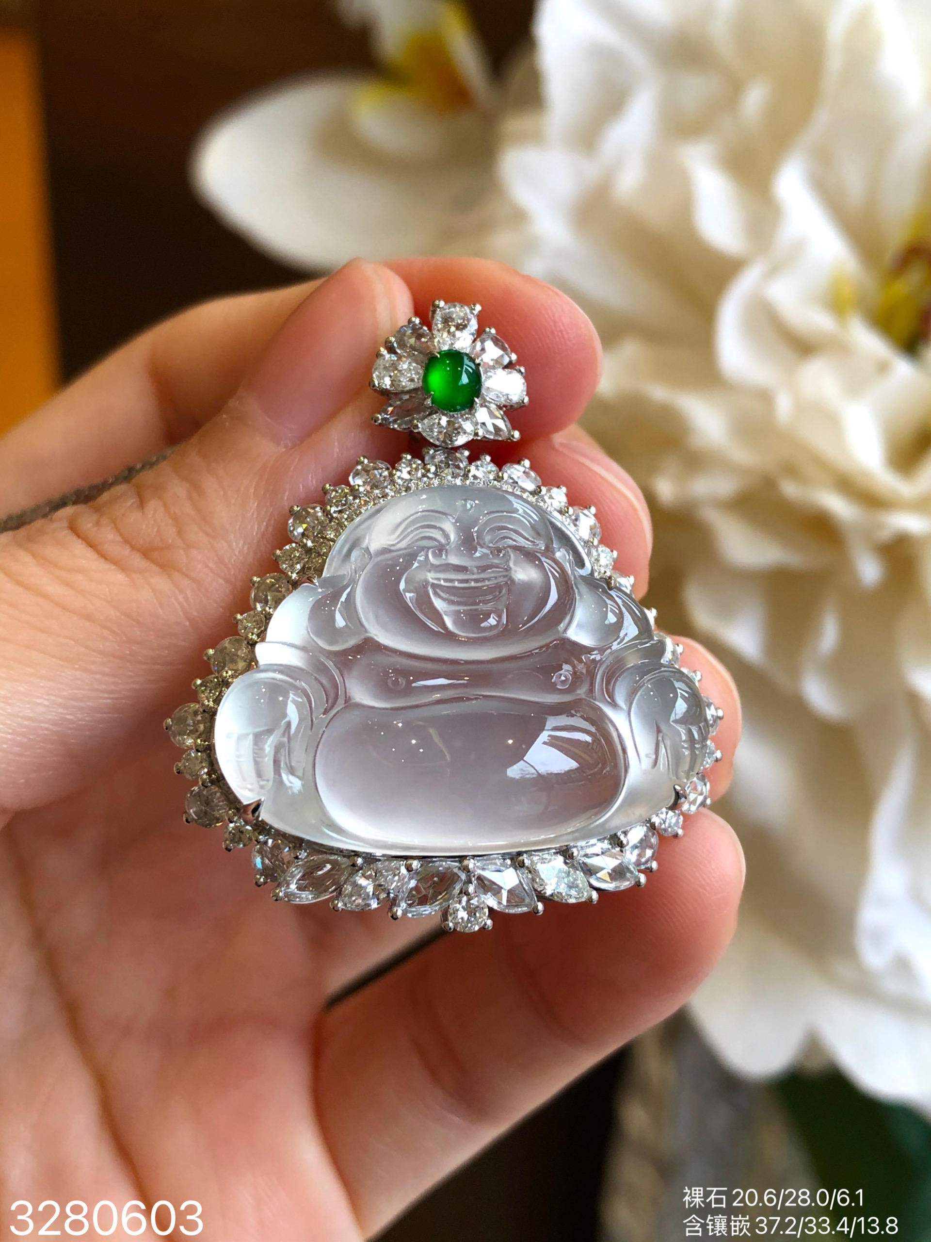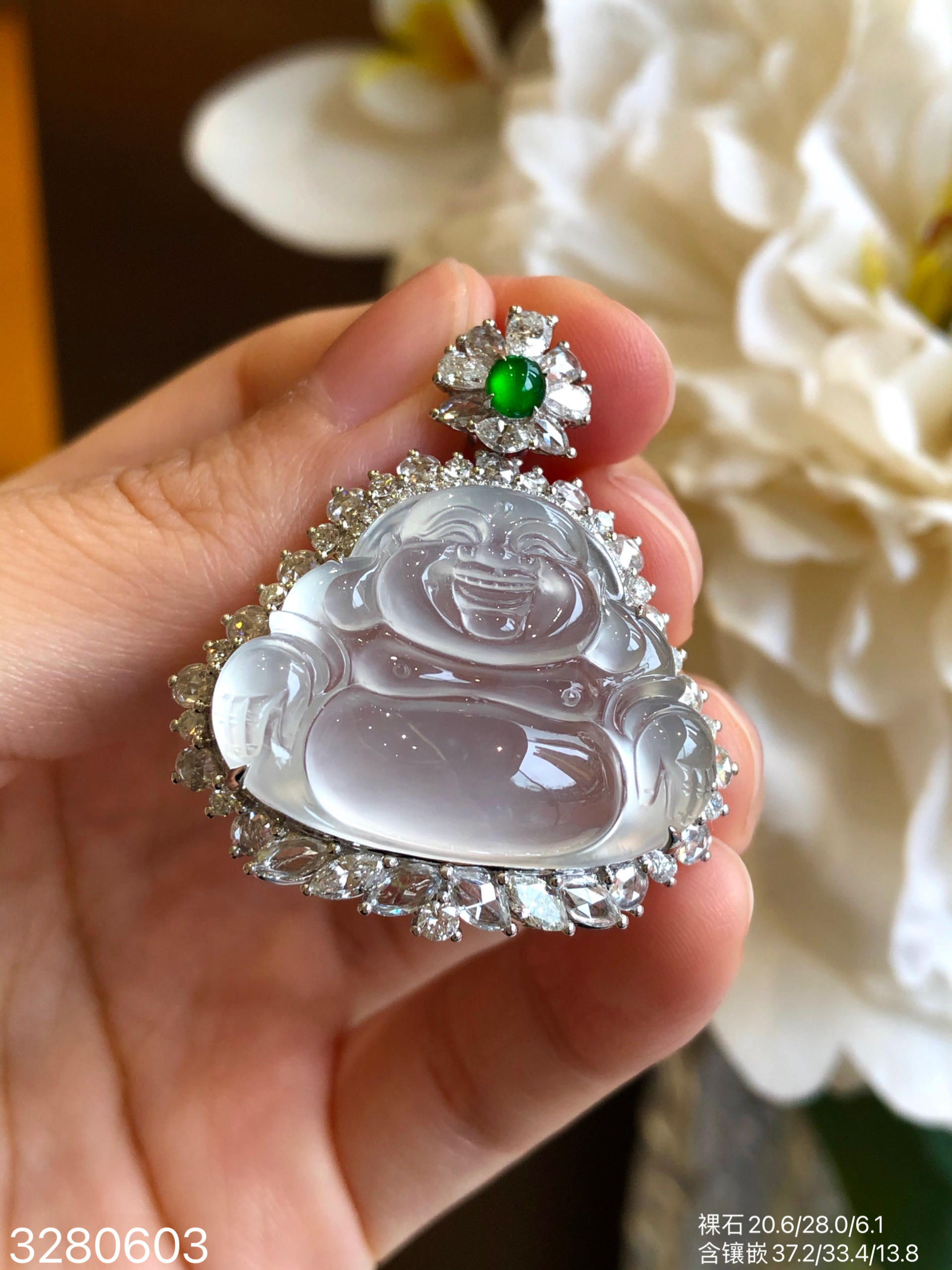 玻璃种飘翠玉兰花吊坠【6250203】具体价格微信咨询