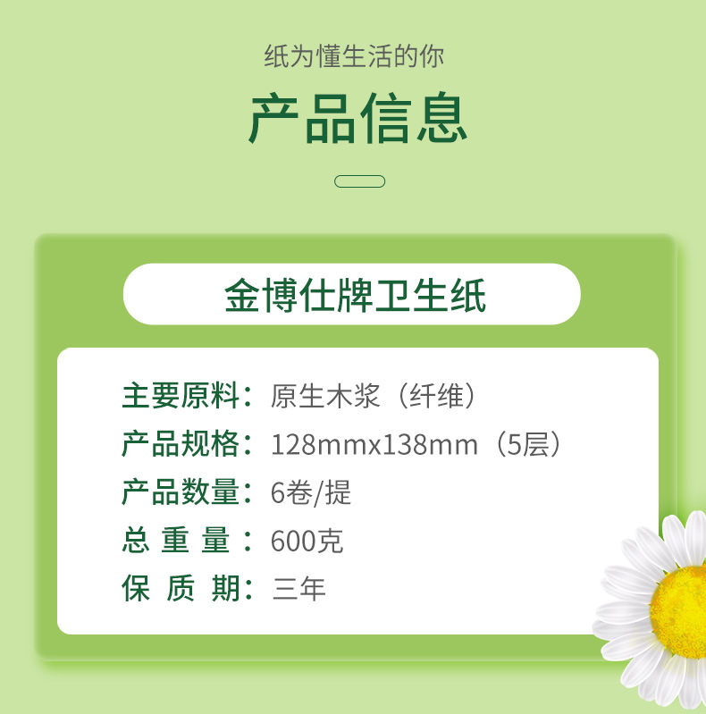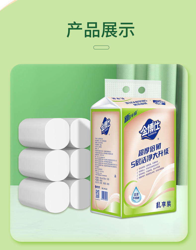 「6卷装!五层加厚」金博仕五层加厚600克小卷卫生纸卷纸 居家日用实惠装可湿水纸巾厕纸