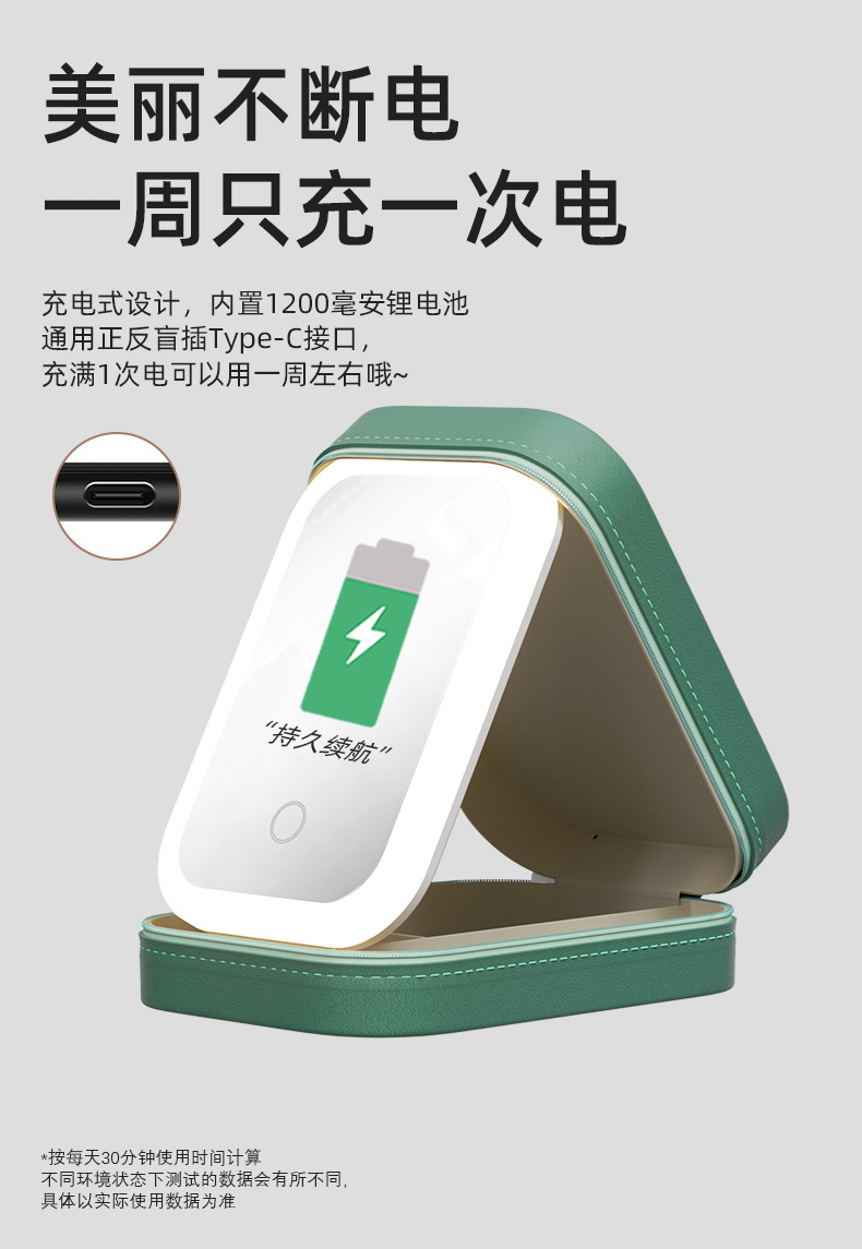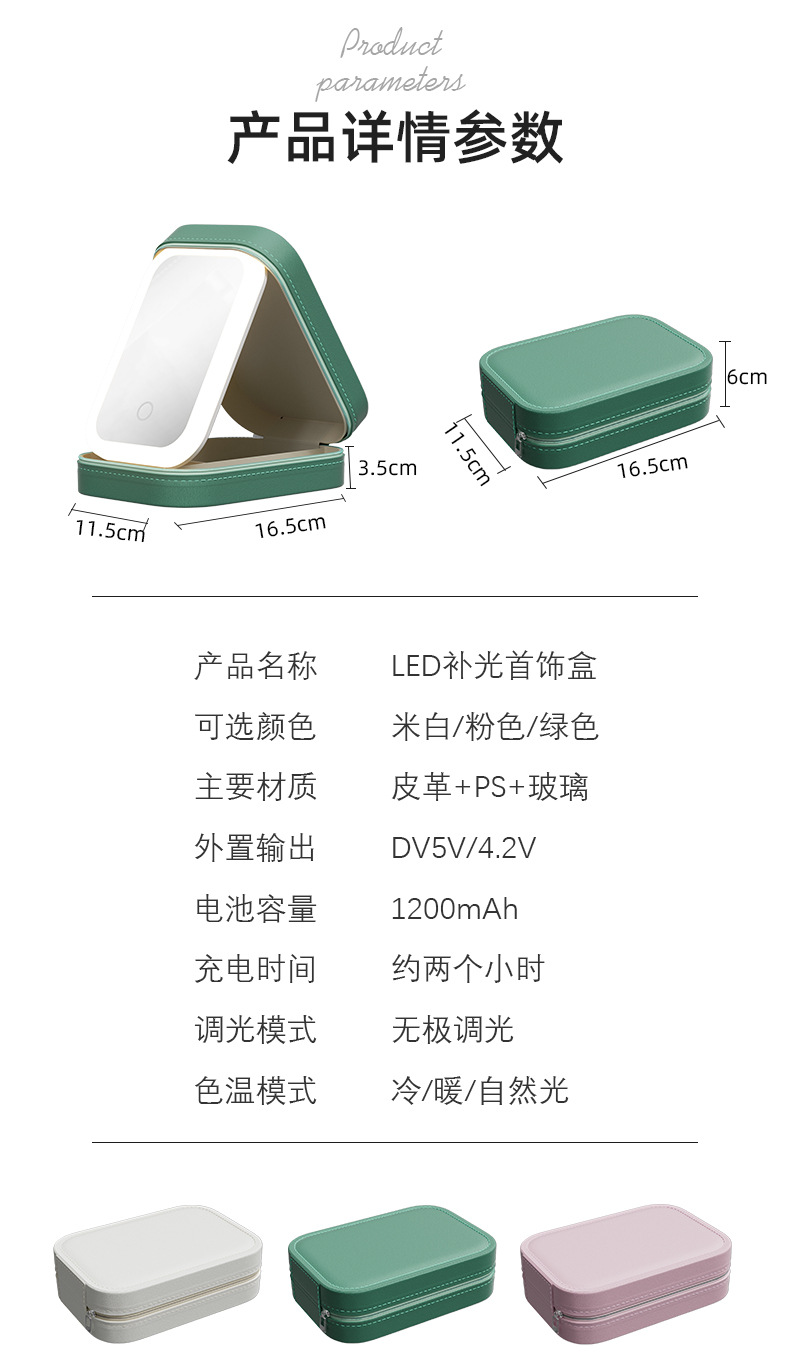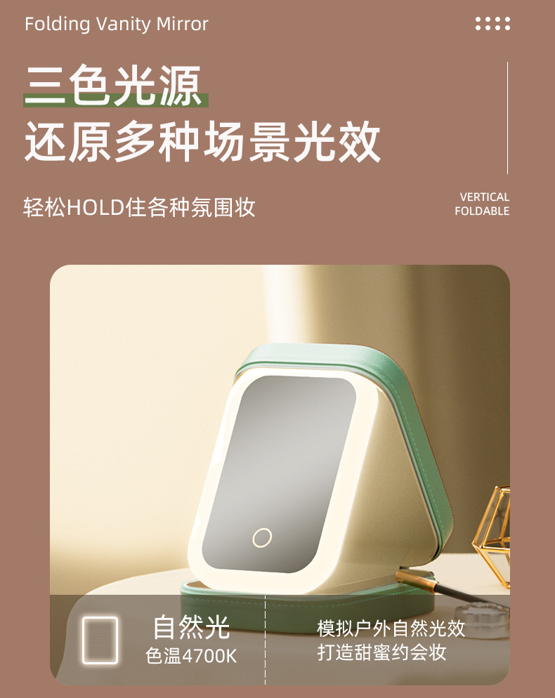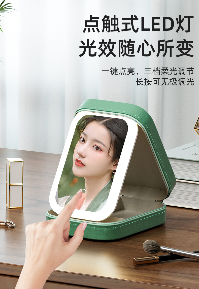 「三色可选!收纳化妆二合一」多功能LED化妆镜 带灯三色可调镜子 折叠一体式首饰盒化妆品收纳整理盒 商品图4