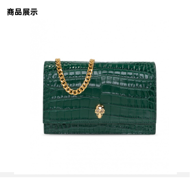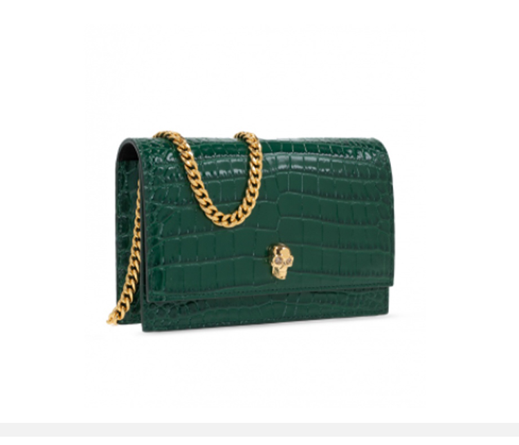 ALEXANDER MCQUEEN 亚历山大.麦昆 女士皮革鳄鱼压纹小号斜挎单肩骷髅包 绿色 613088 1HB0G 3120