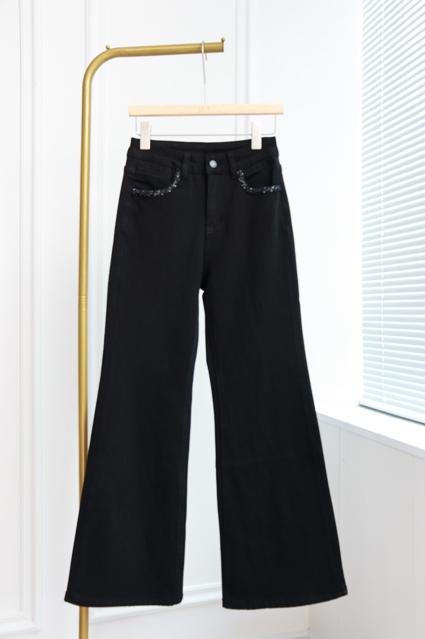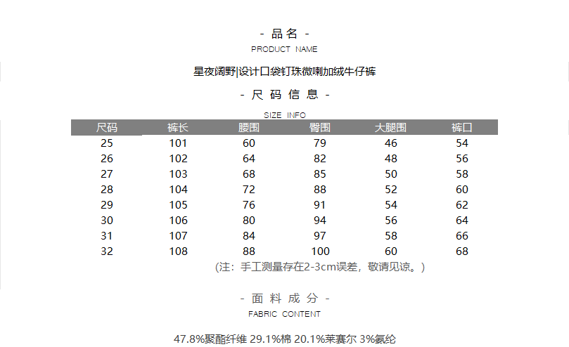 星夜阔野|设计口袋钉珠微喇加绒牛仔裤