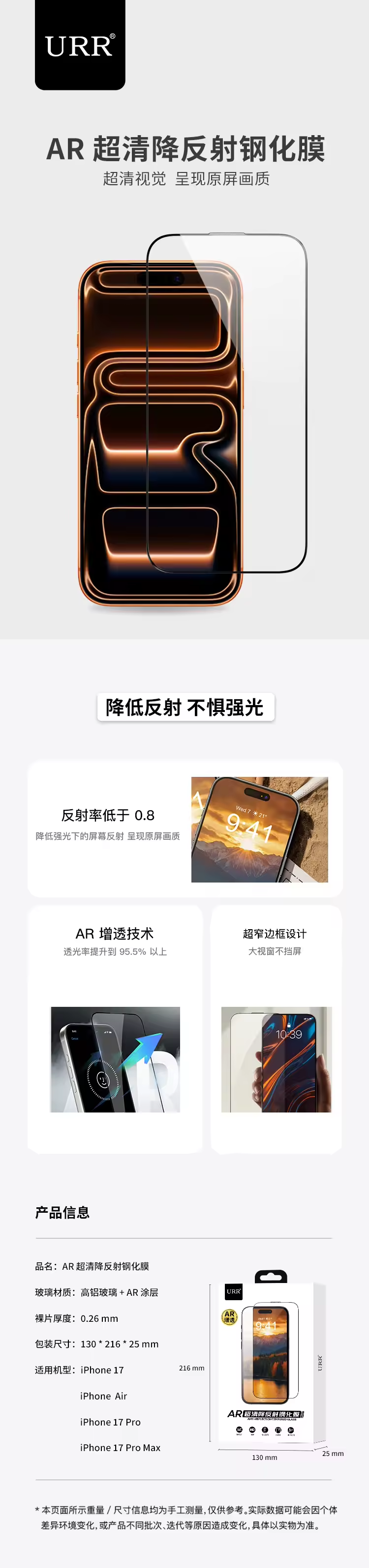 保护膜 iPhone 17 AR抗反射丝印高清-urr