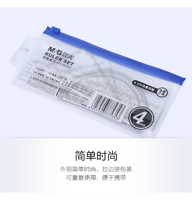 晨光(M&G)文具学生套尺直尺三角尺量角器绘图考试4件套尺子套装ARL96042