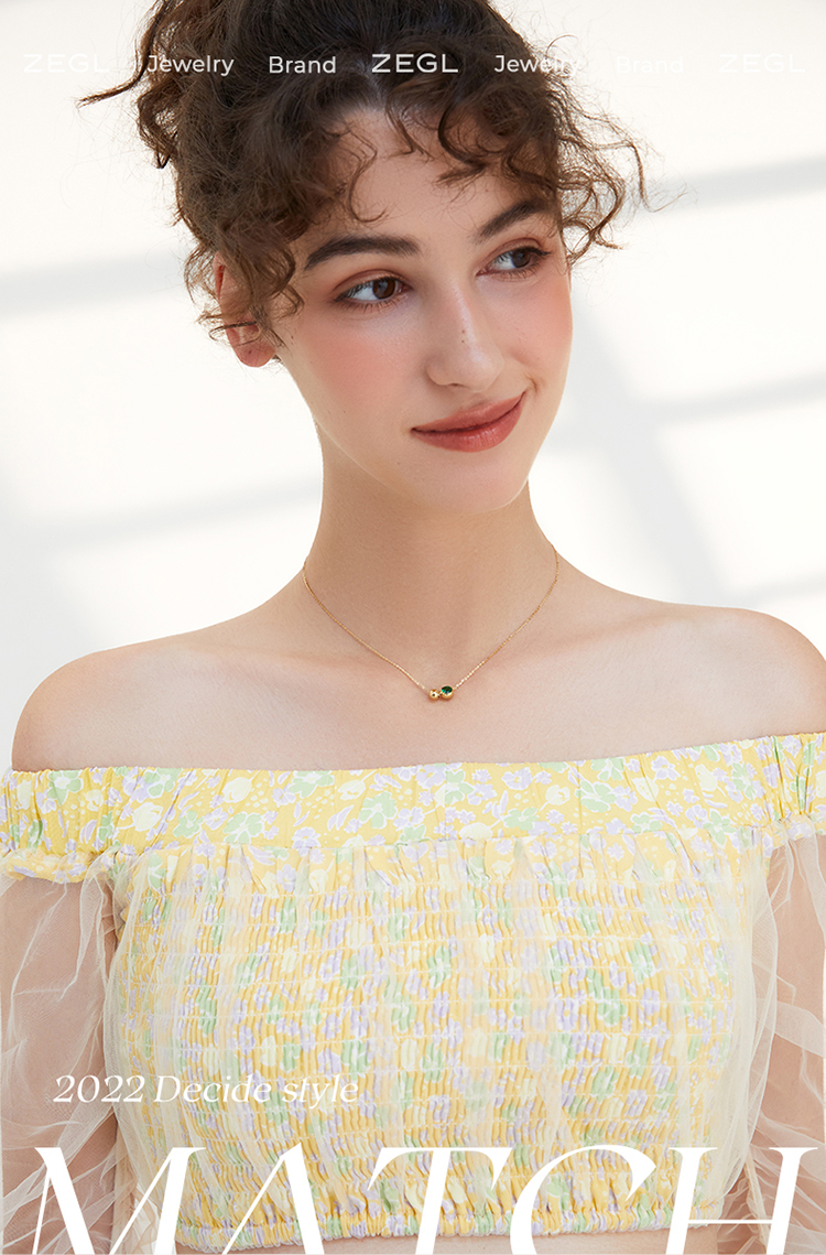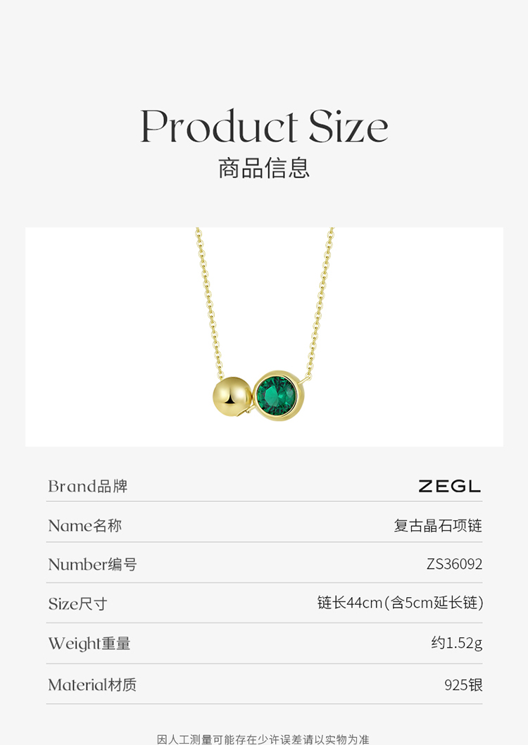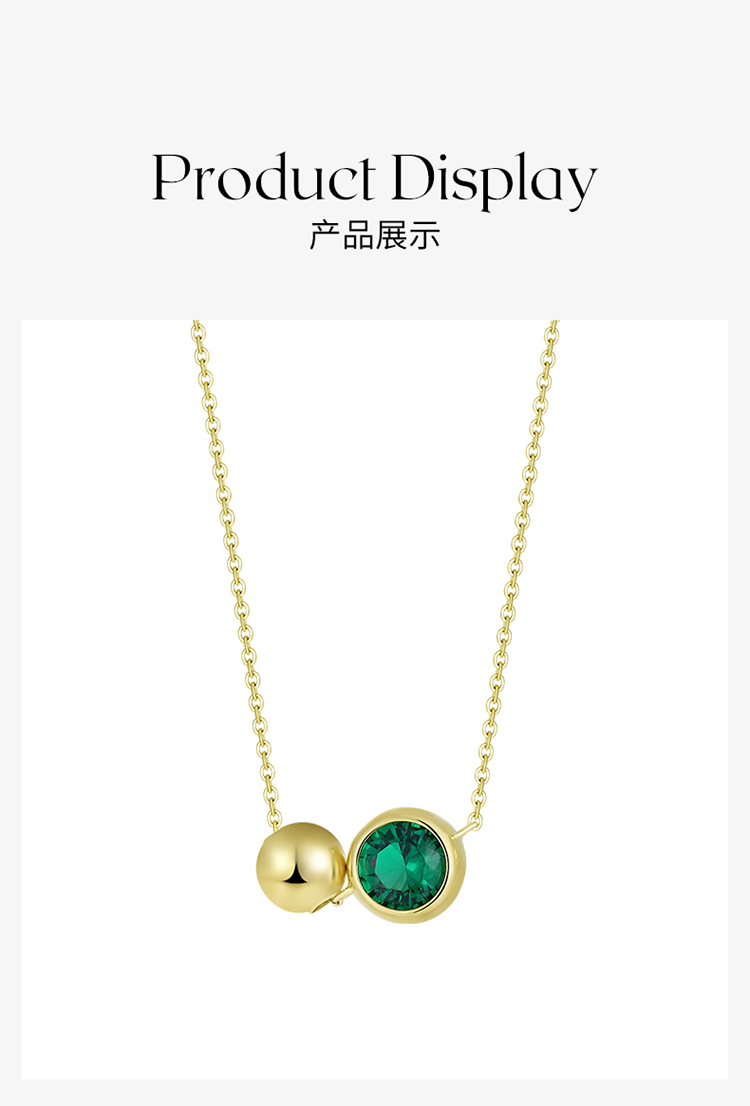 ZEGL925纯银祖母绿圆珠项链女高级感轻奢小众2022年新款潮锁骨链