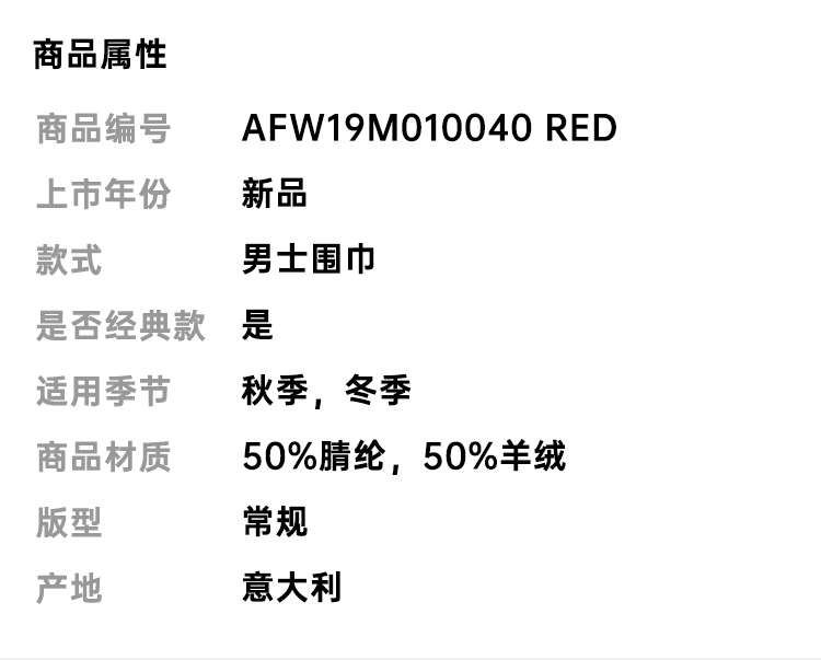 【闫桉同款】GCDS 男士字母徽标提花围巾 红色 AFW19M010040 RED