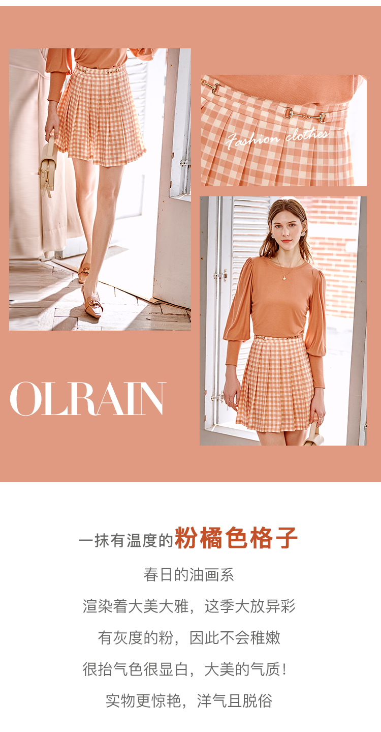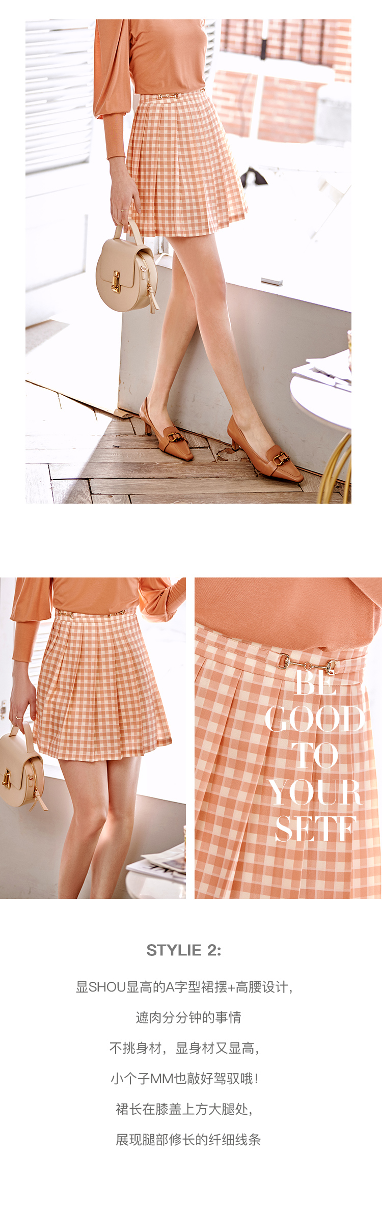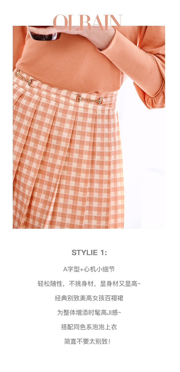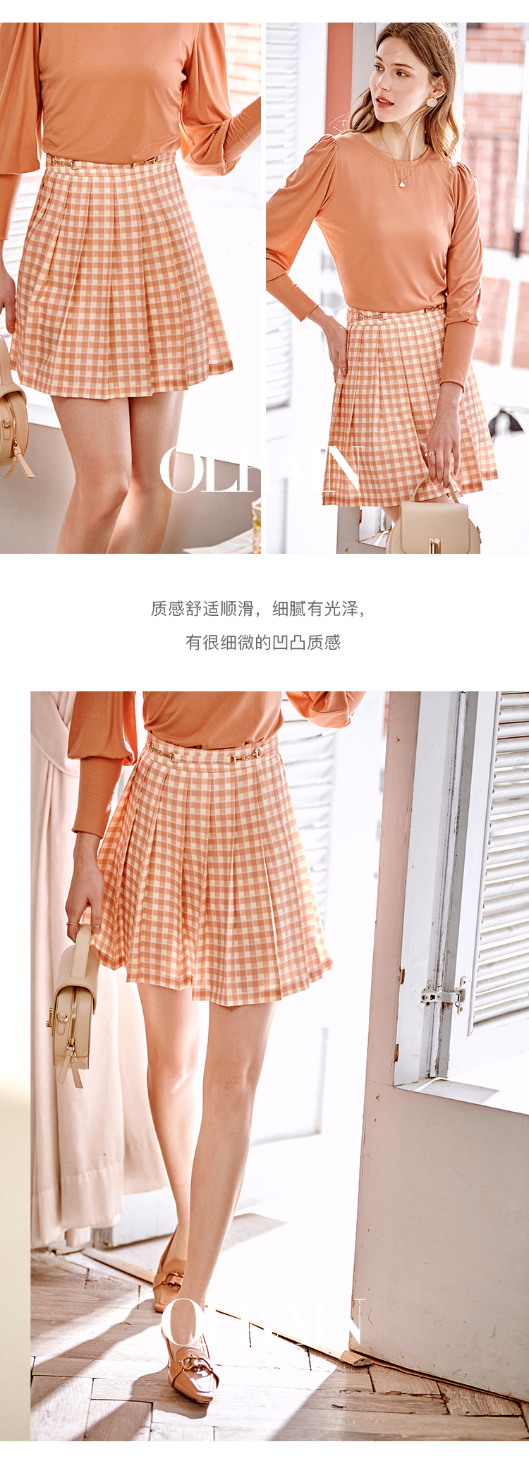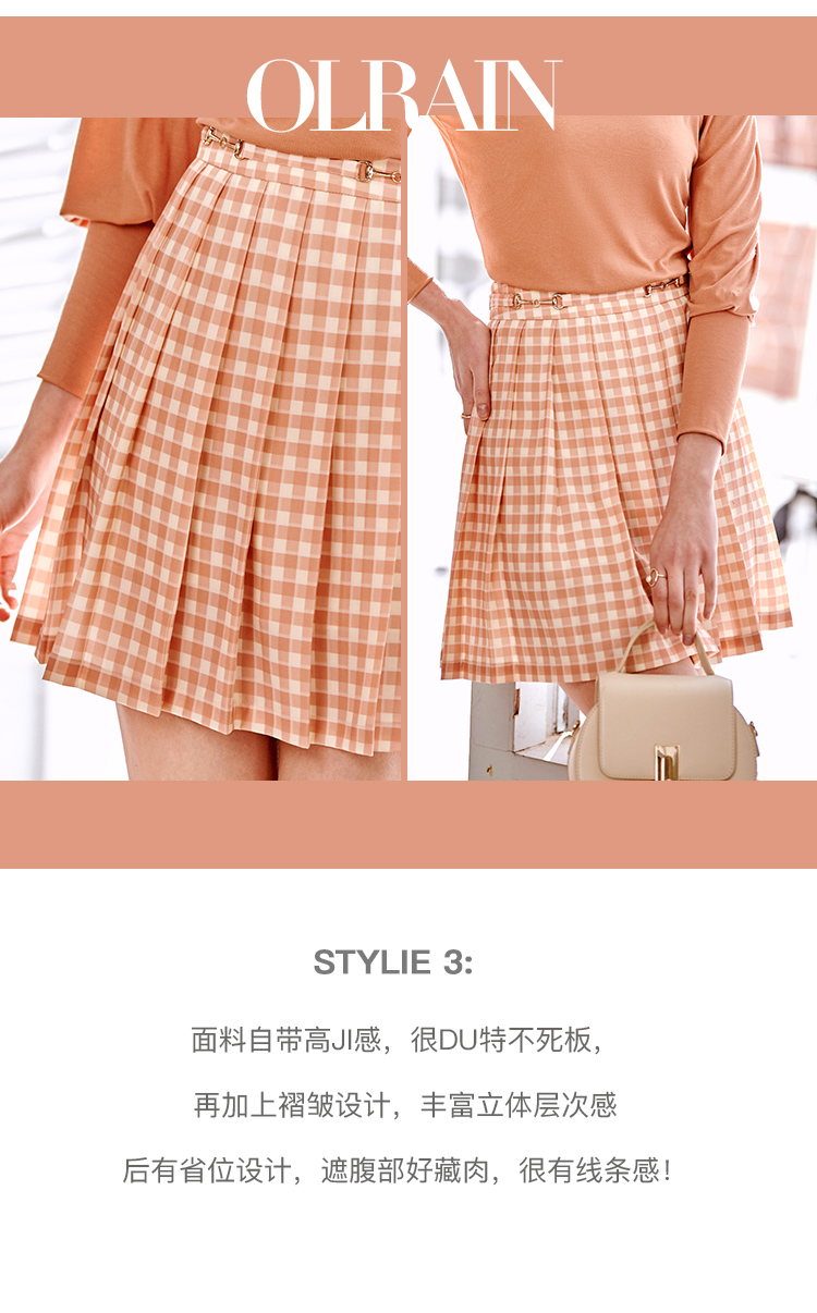 欧芮儿格子半身裙女春季新款时髦减龄优雅百搭小个子A字百褶短裙