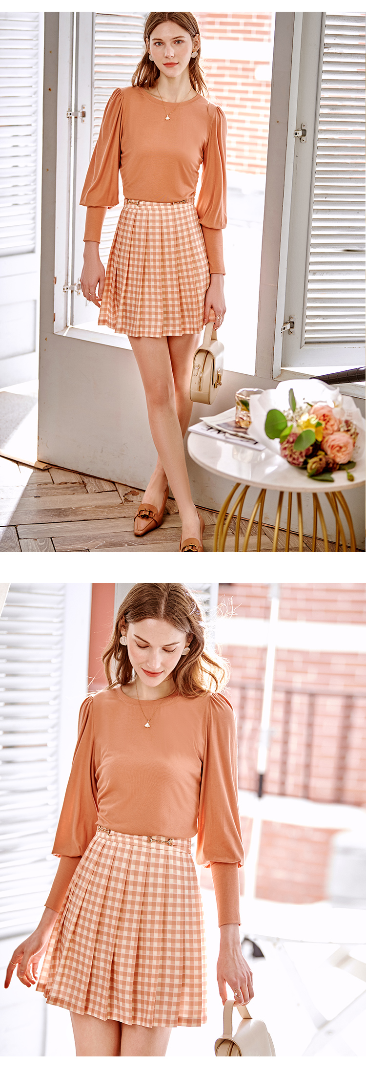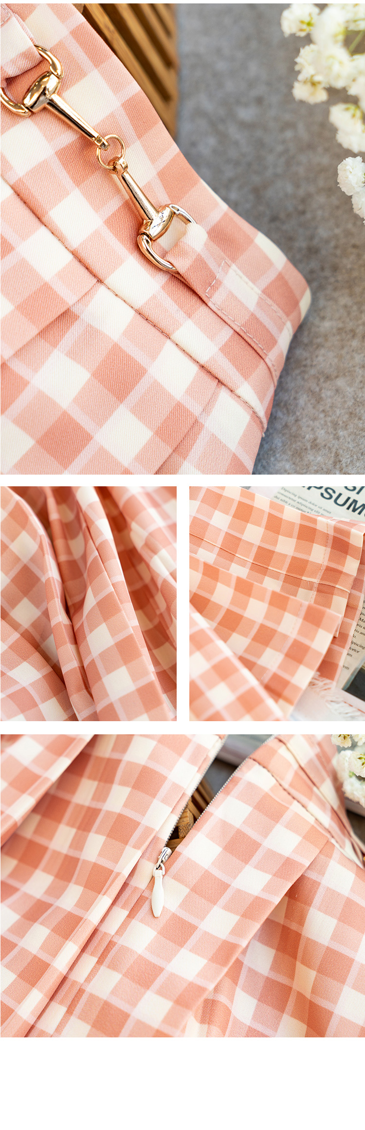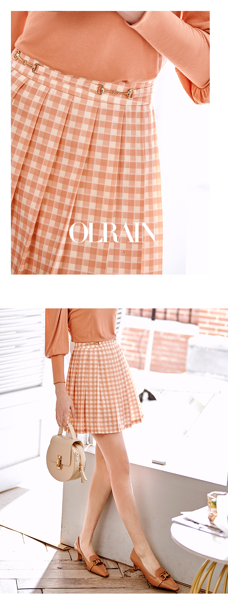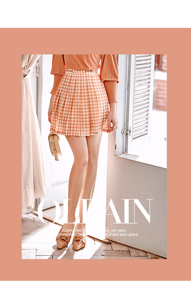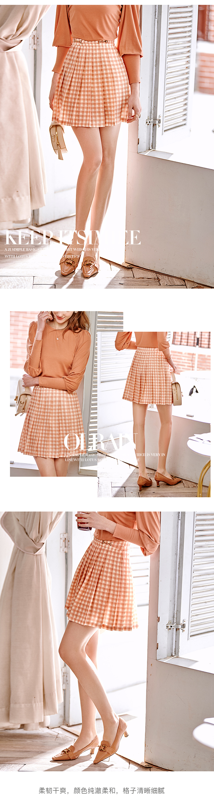 欧芮儿格子半身裙女春季新款时髦减龄优雅百搭小个子A字百褶短裙