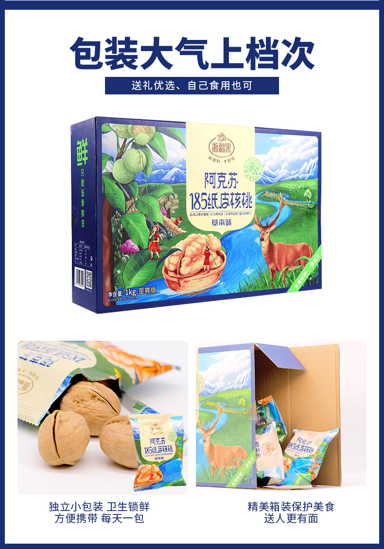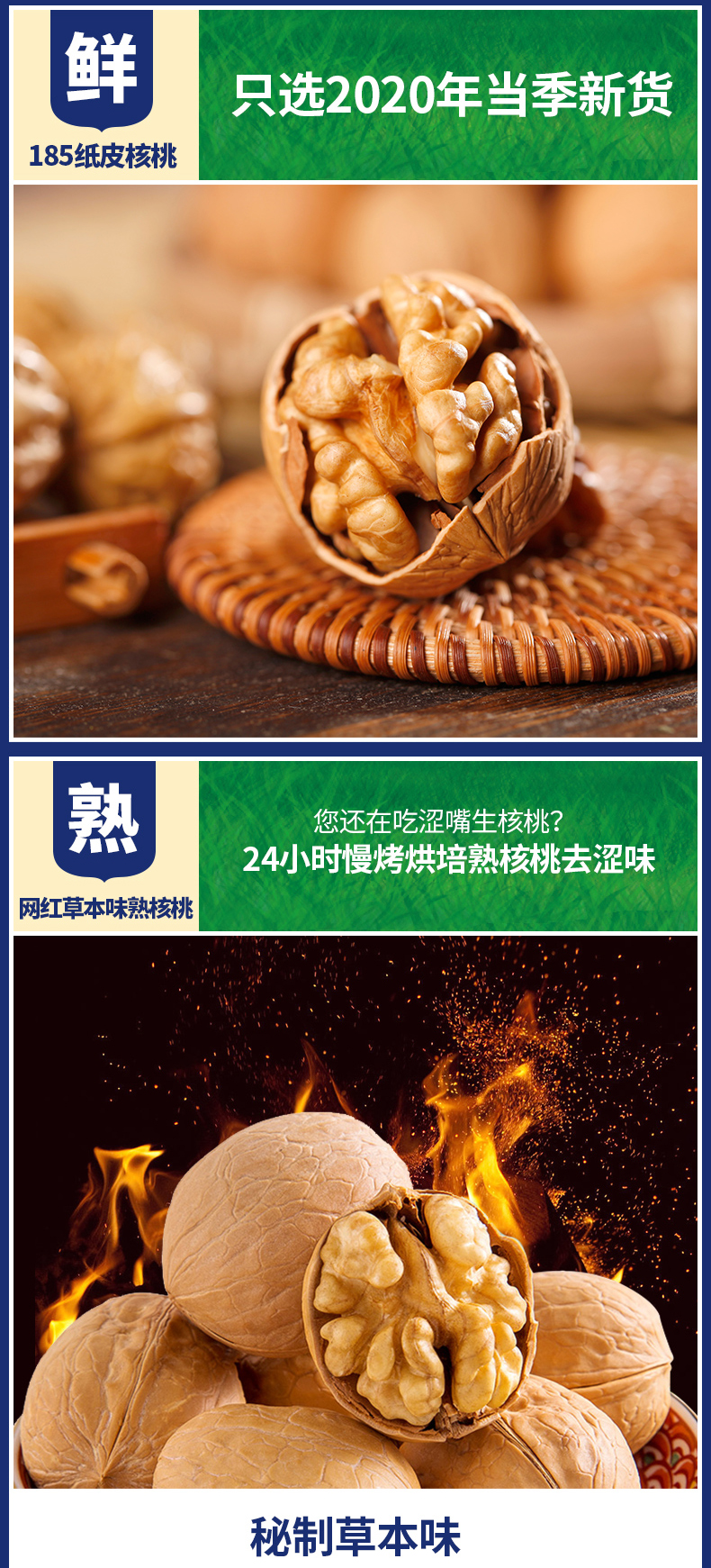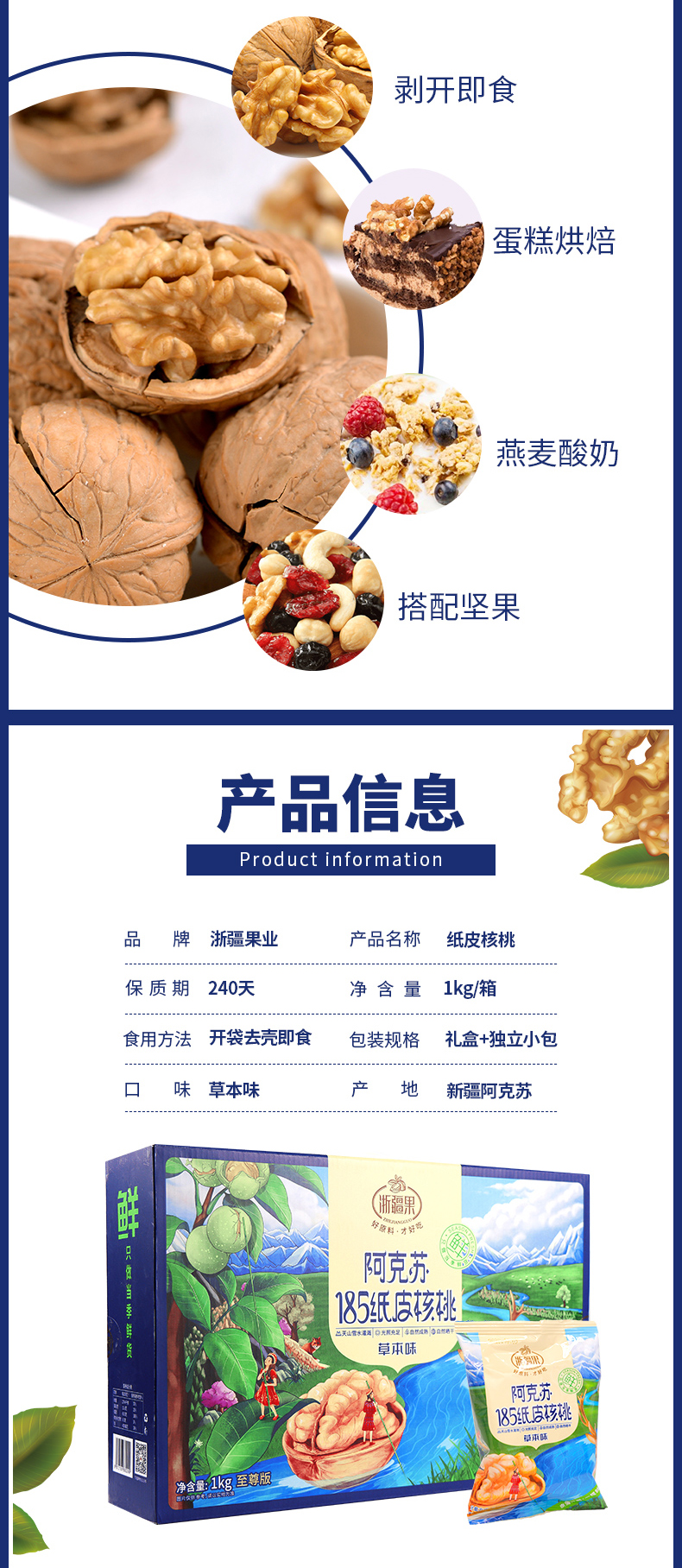 【新品上线】浙疆果 新疆纸皮核桃薄皮2020新货阿克苏185薄壳手剥 草本味熟核桃 孕妇零食 休闲食品 坚果炒货 1000g-草本味-礼盒装