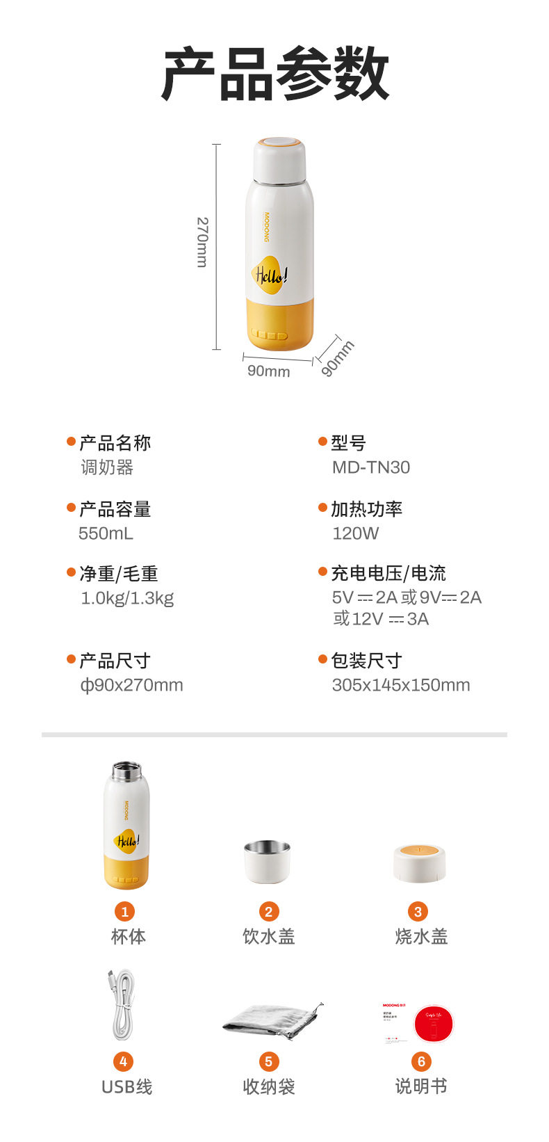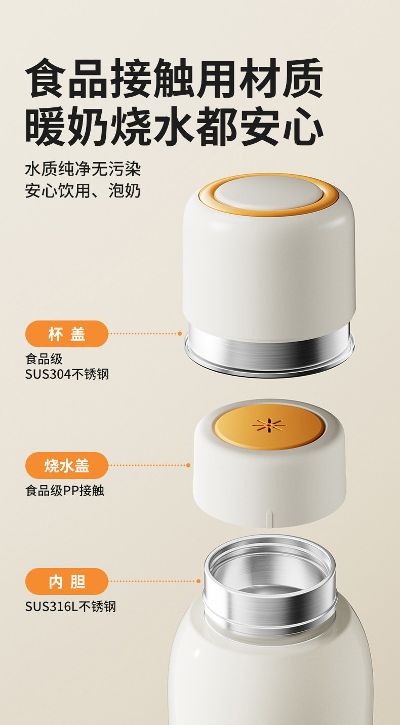产品规格:橙色、USB充电/充电宝充电/车载充电、316L不锈钢内胆