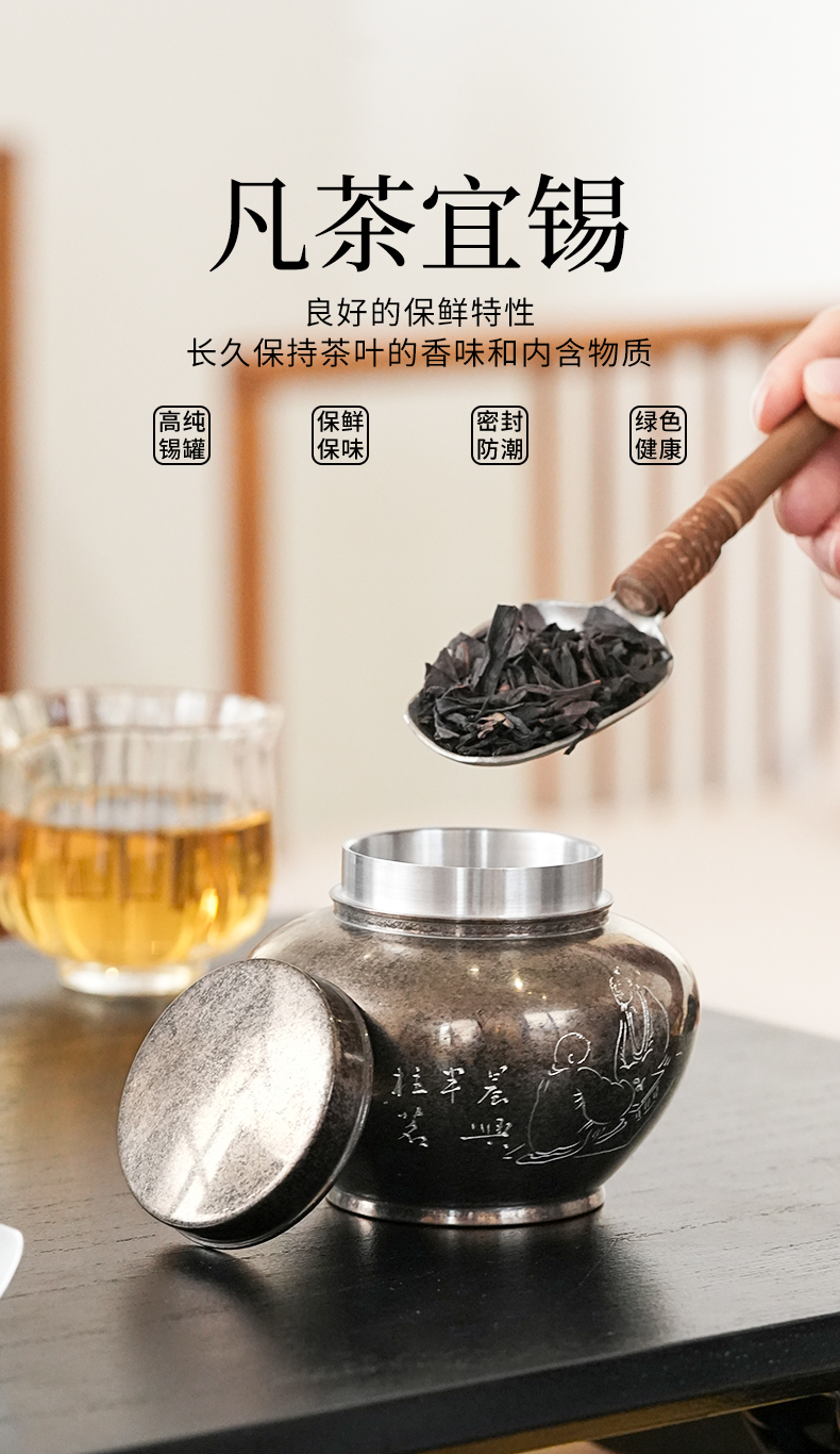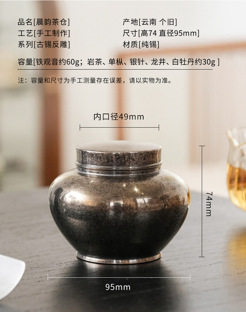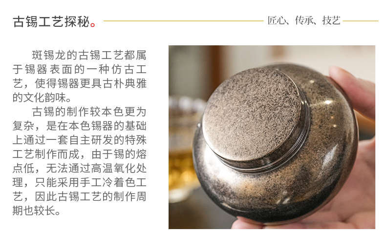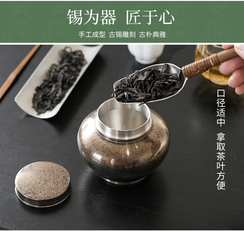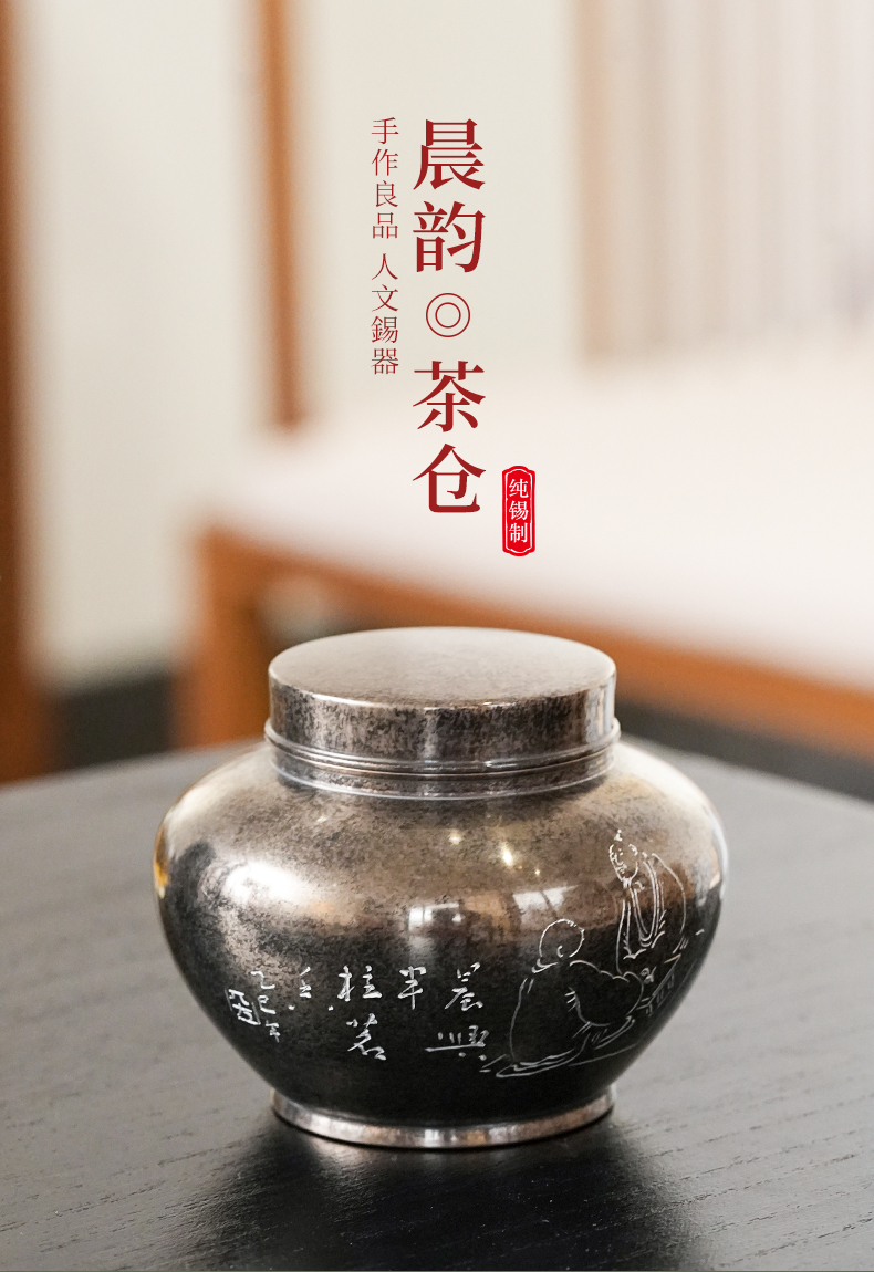 斑锡龙锡罐晨韵茶仓纯锡茶叶罐复古小号密封储茶手工云南个旧锡器