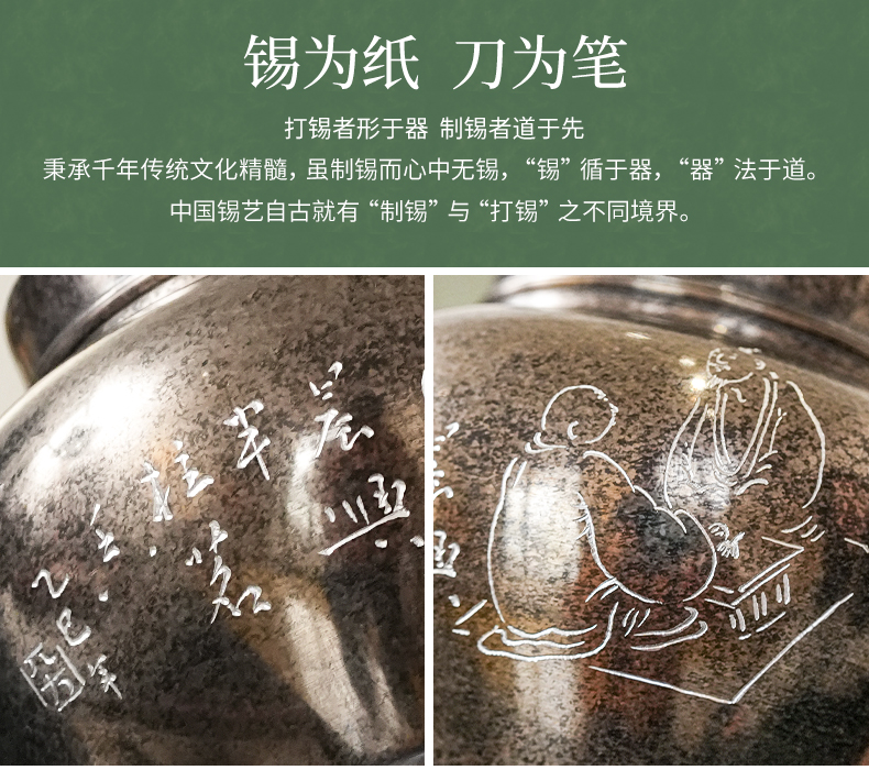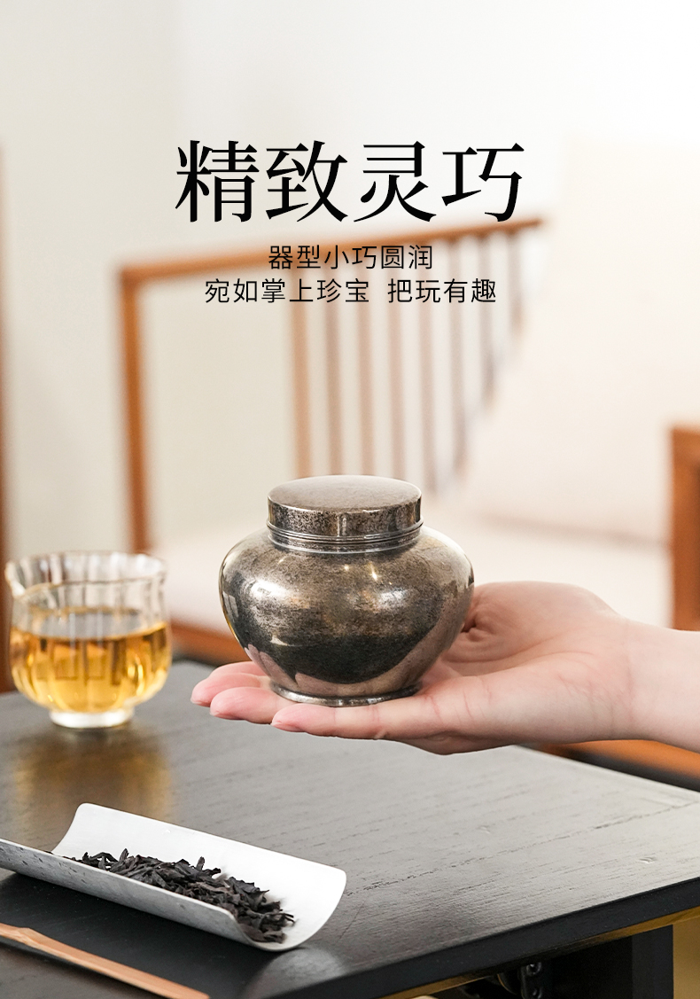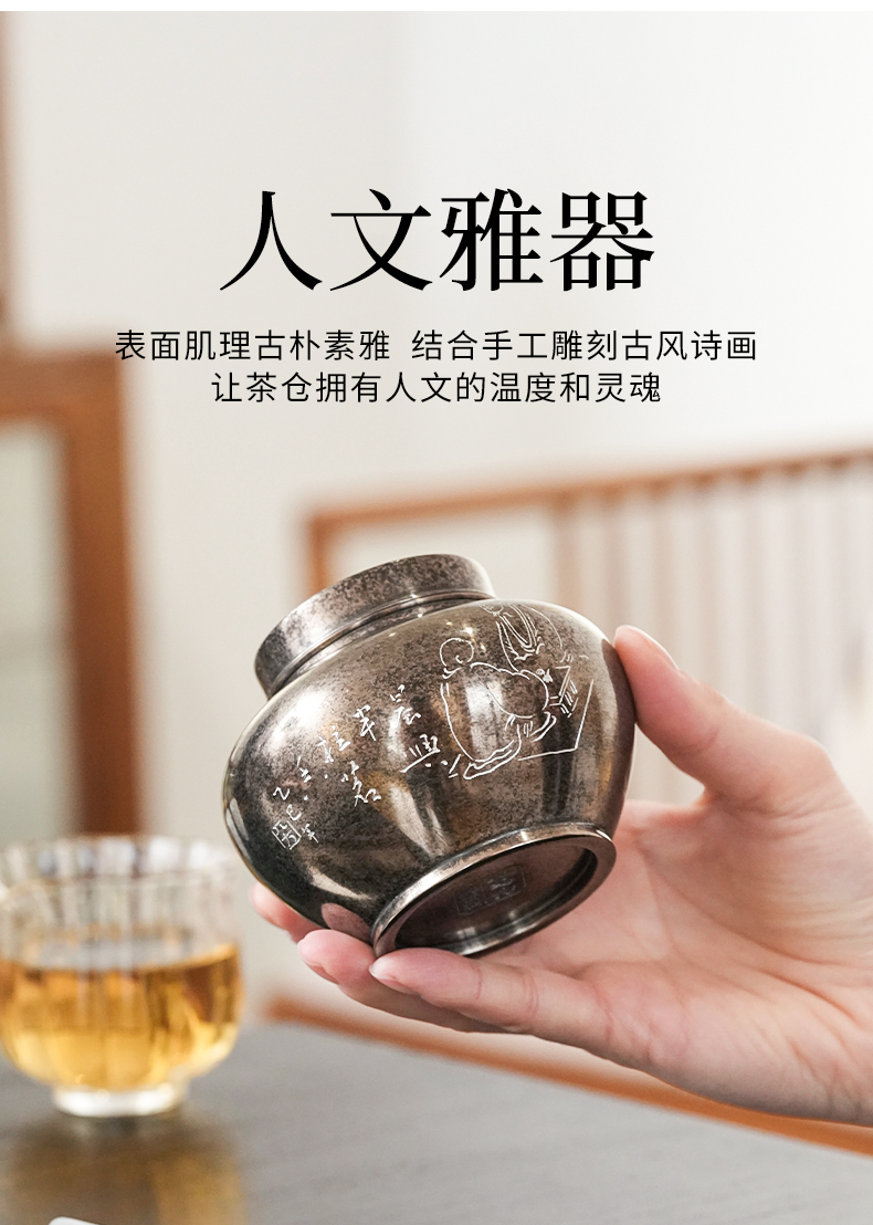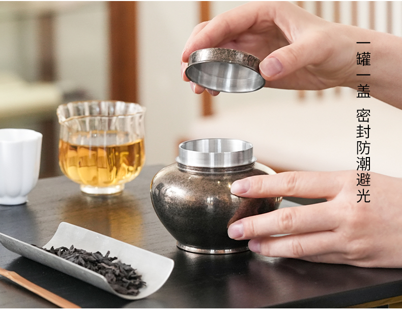 斑锡龙锡罐晨韵茶仓纯锡茶叶罐复古小号密封储茶手工云南个旧锡器