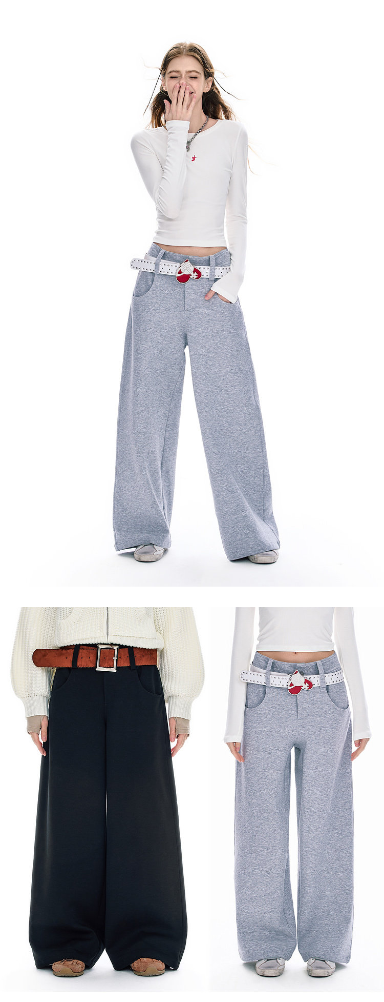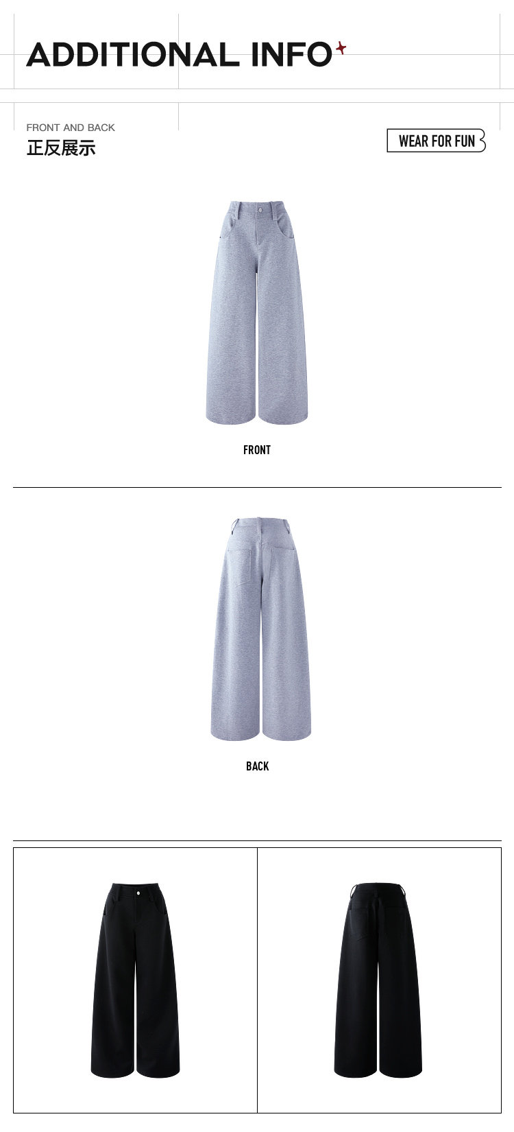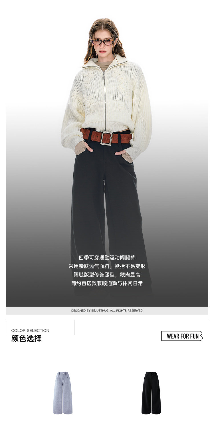 FTT Flythetruth 阔腿裤子女春季简约百搭卫裤黑色运动长裤休闲裤