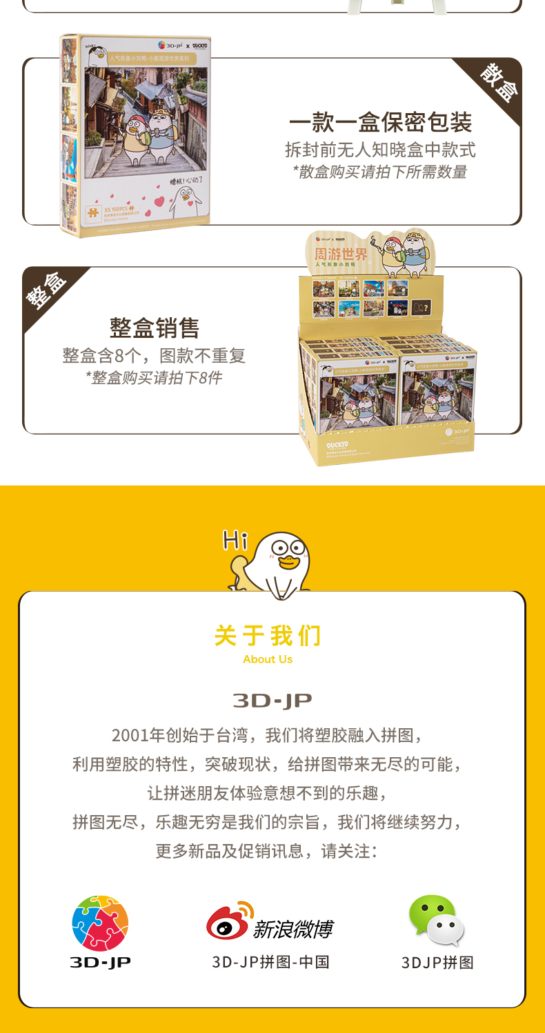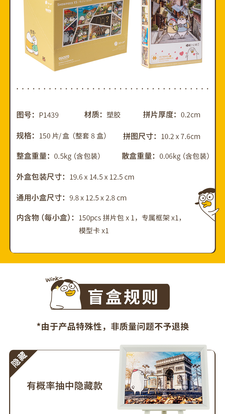 【折扣商品 不退不换】150片 盲盒拼图 塑料拼图 P1439 人气形象小刘鸭-小刘周游世界系列**商品仅剩散盒 介意勿拍