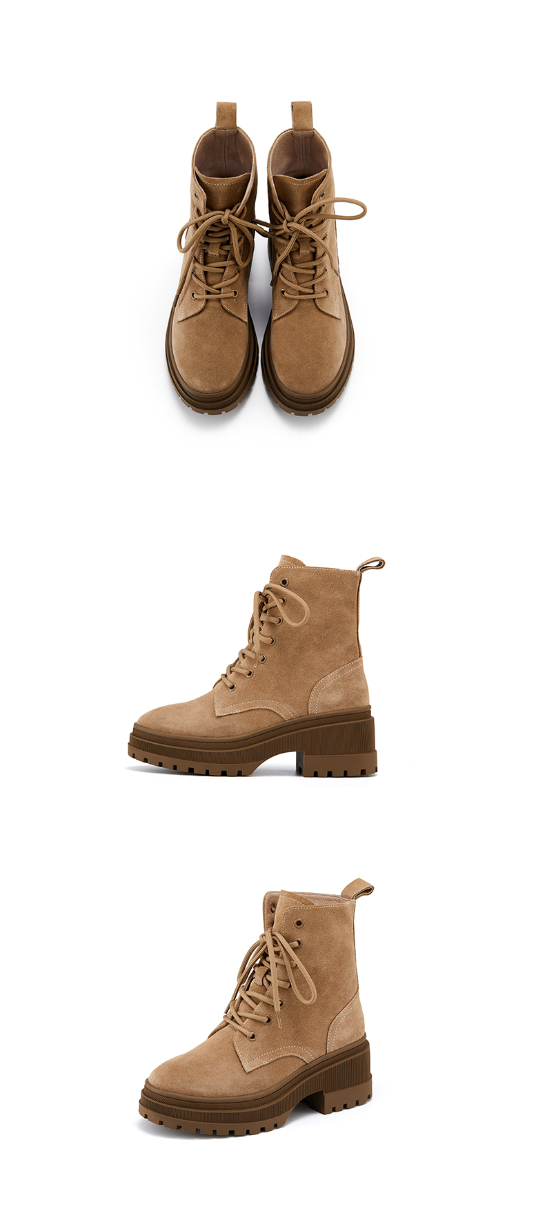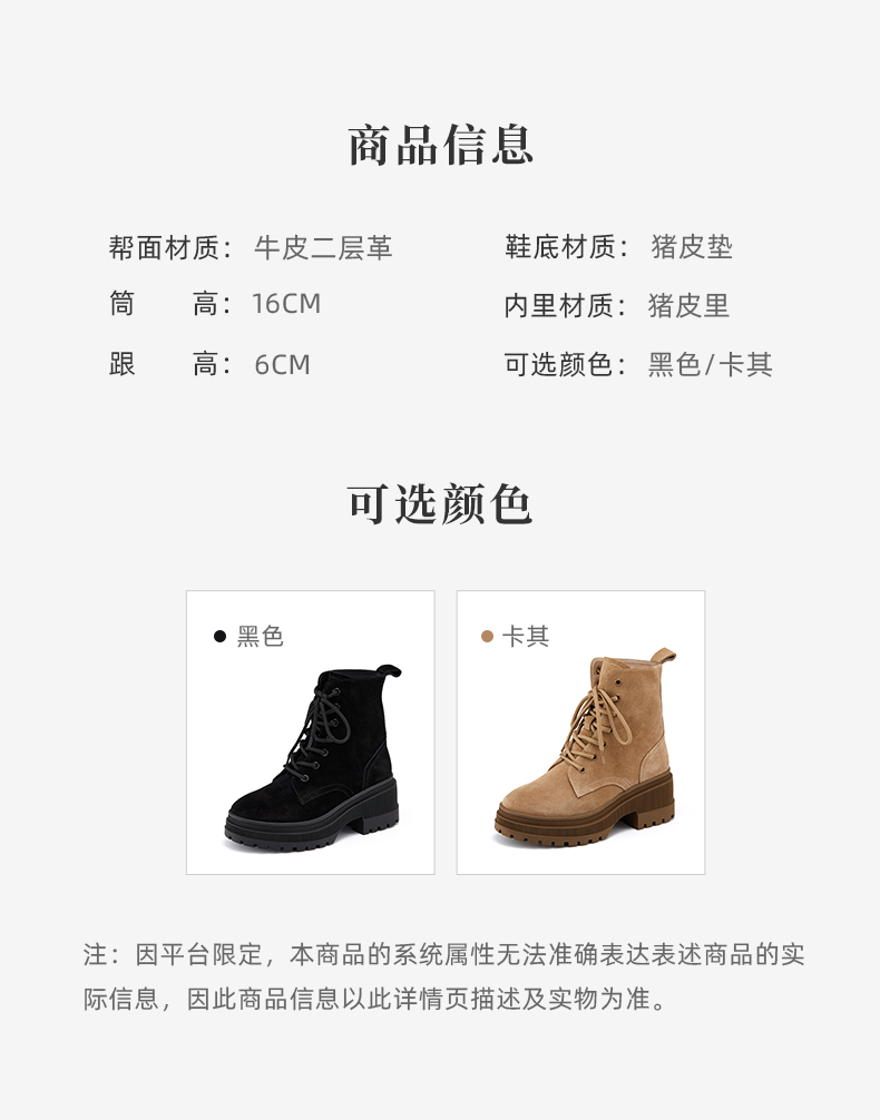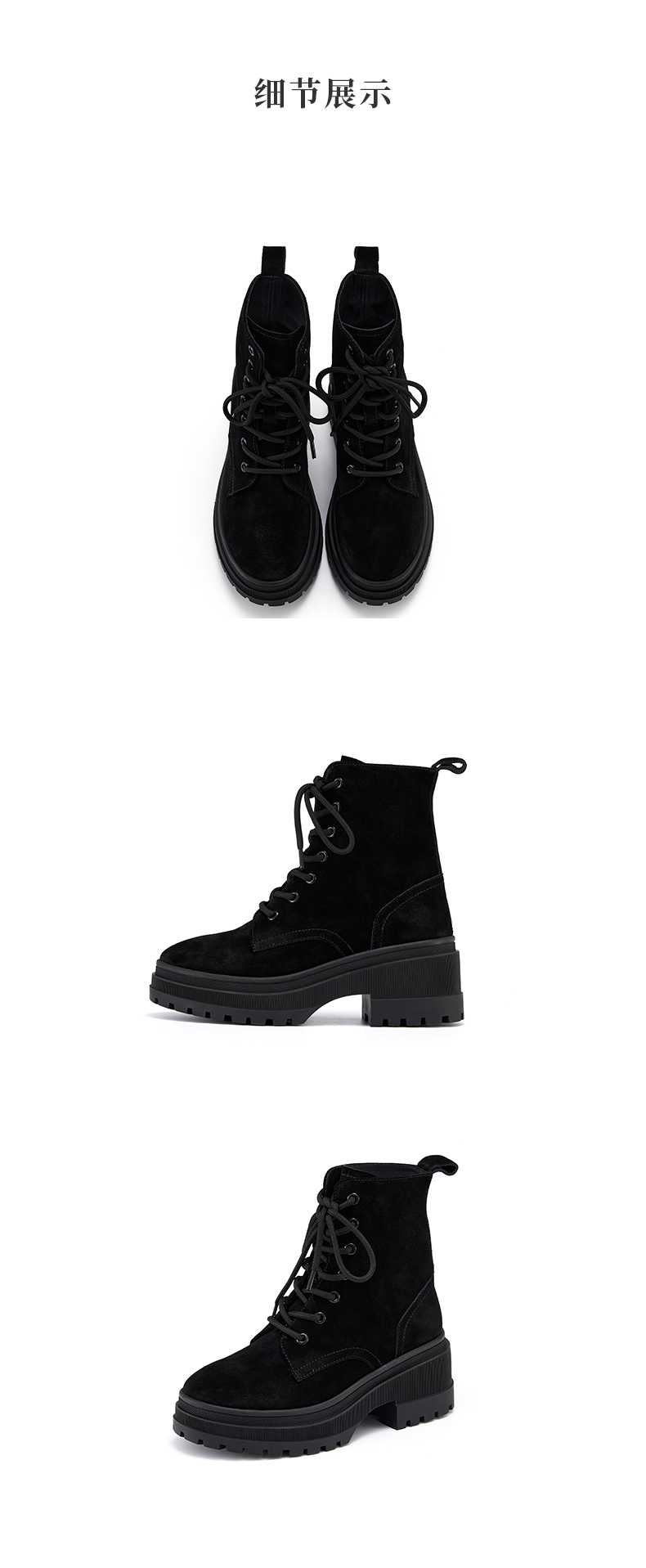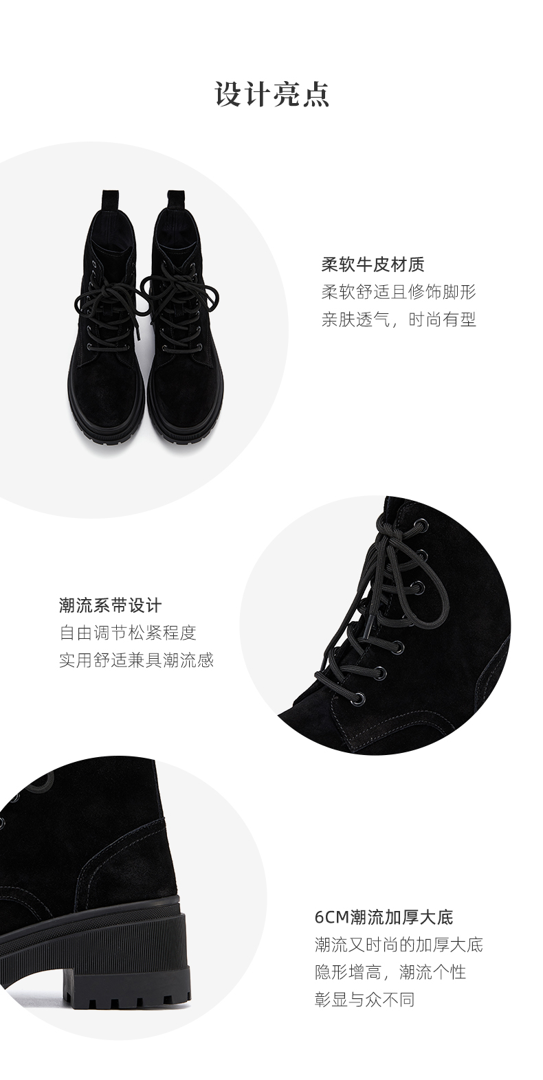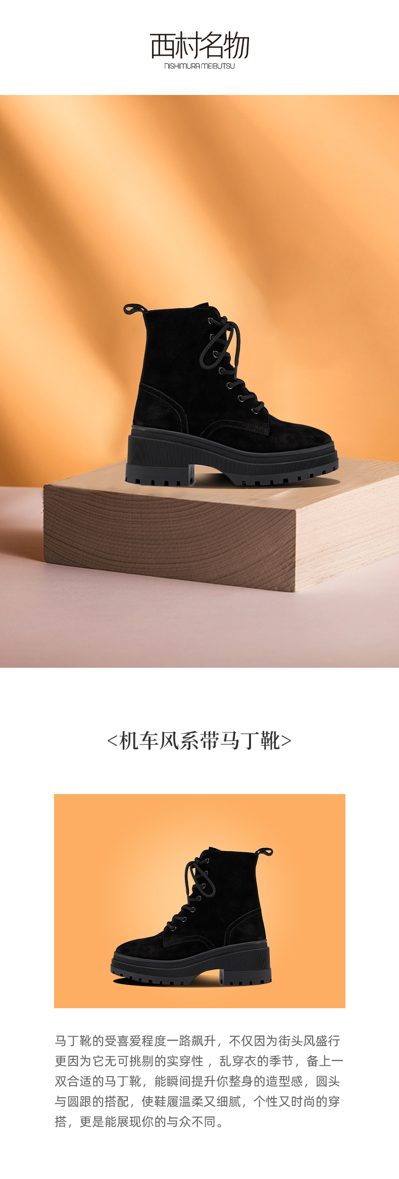 西村名物2021冬季新款百搭牛绒面工装靴系带厚底马丁靴短靴X21DS45371