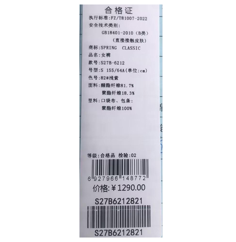 西贝伦长裤S27B6212