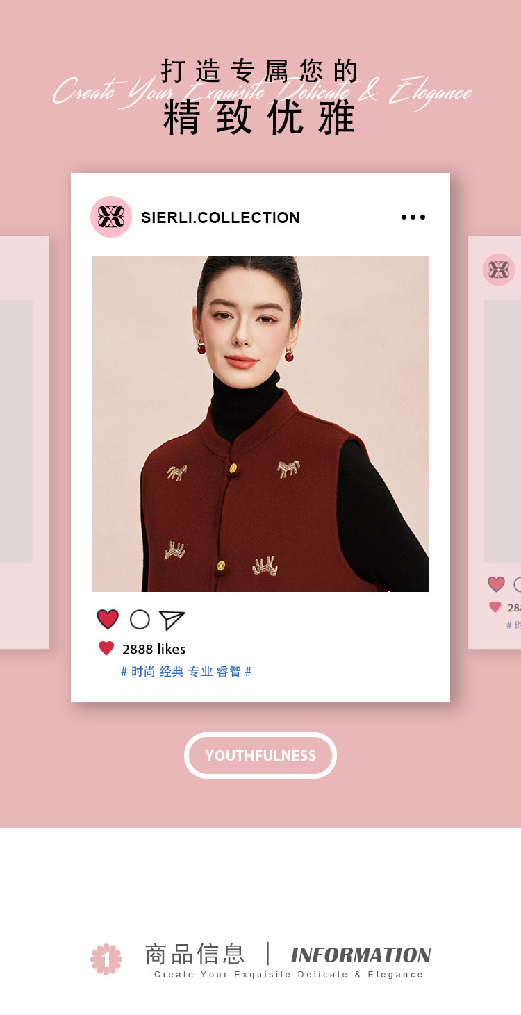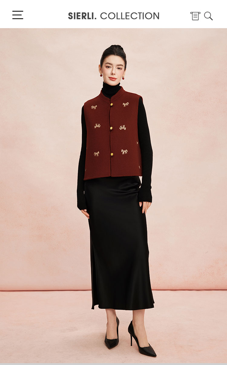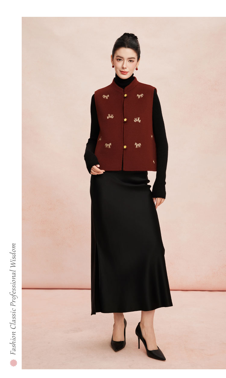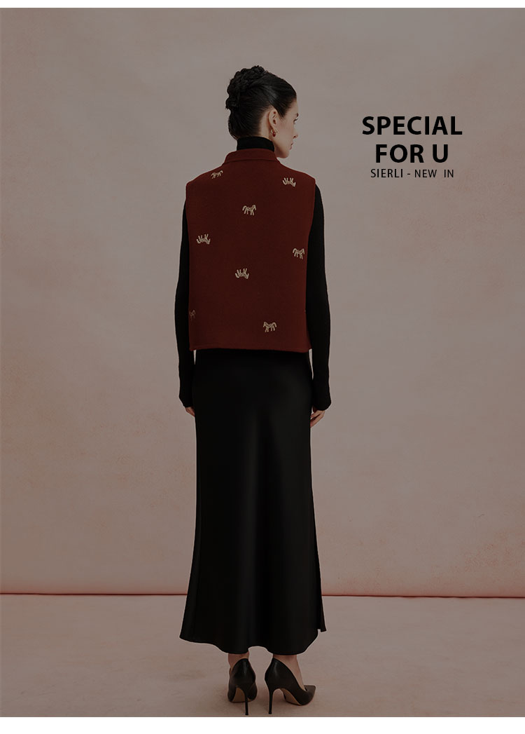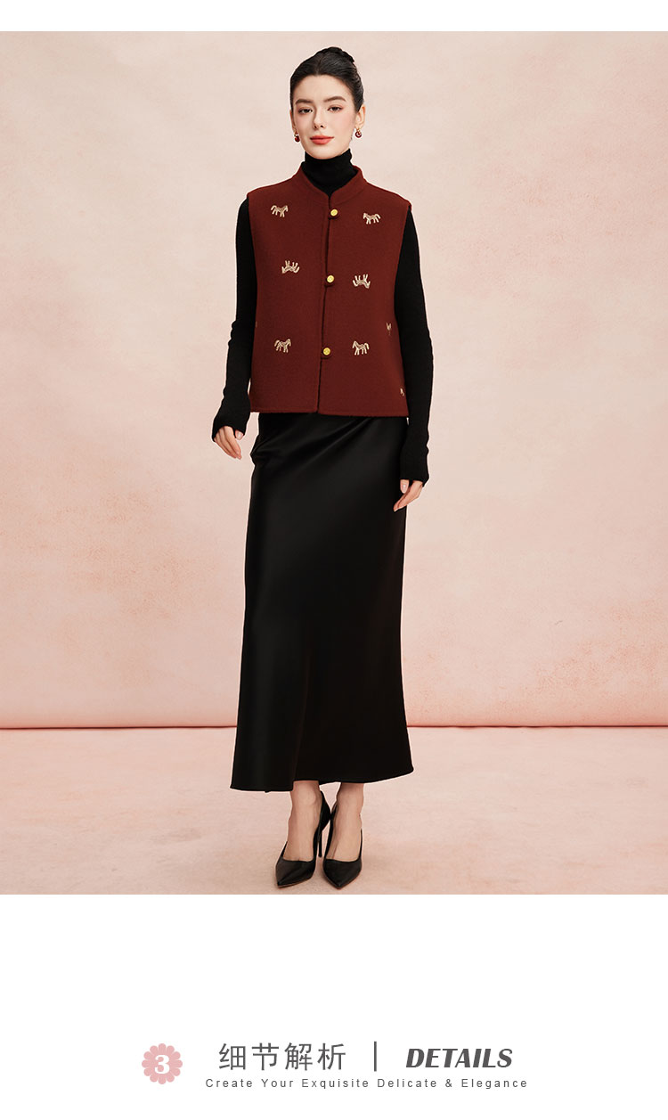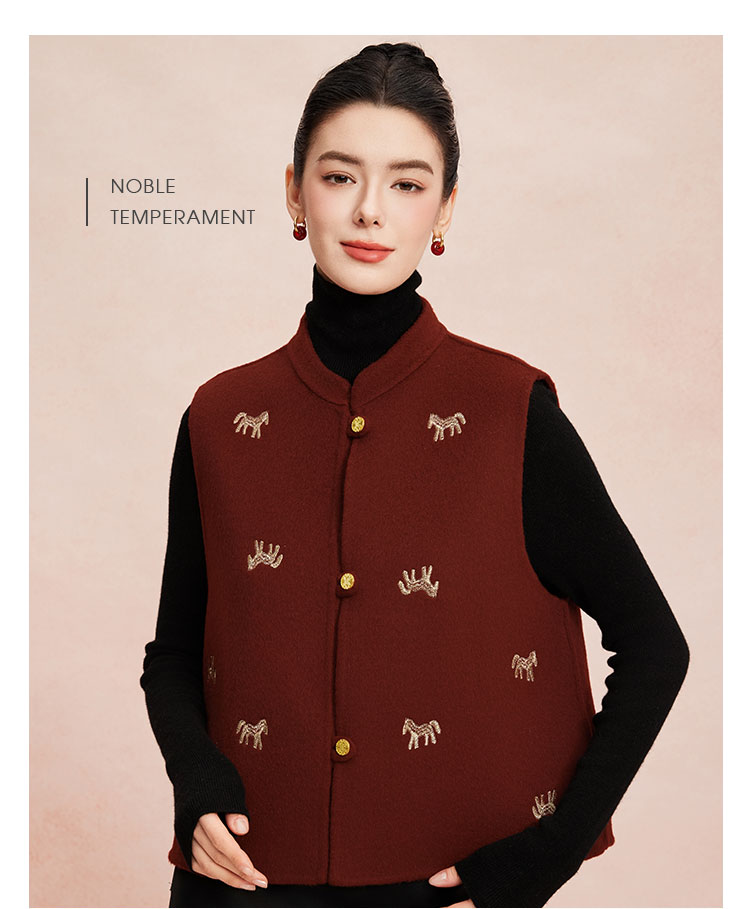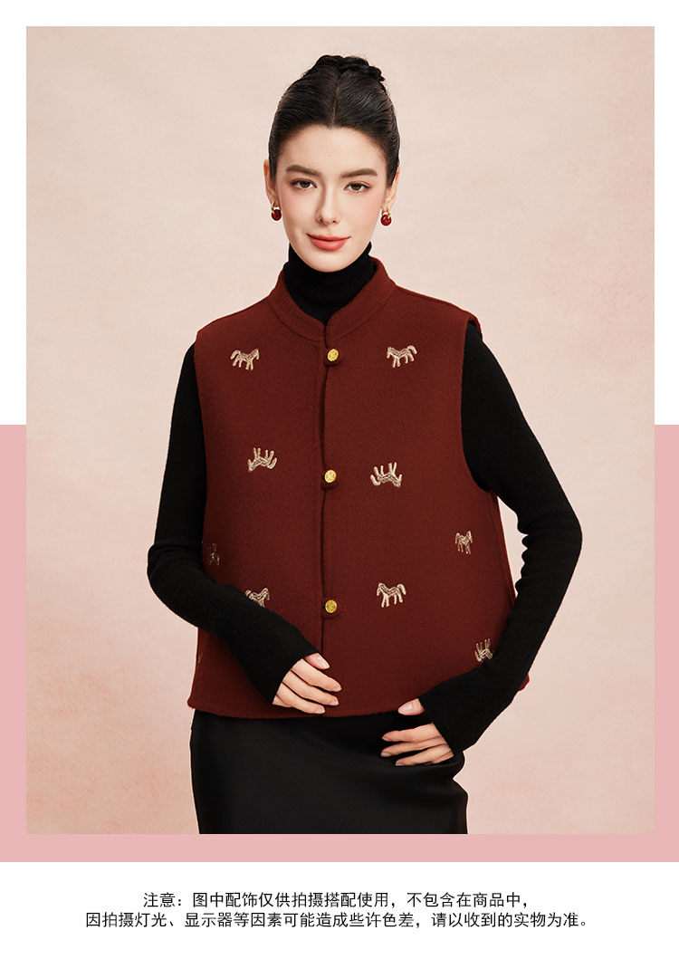 RE410斯尔丽26春季新款绵羊毛金丝刺绣款新中式韵味双面手工马夹