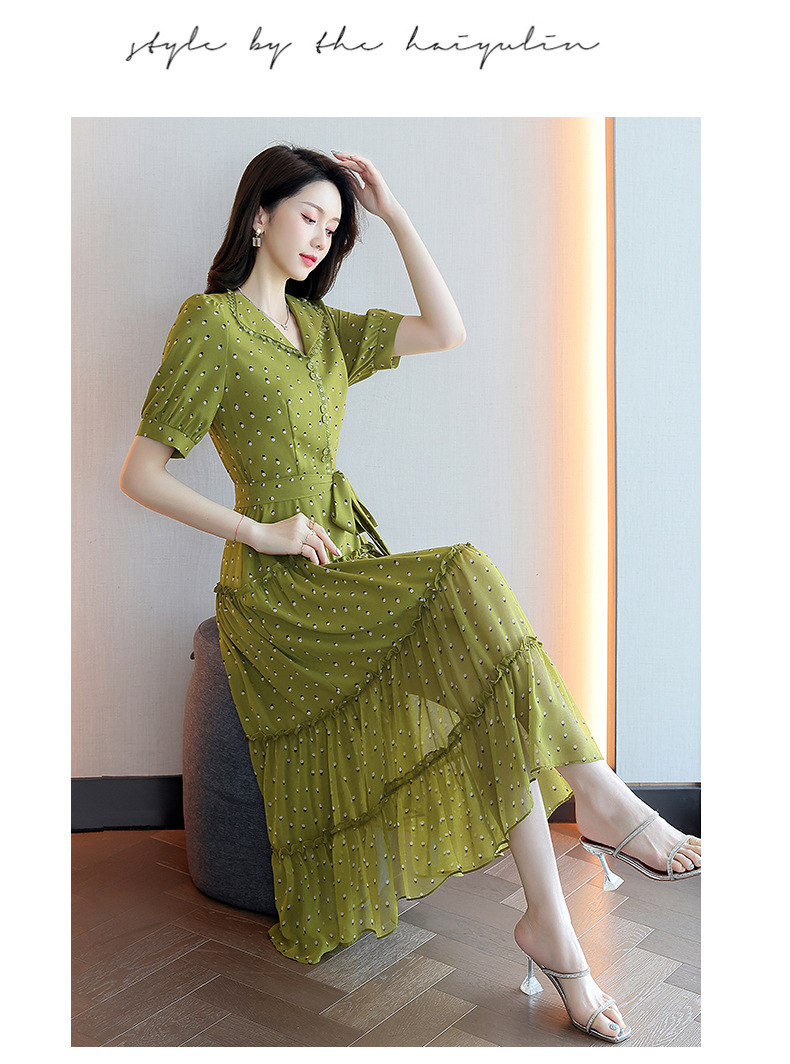 2022新款夏季减龄气质收腰裙中长款女装时尚连衣裙 HR-LJY-Z5125