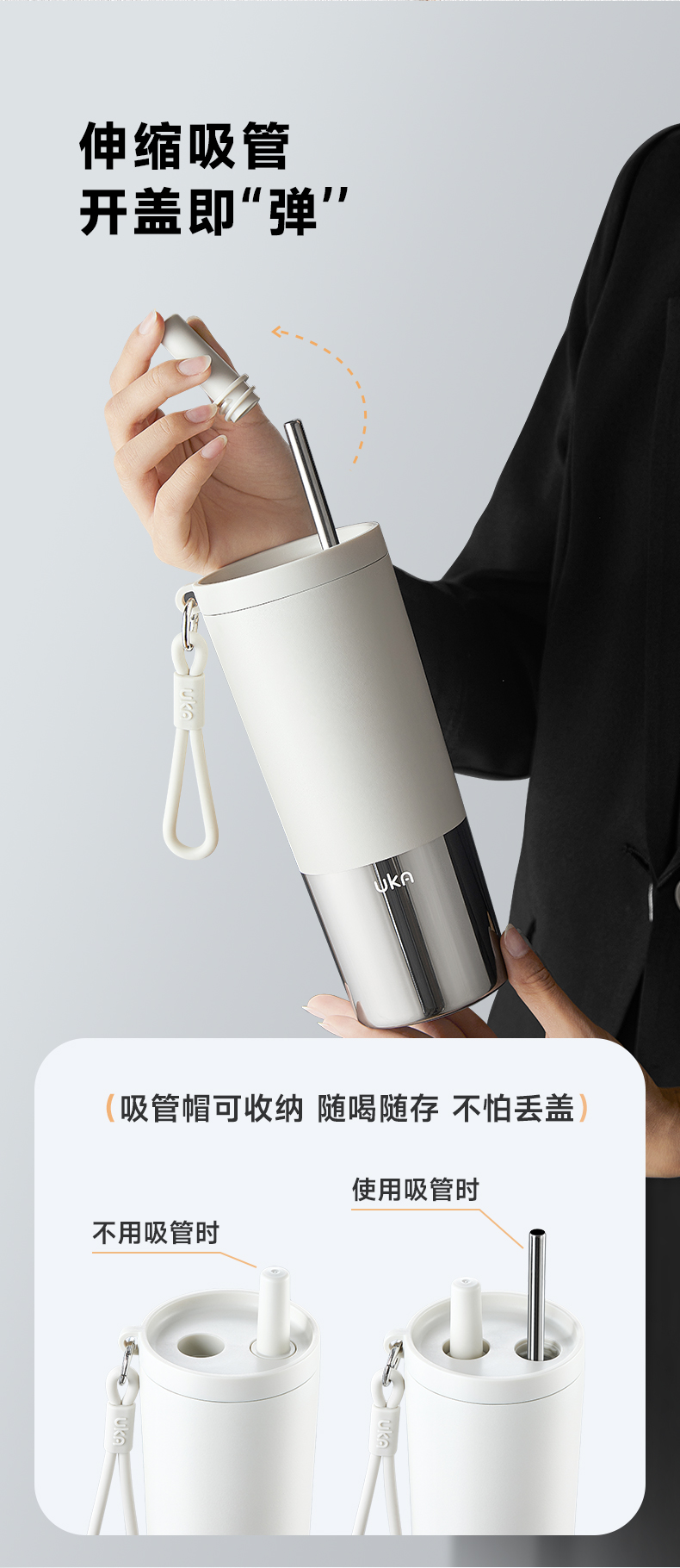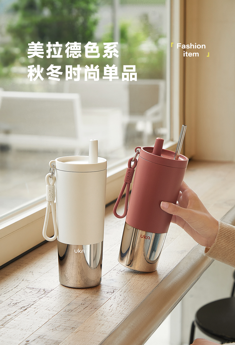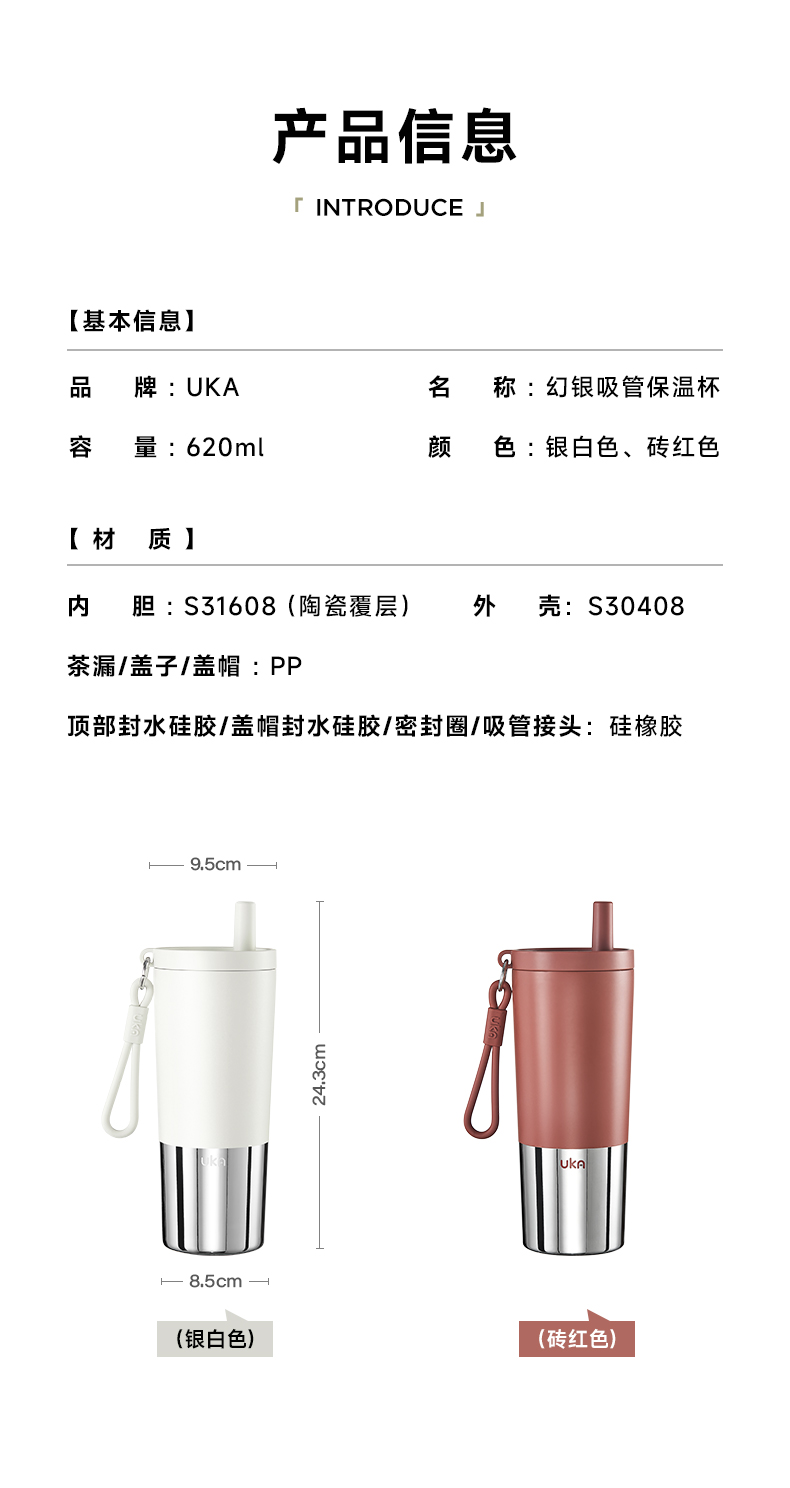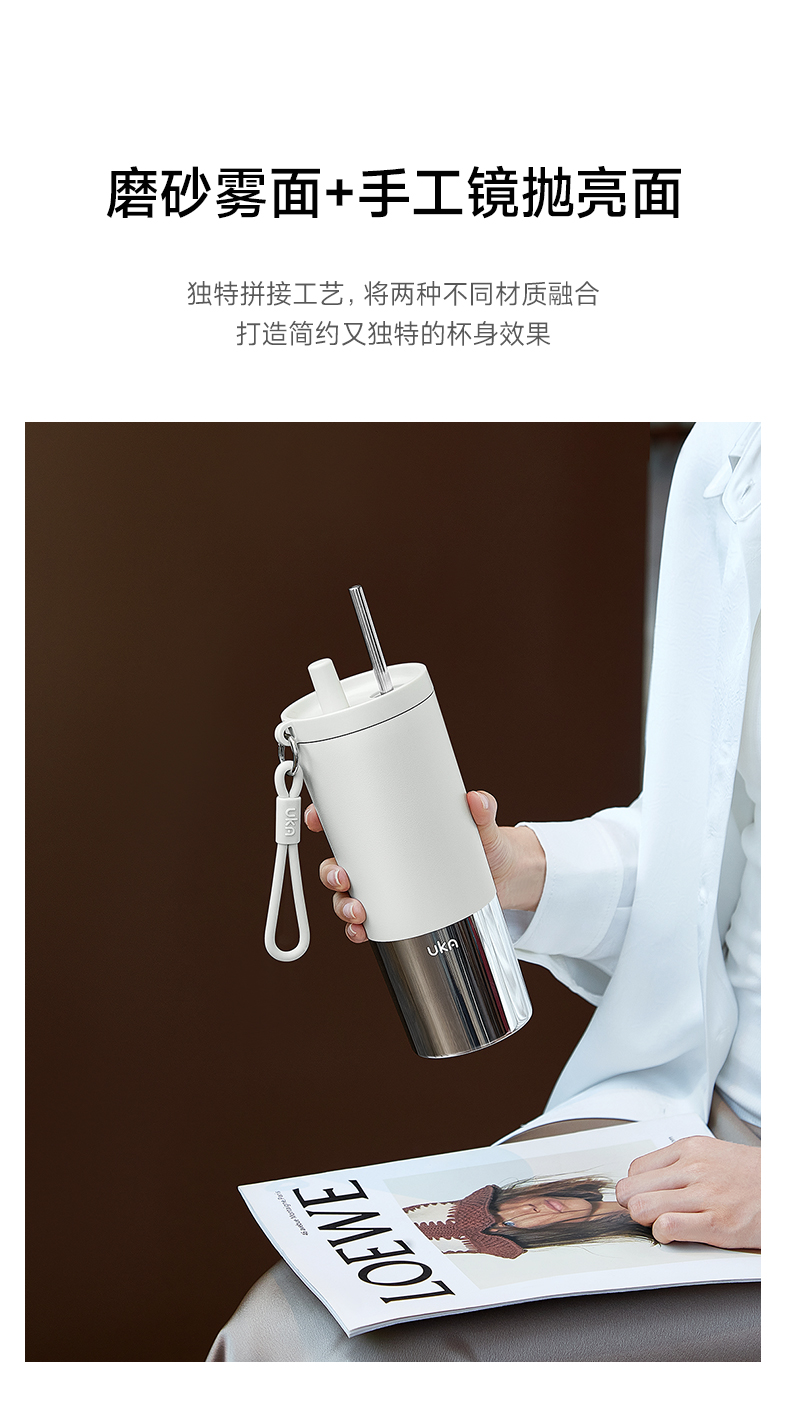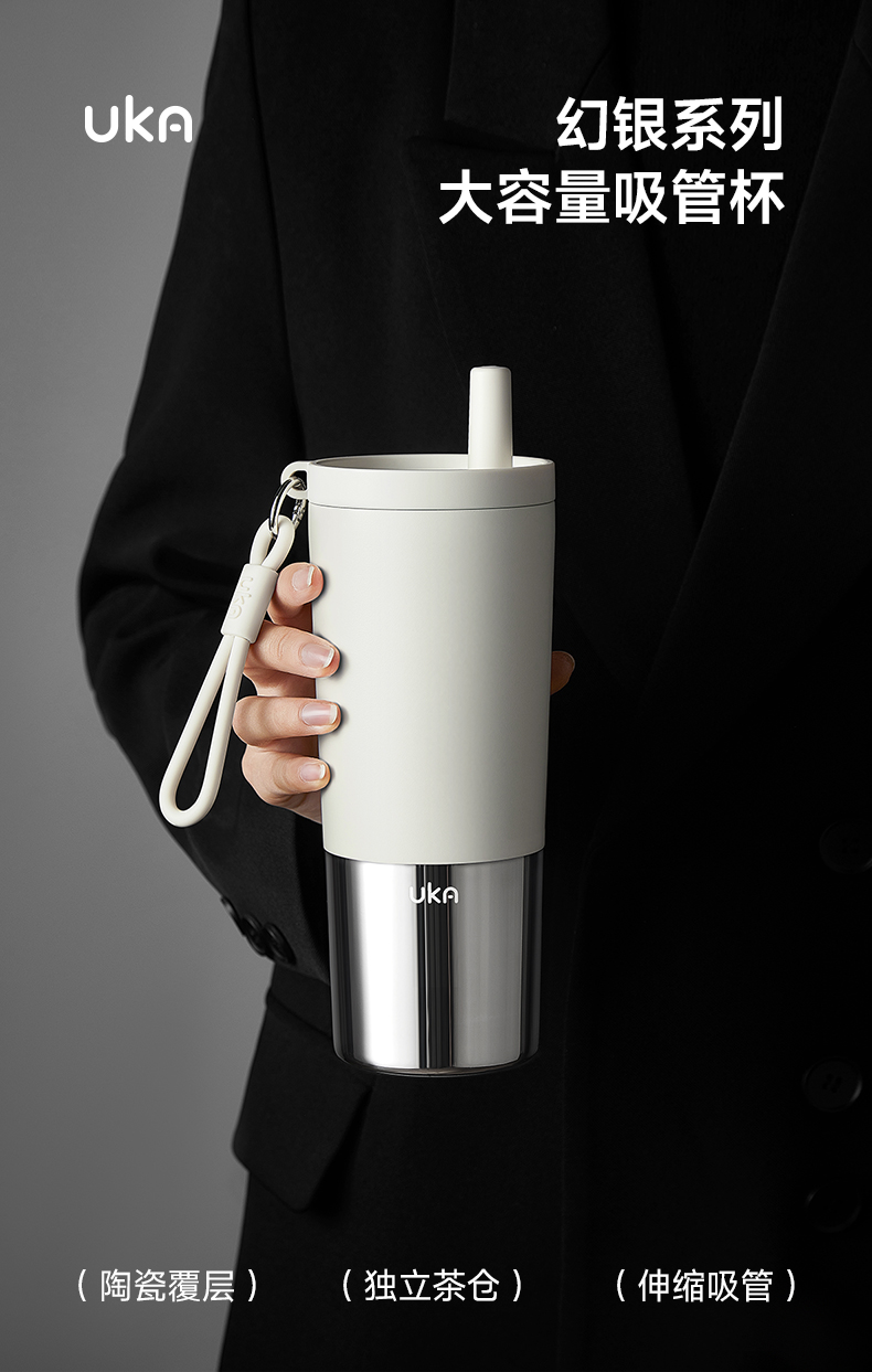 UKA 幻银保温杯大容量吸管杯保温保冷水杯陶瓷覆层内胆高颜值杯