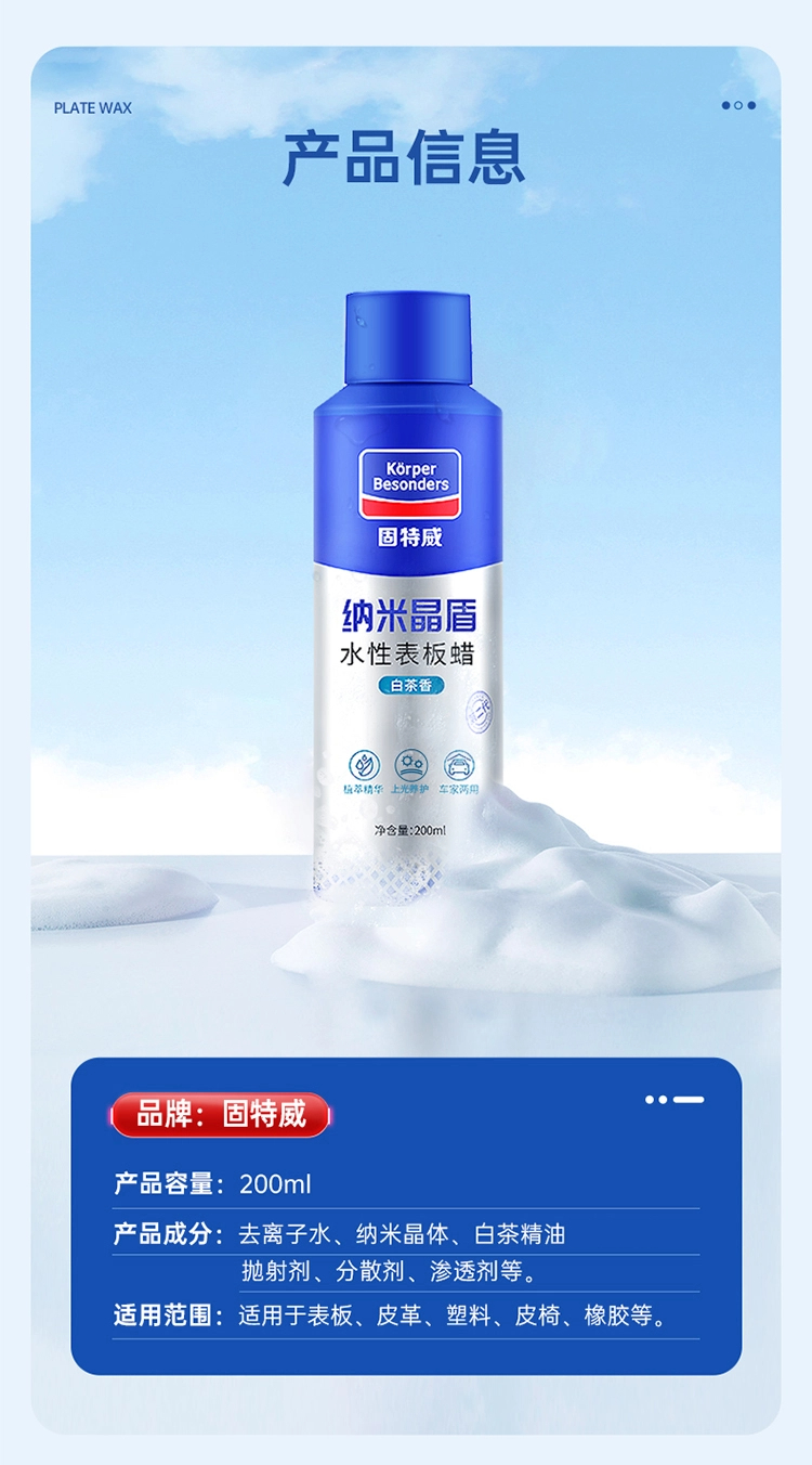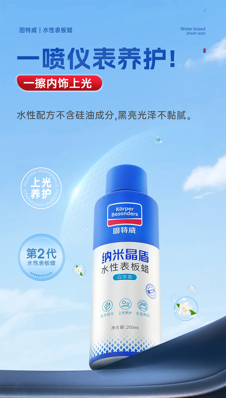 固特威精盾水性表板蜡白茶淡香清晰可见
