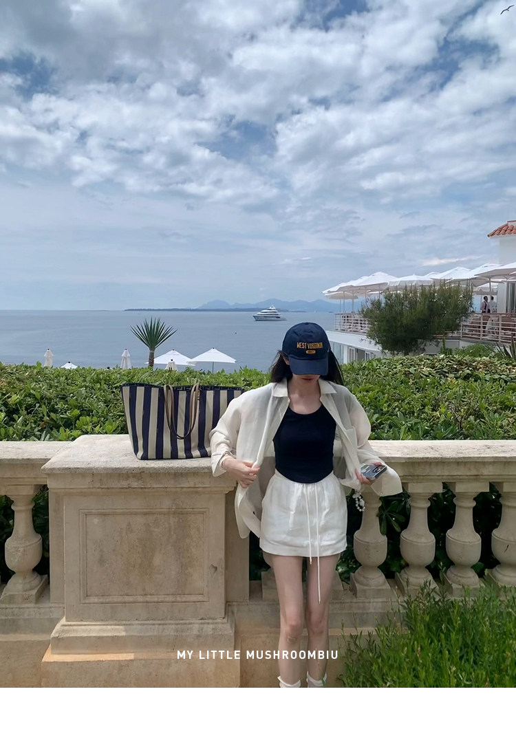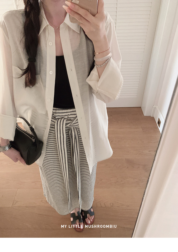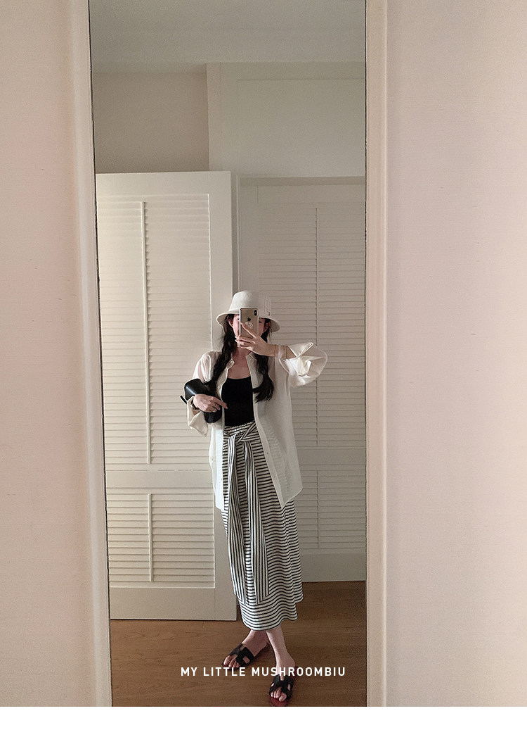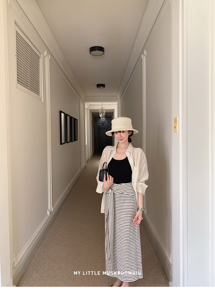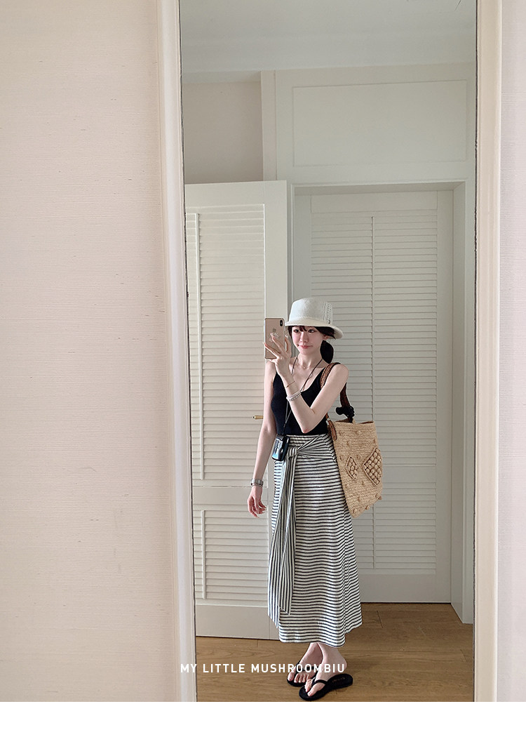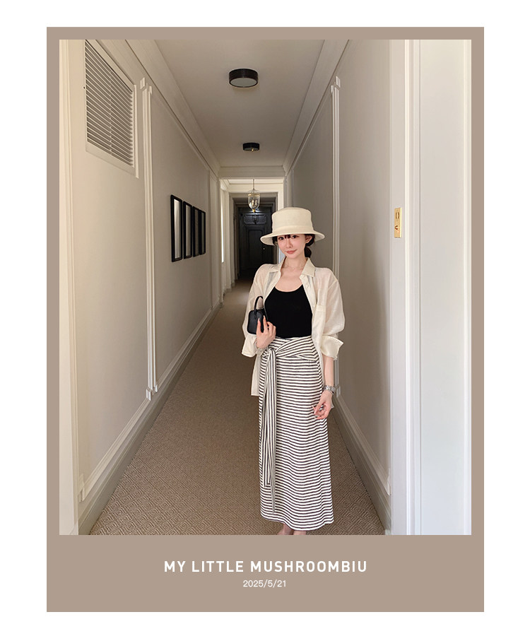 金蘑菇菇 梨形身材天菜!绑带条纹半身裙 高腰系带中长款 遮胯显瘦A字裙