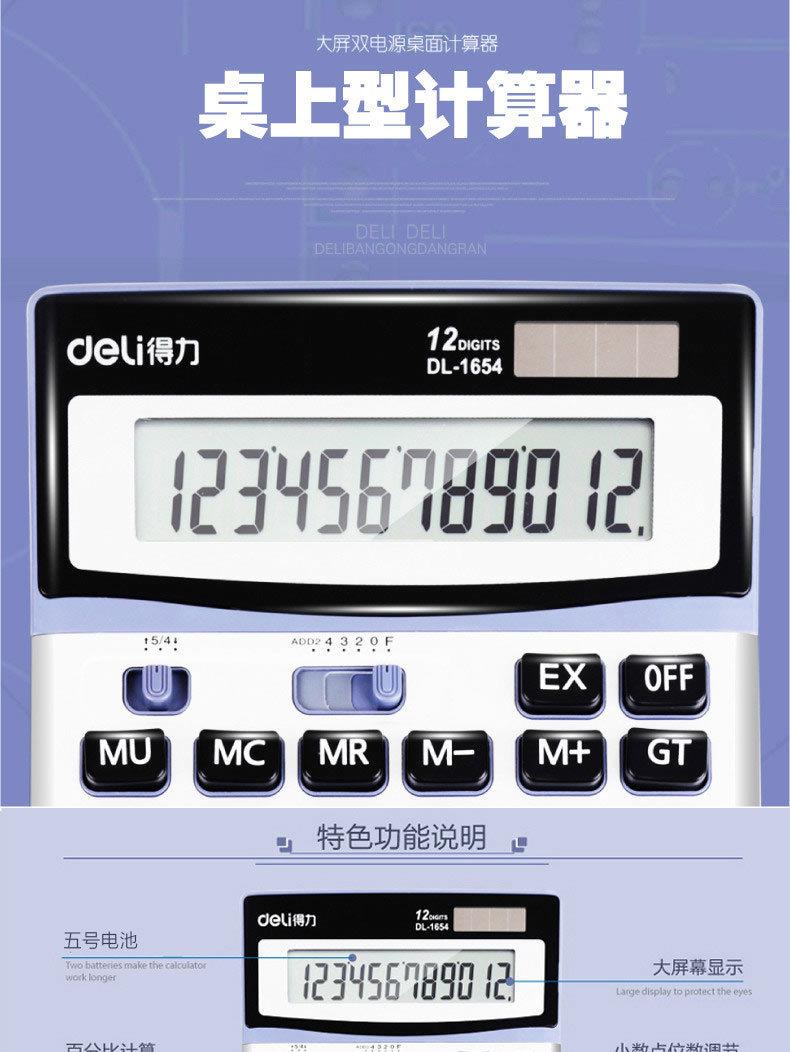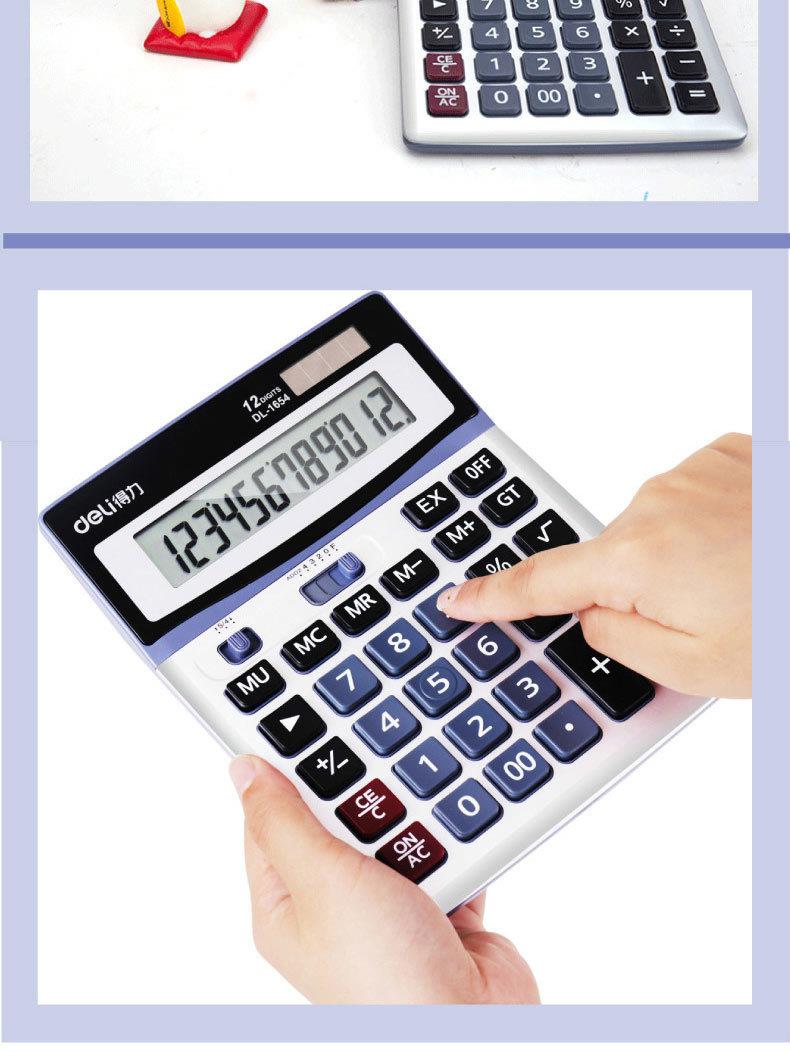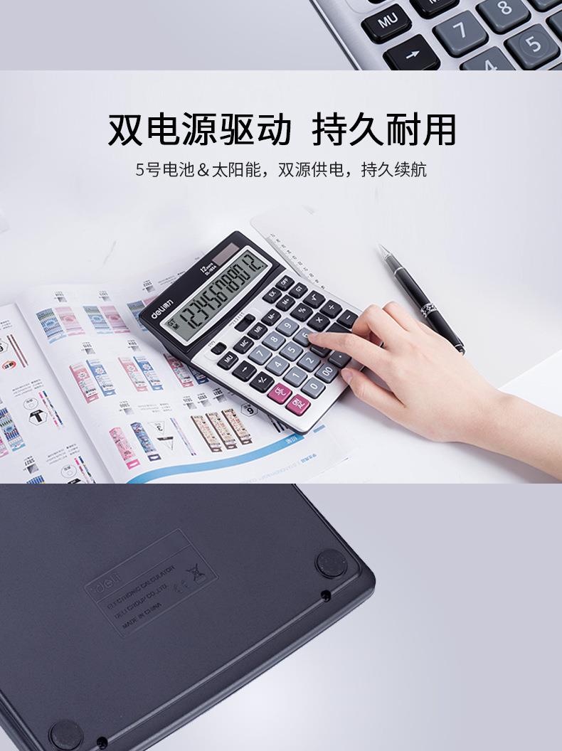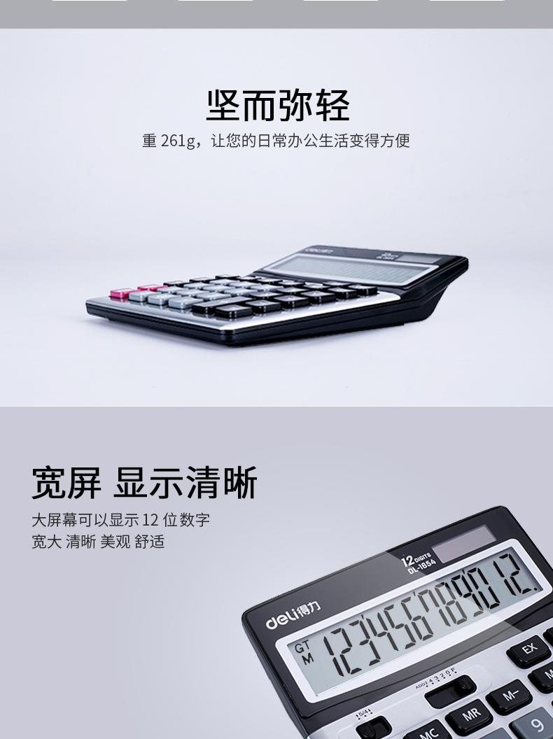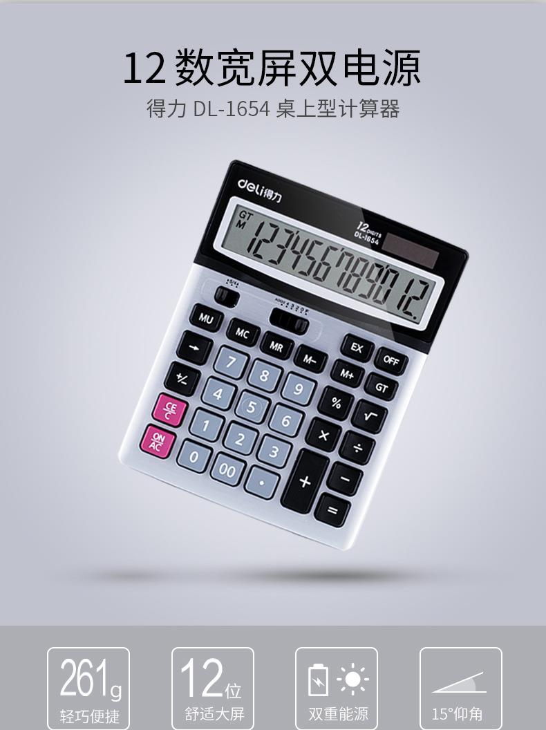得力文具1654双电源计算器太阳能计算机 财务12位数大屏幕 带电池