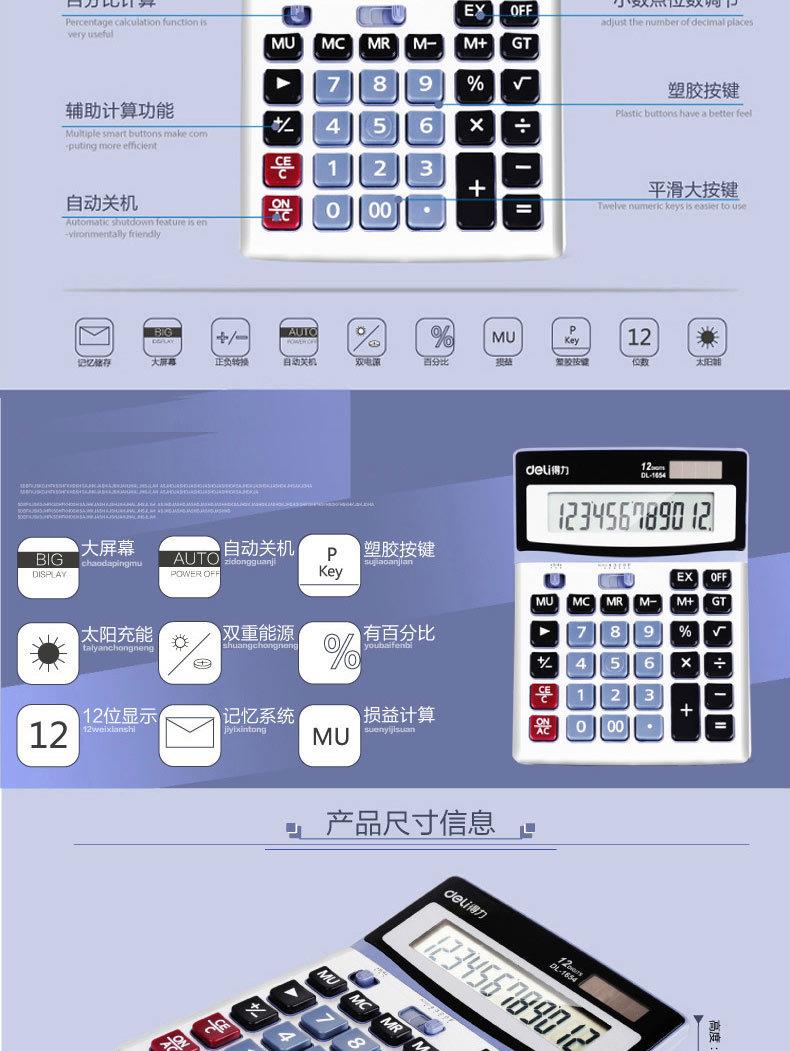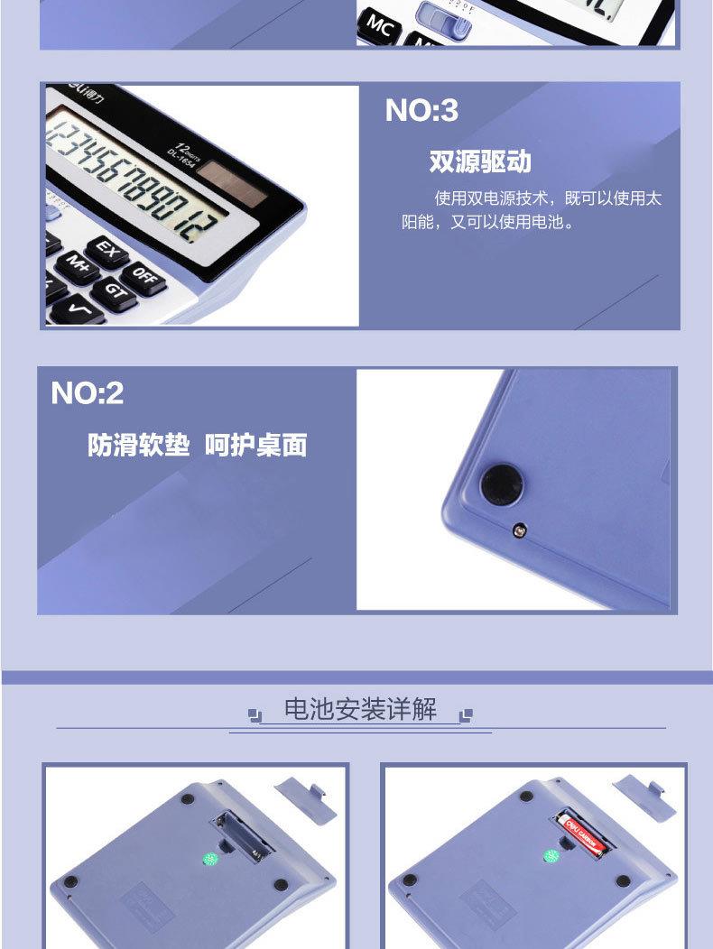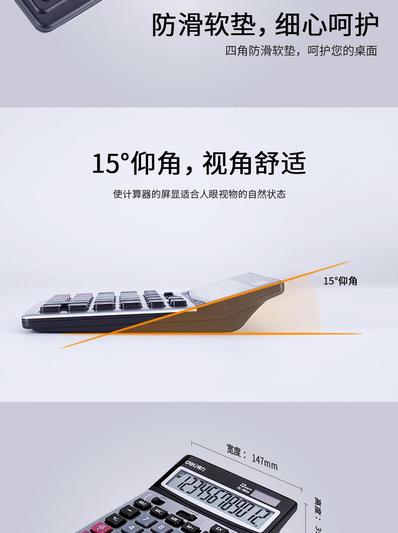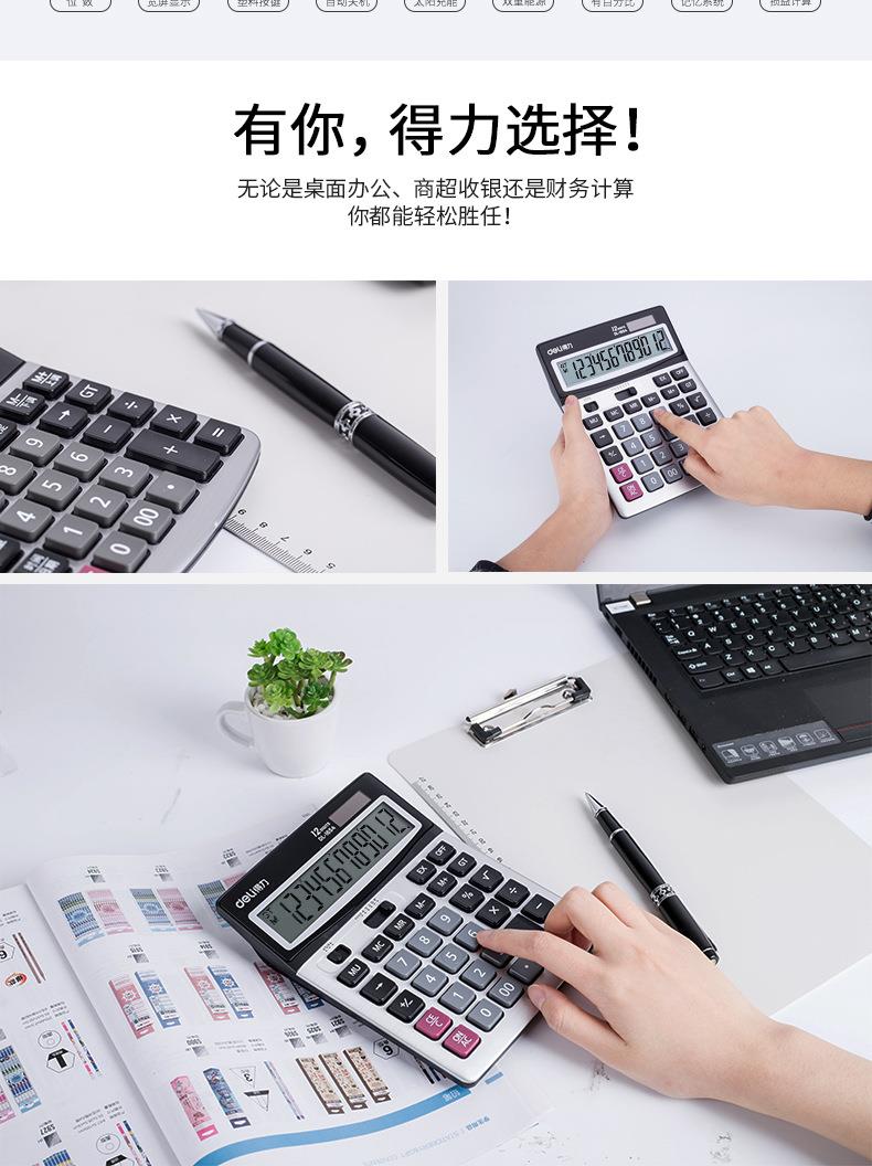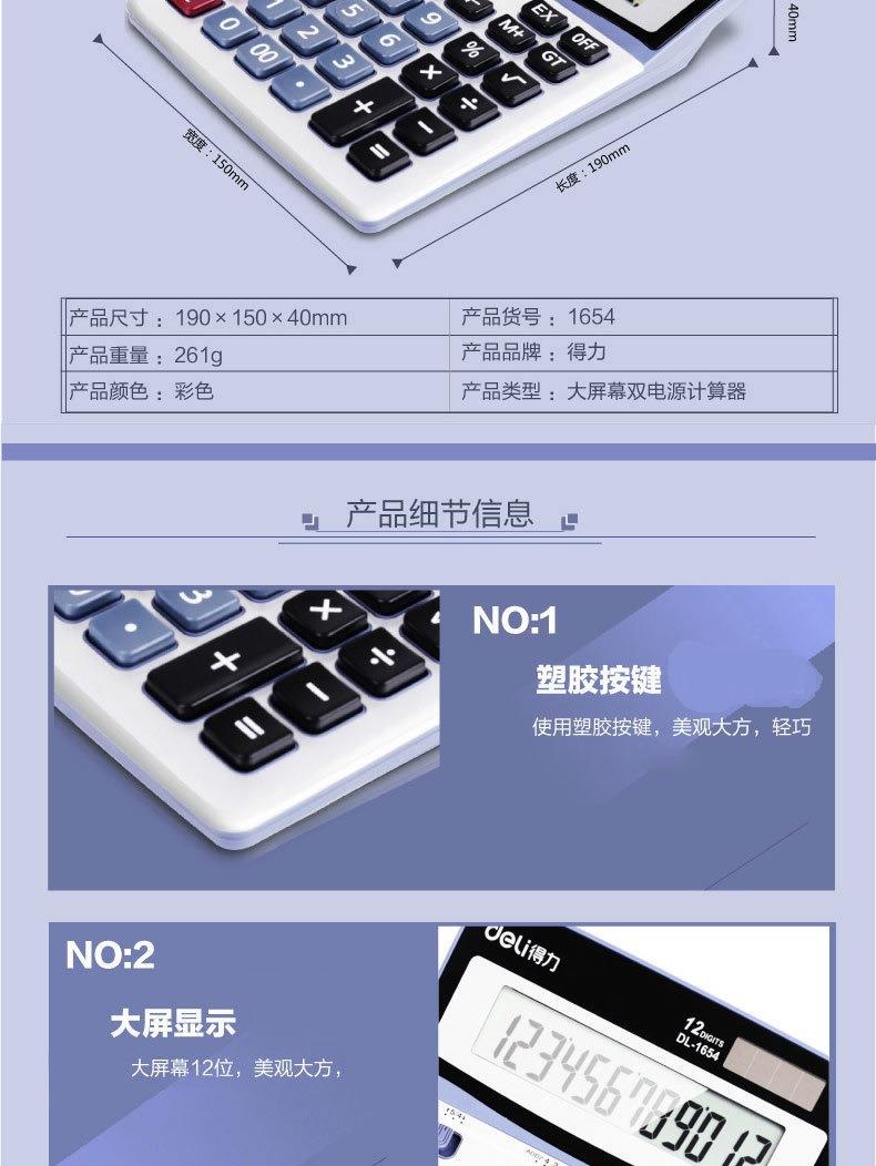 得力文具1654双电源计算器太阳能计算机 财务12位数大屏幕 带电池