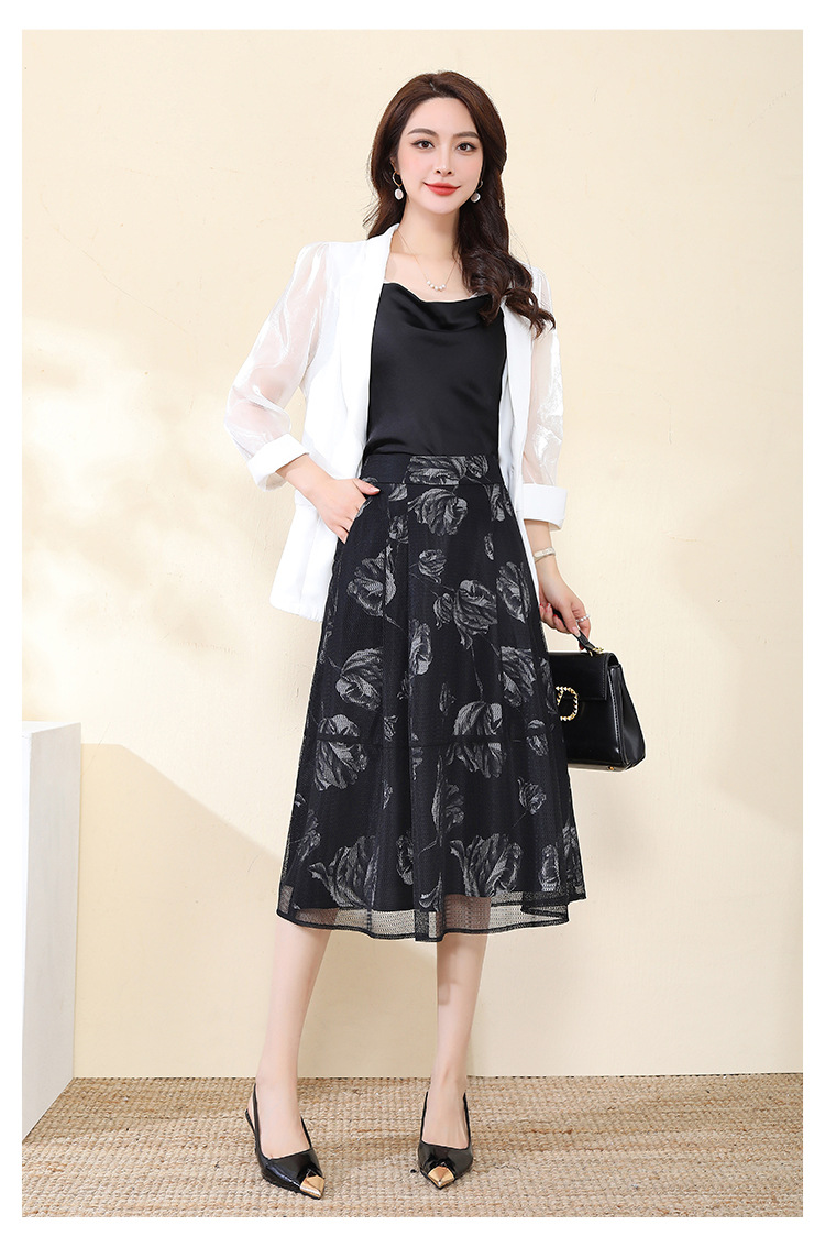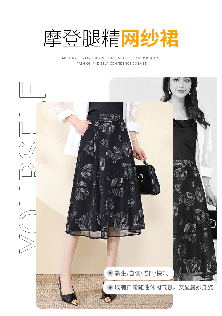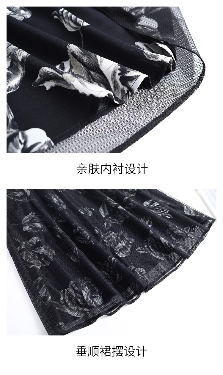 修身气质,印花雪纺拼接时尚高腰休闲半身裙MYX-3305