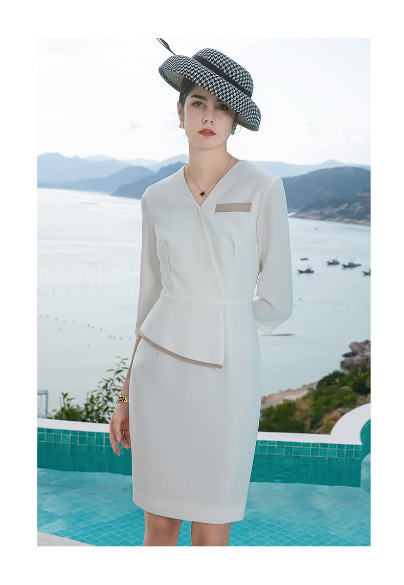 IWY/白色职业连衣裙女夏高级感修身包臀裙售楼部医美美容师工作服Q528