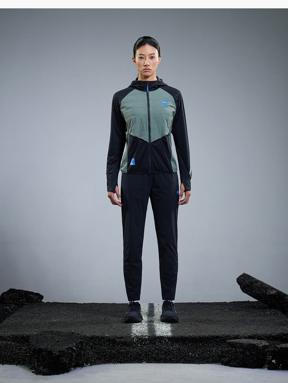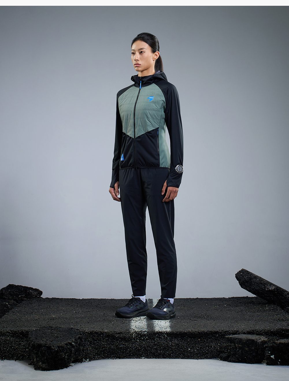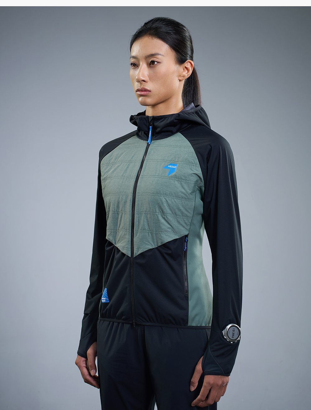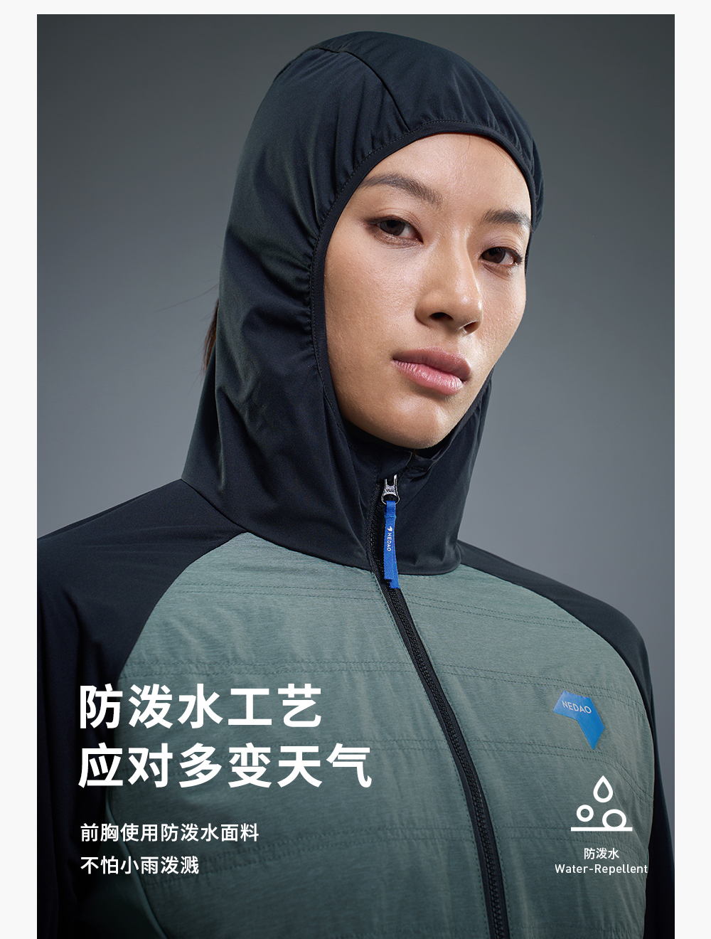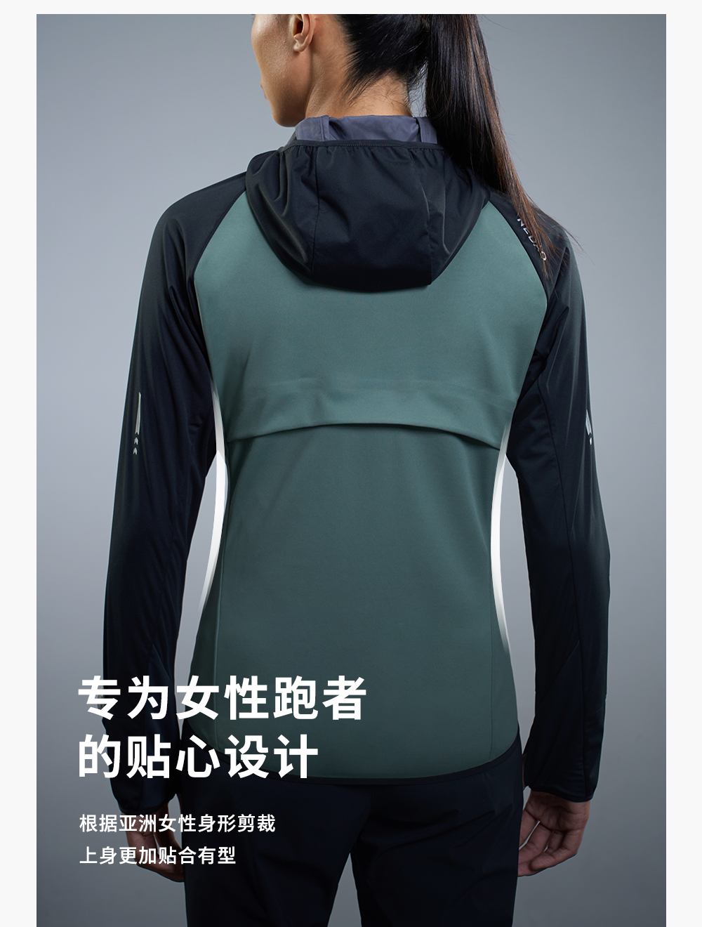 内道撞色拼接带帽软壳女士防风透气马拉松训练比赛跑步外套
