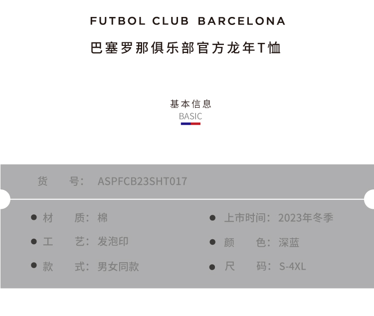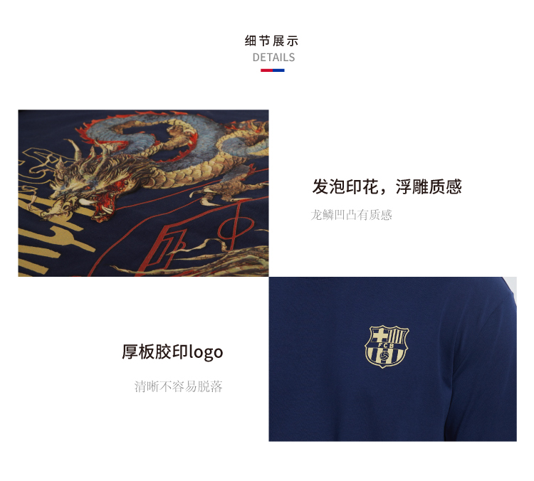 巴塞罗那俱乐部官方商品 | 巴萨龙年T恤精美印花男女通用足球迷