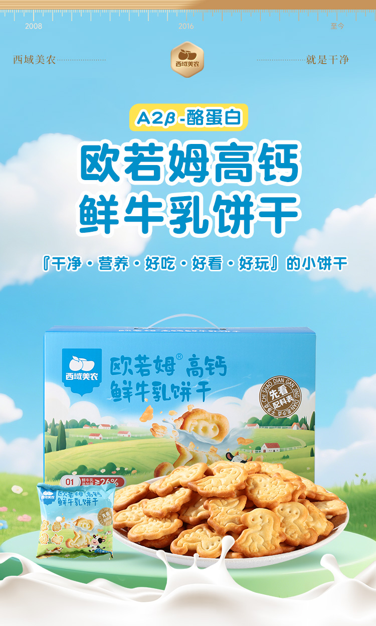 西域美农 欧若姆高钙鲜牛乳造型饼干零食 健康营养小饼干