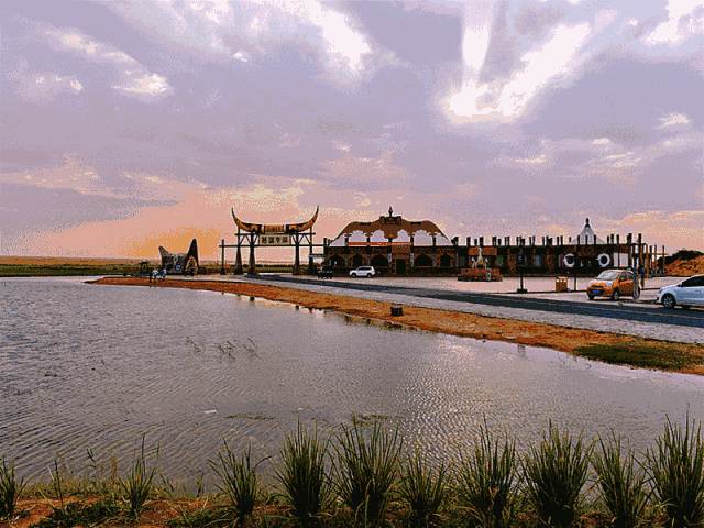 通湖草原位于内蒙古和宁夏交界处的腾格里沙漠腹地,东距阿左旗巴彦浩特200公里,南离宁夏中卫市26公里,西望甘肃河西走廊,与沙坡头--沙沙相连,直越8.3公里便可到达。这里是古丝绸之北路要塞。古商道、古盐道、大盛魁古驼道。沙漠湖泊、沙漠绿洲、沙漠草原、沙山岩画,还有古长城、古战场、古买卖城遗址;流传千古的故事和传说,以及好客的草原牧民。因此,被誉为沙漠中的"伊甸园"。