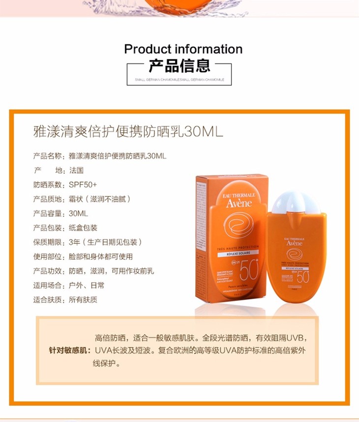 【保税仓】AVENE/雅漾 小金刚防晒霜 SPF50+ 30ml
