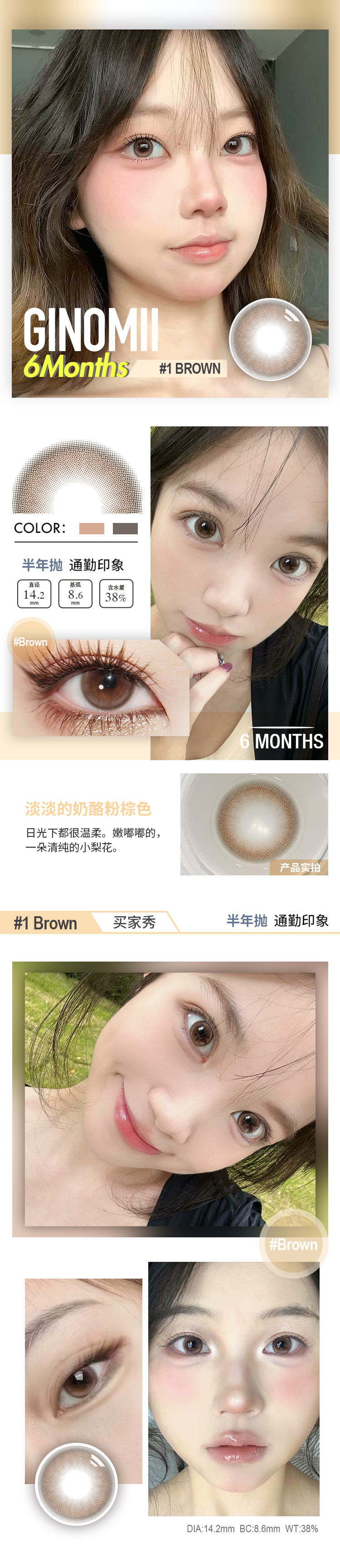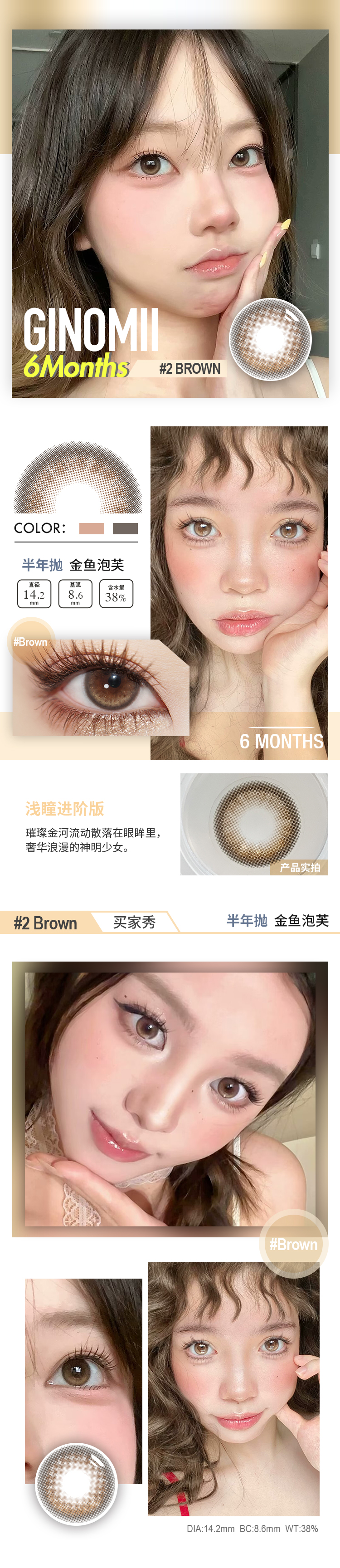 GINOMII 半年抛 通勤印象/金鱼泡芙 (巧咖棕 14.2mm 最高800度)