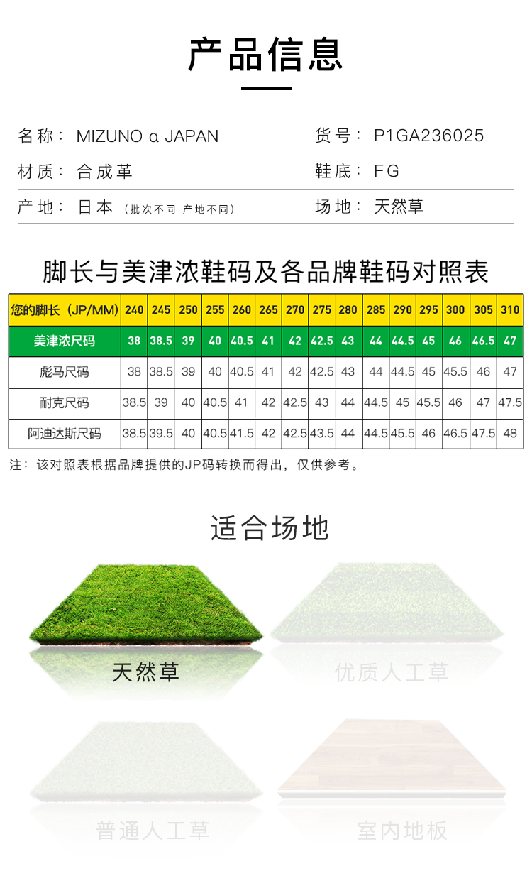 Mizuno/美津浓 MIZUNO α JAPAN (MS-090) 高端日产 α FG足球鞋