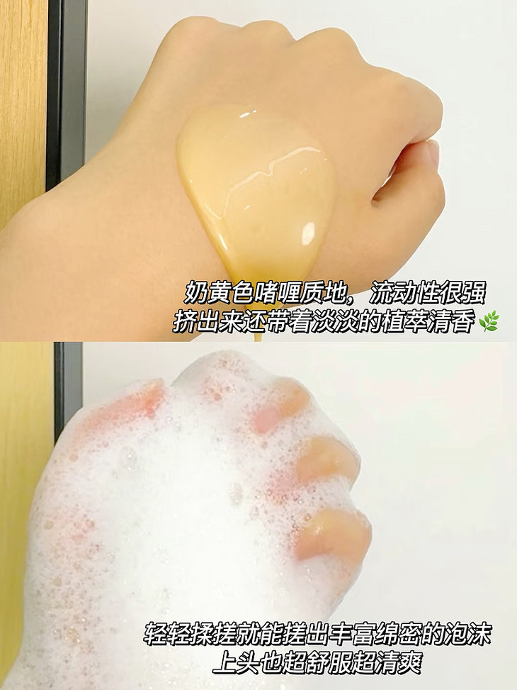 它是淡黄色乳液质地轻轻一搓就有丰富绵密的泡沫洗感超清爽~ 坚持用几周,掉发明显减少头皮状态也越来越稳定